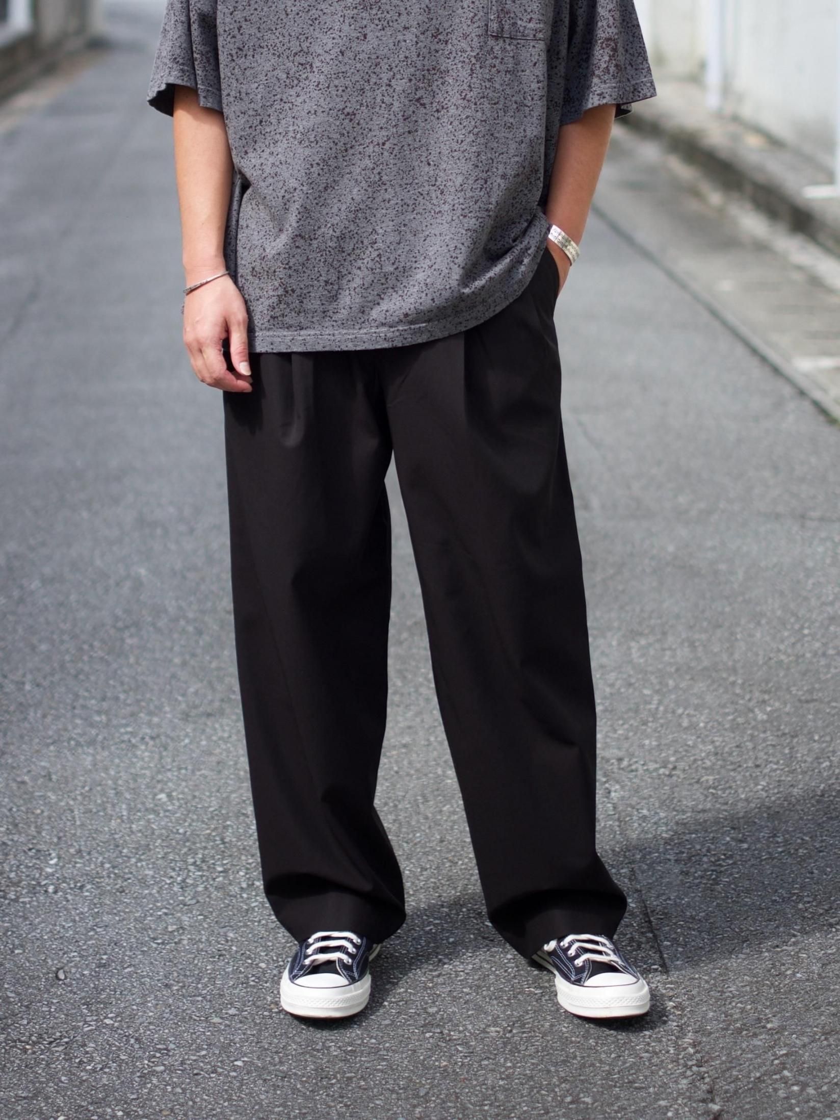 ワイドでモダンなシルエットが魅力の「DOUBLE PLEATED EASY TROUSERS」。フロントには2本のアウトタックを施し、立体的なドレープが生まれます。