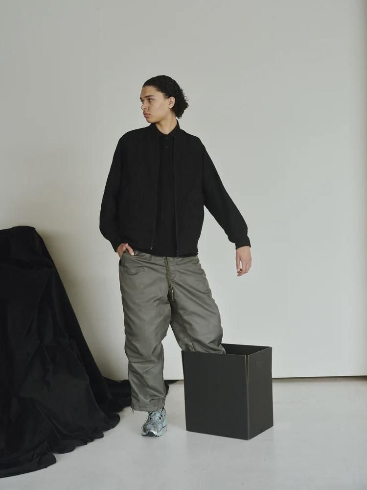 無骨なイメージがあるボンバージャケットの装飾性を省き、生地の柄でデザイン性を表現したライトアウター。