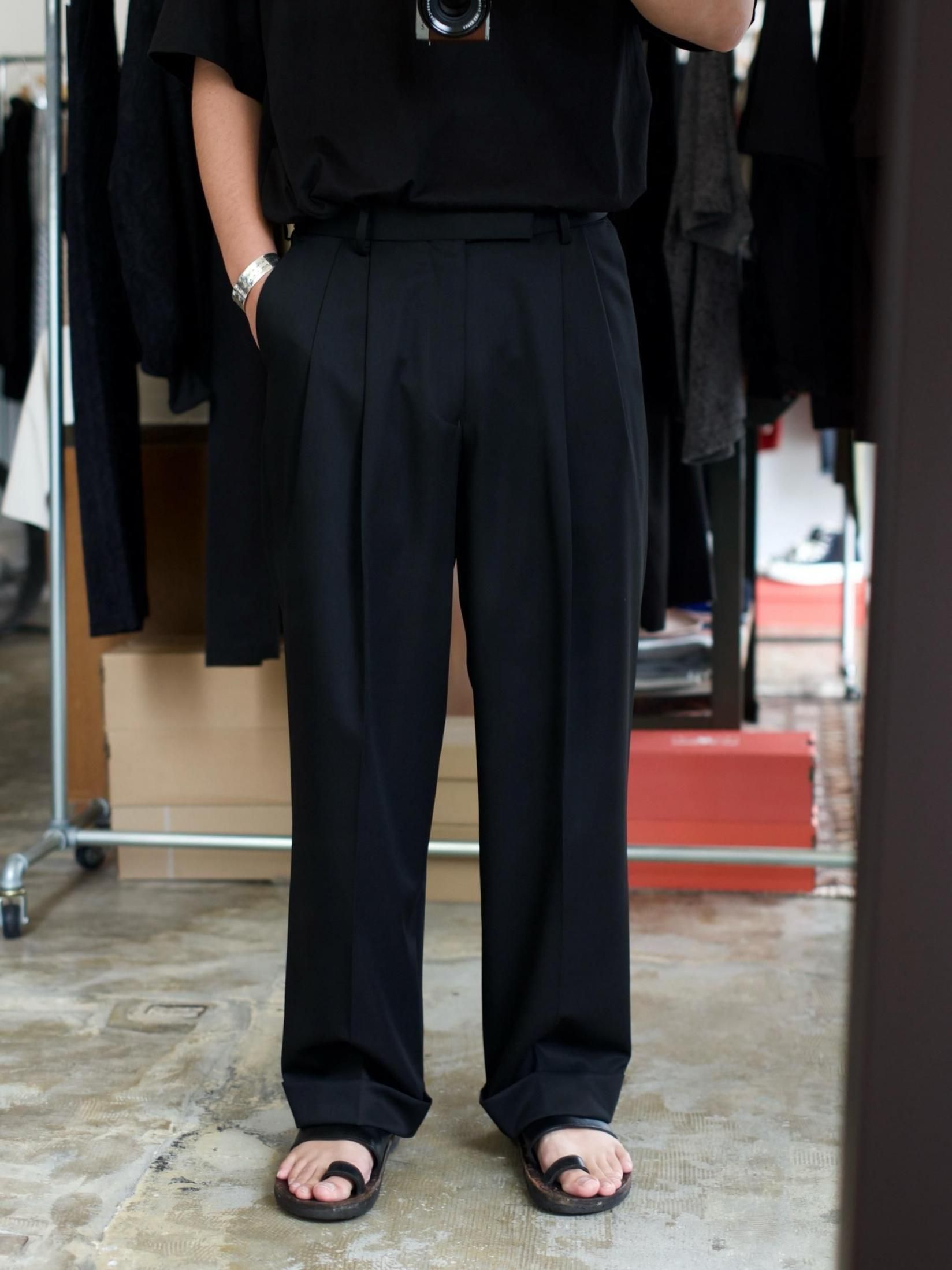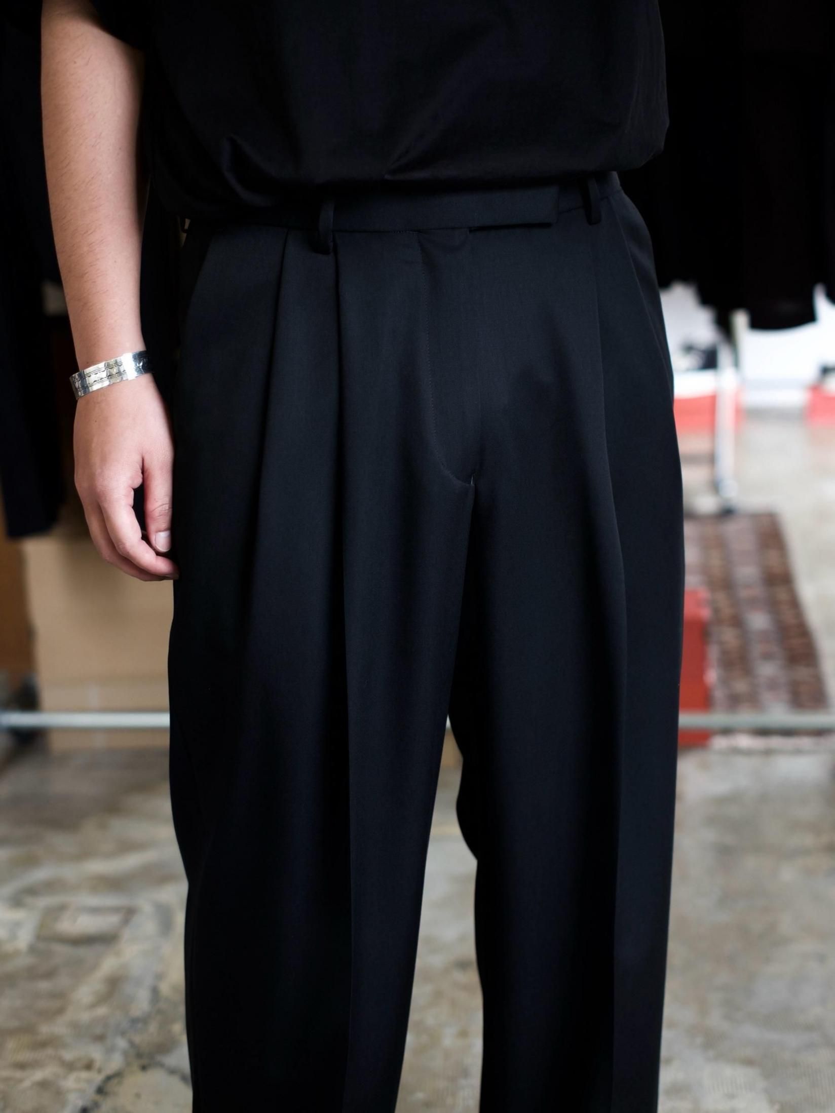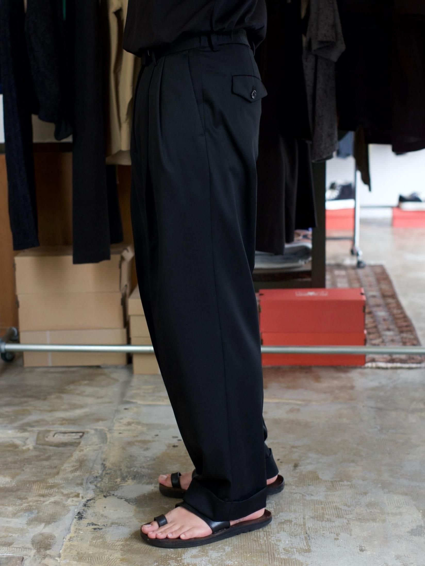 " オーガニックウール 2/80 ギャバジン ダブルプリーテッドワイドトラウザーズ "