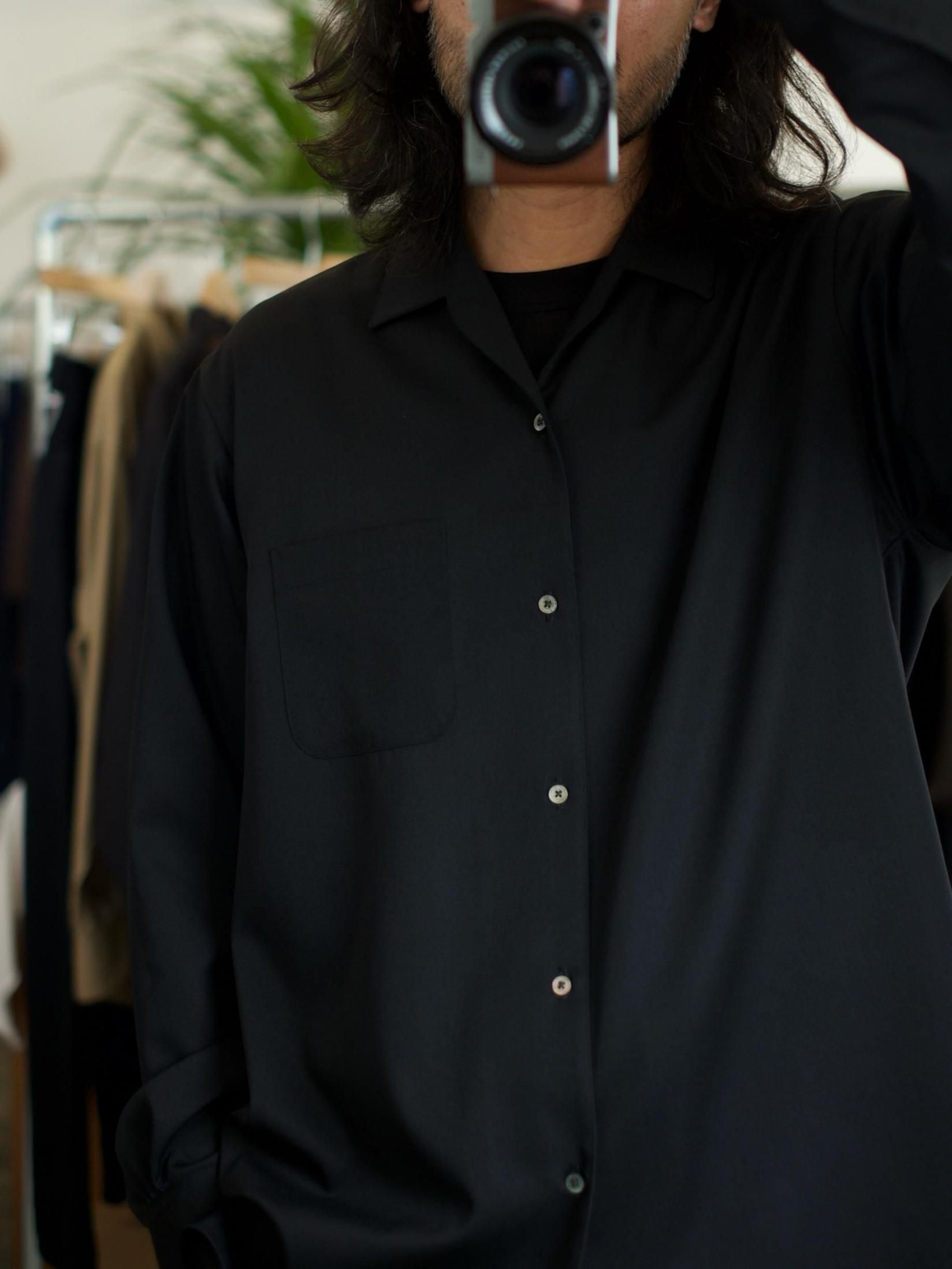 " オーガニックウール 2/80 ギャバジン イタリアンオープンカラーシャツ "