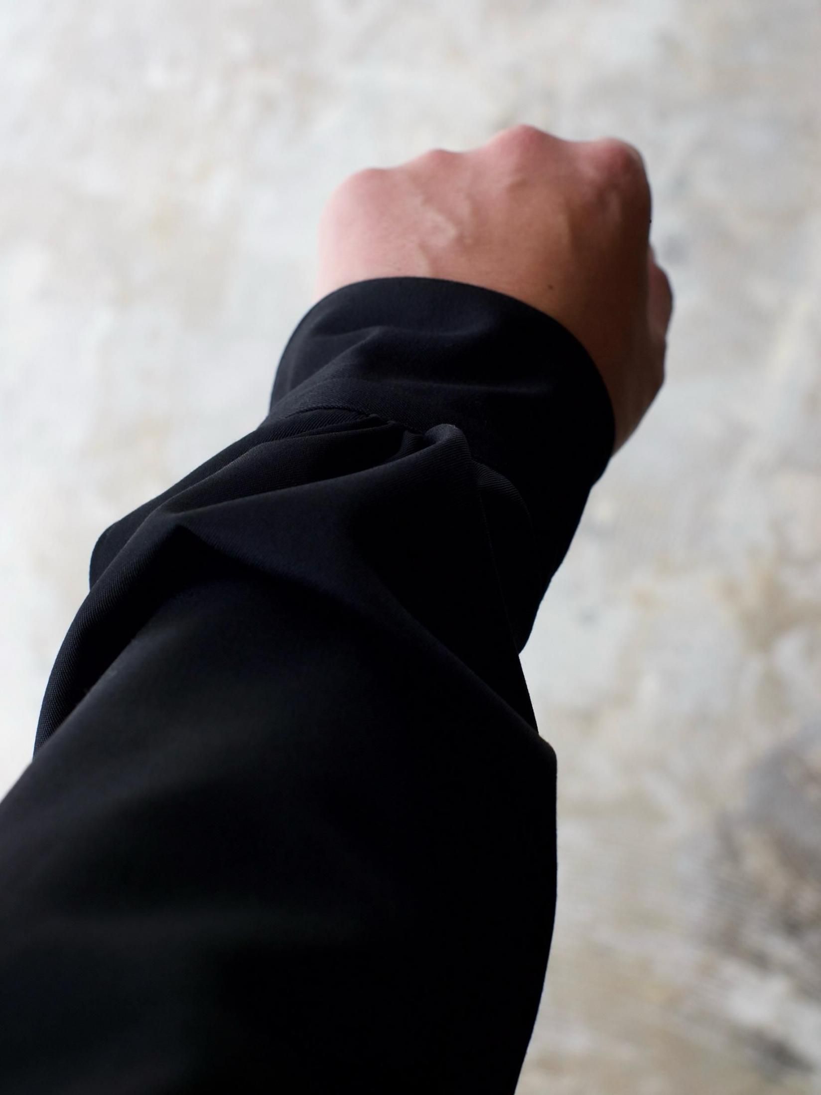 ウール素材の特性により、一日着用してもシワになりにくく、ついたシワもスチーマーで簡単にリセット可能。