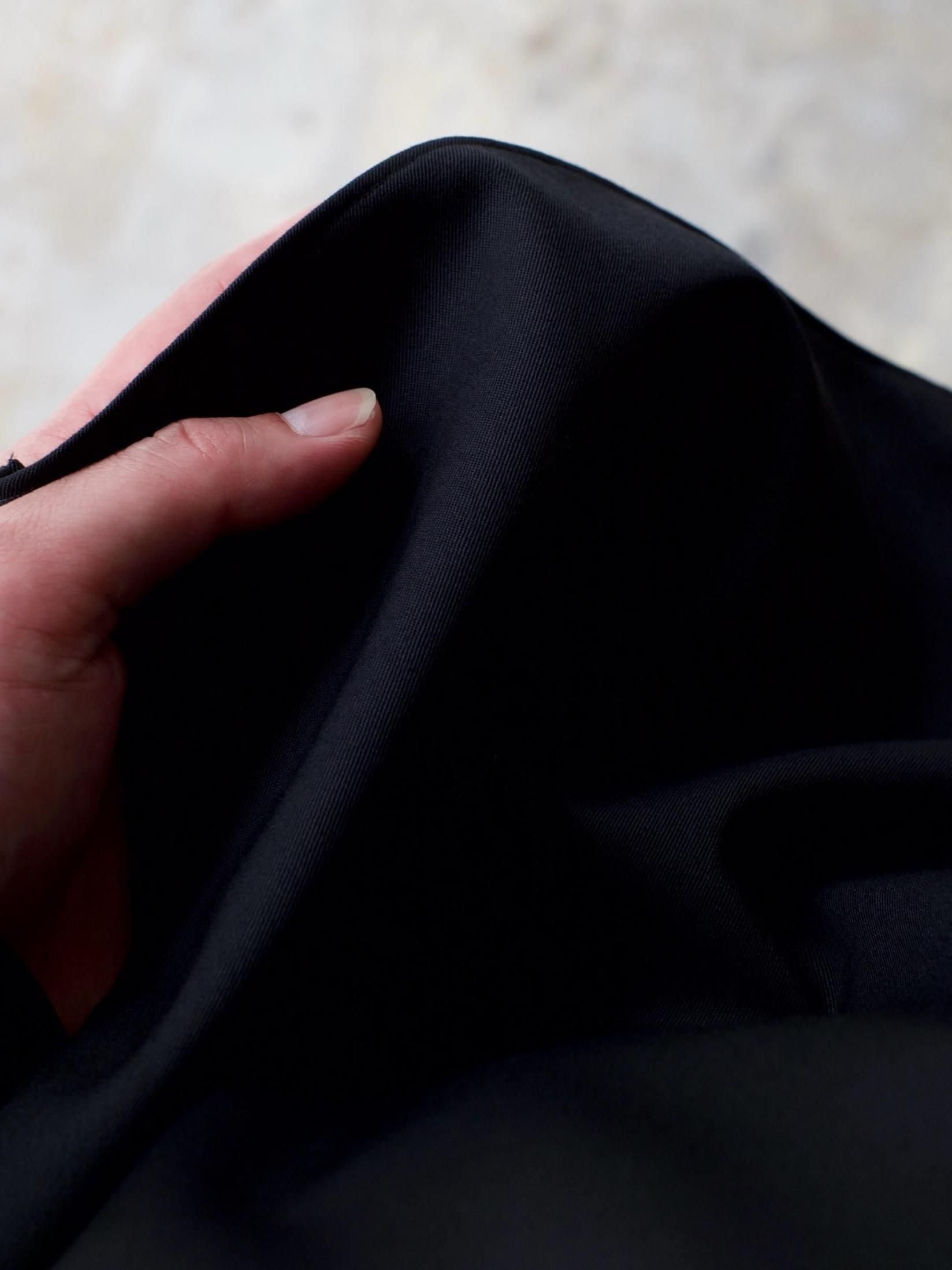 素材がもたらす豊かな光沢とドレープ性が、イタリアンカラーと相まって、洗練されたエレガンスを演出します。