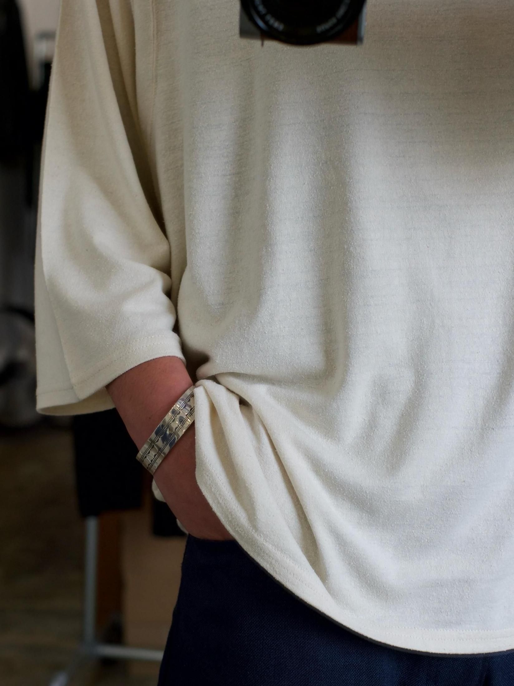 袖丈を7部袖にし一枚でも様になるアイテムです。