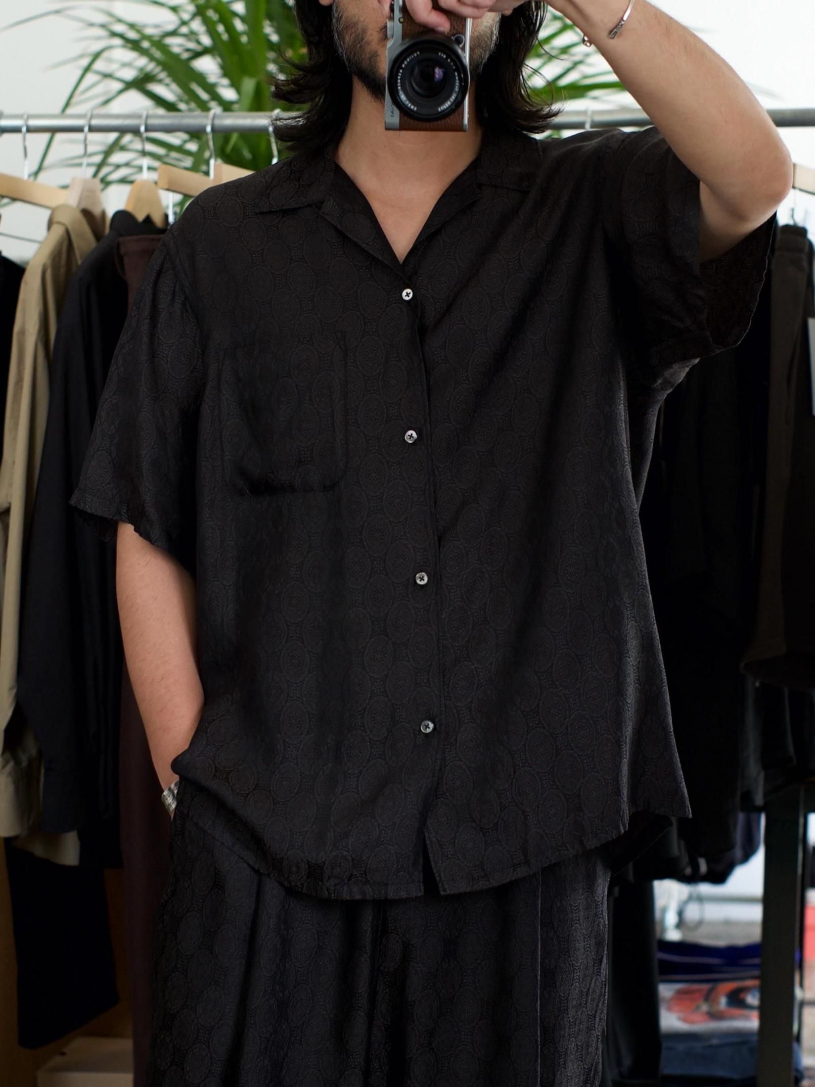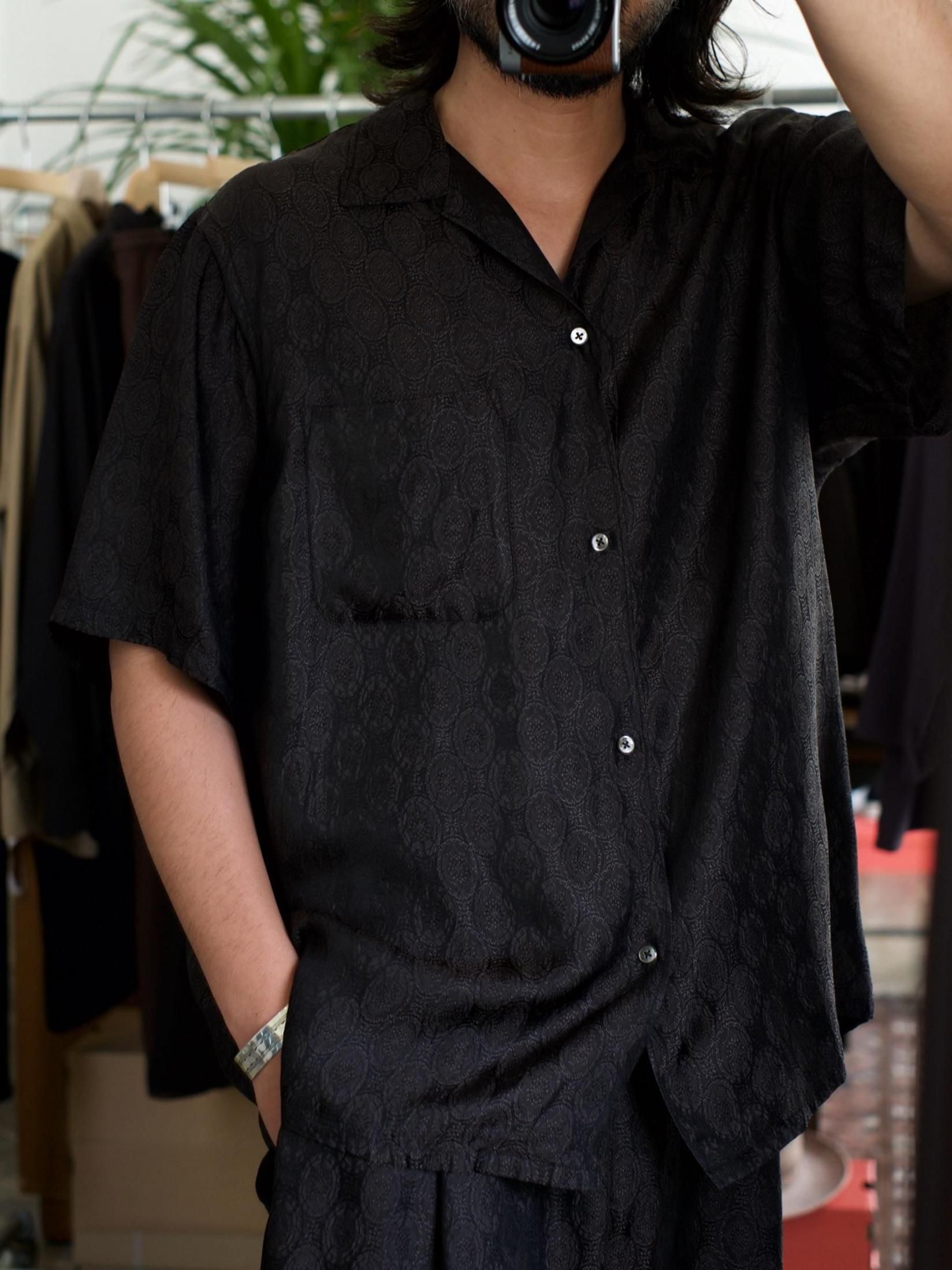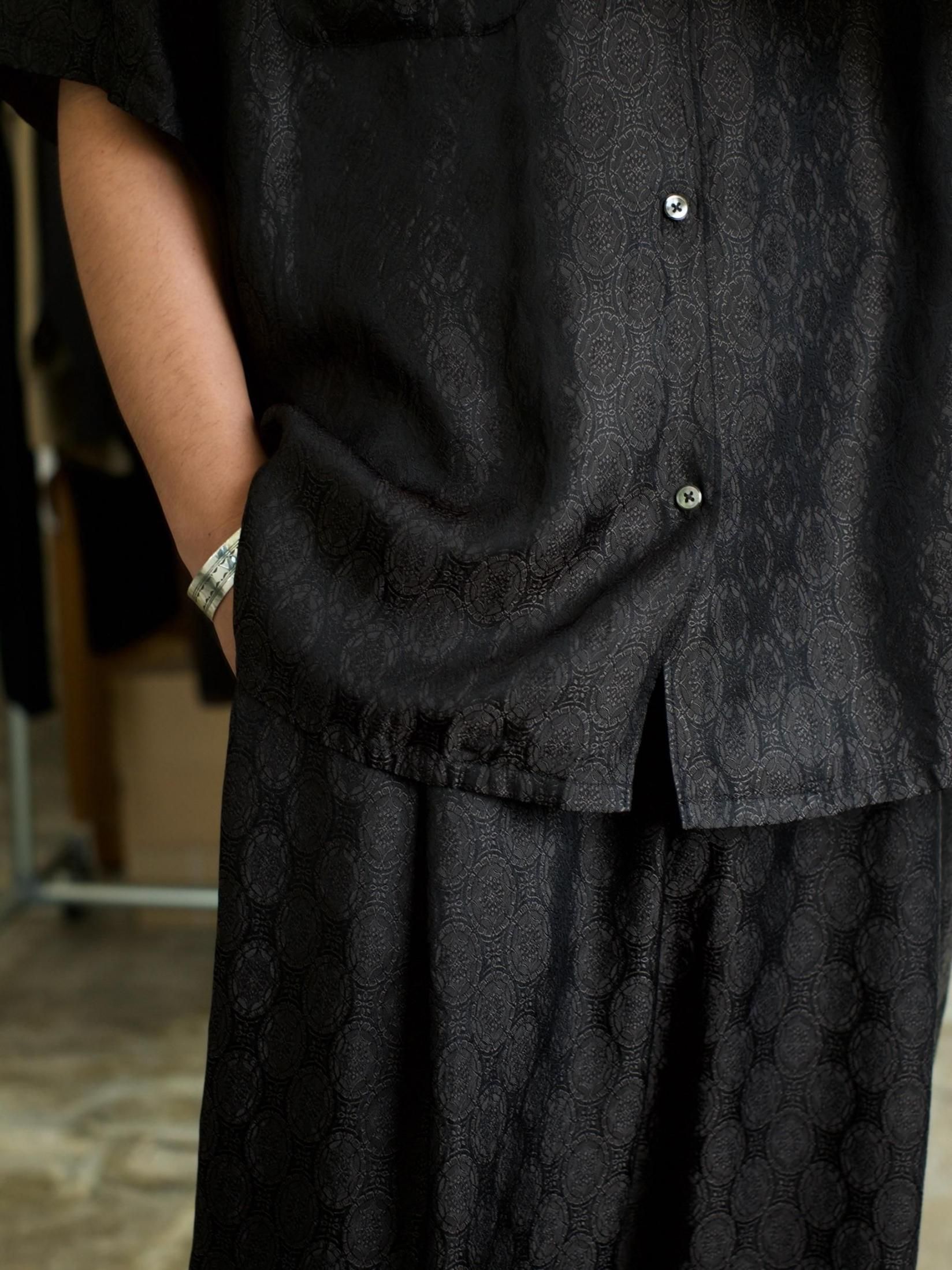 動きによって濃淡のある独特な色合いを魅せてくれるオリジナルの総柄が印象的。