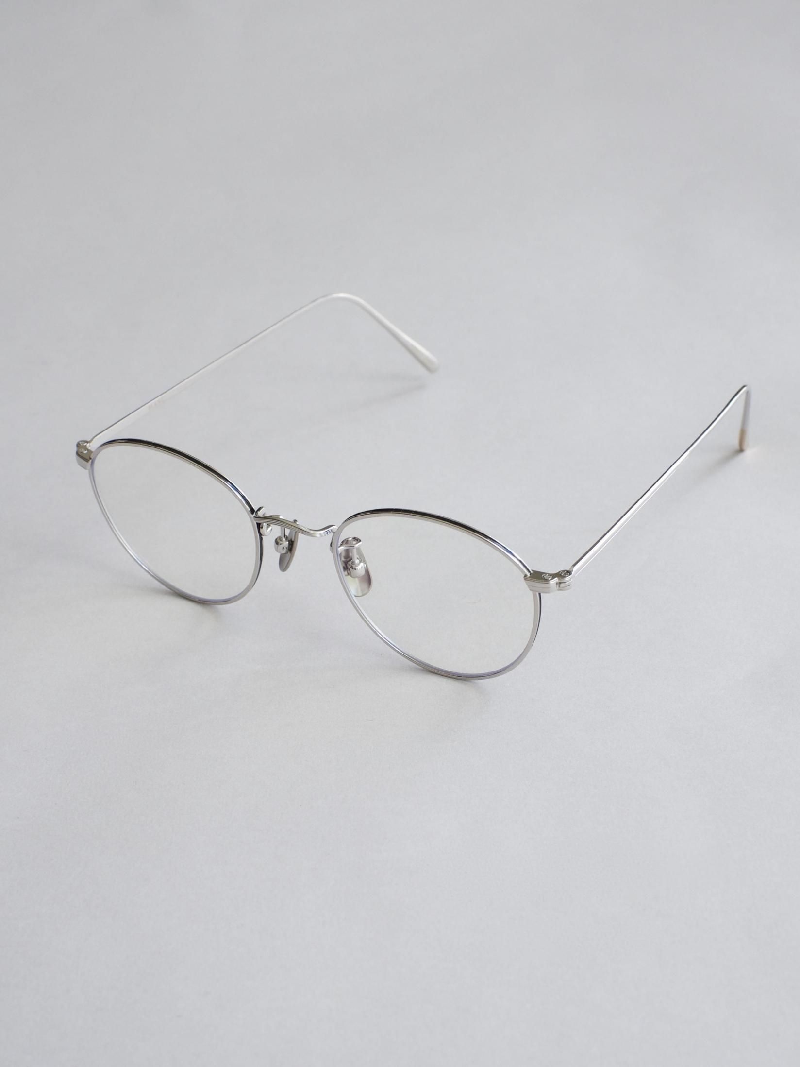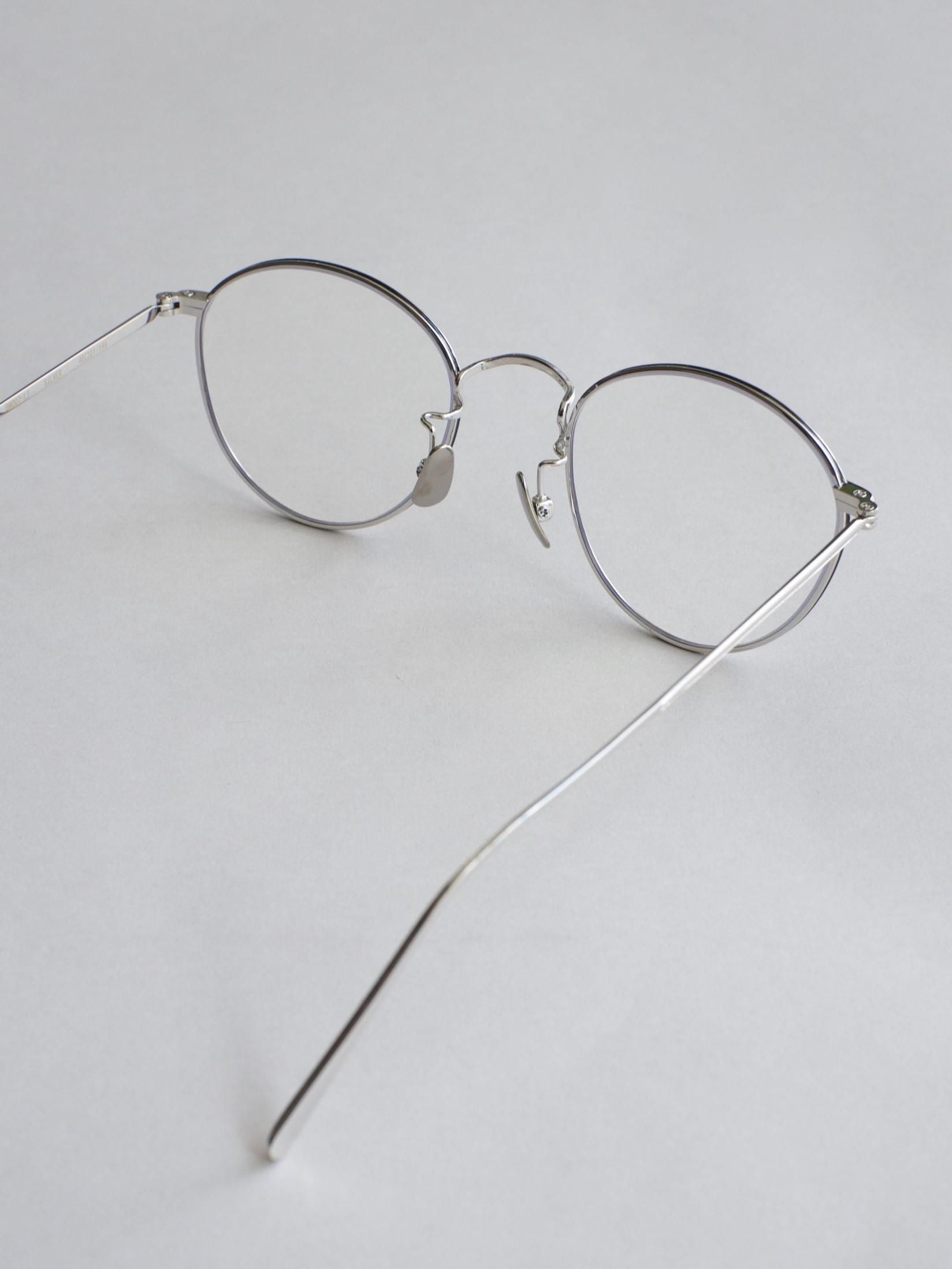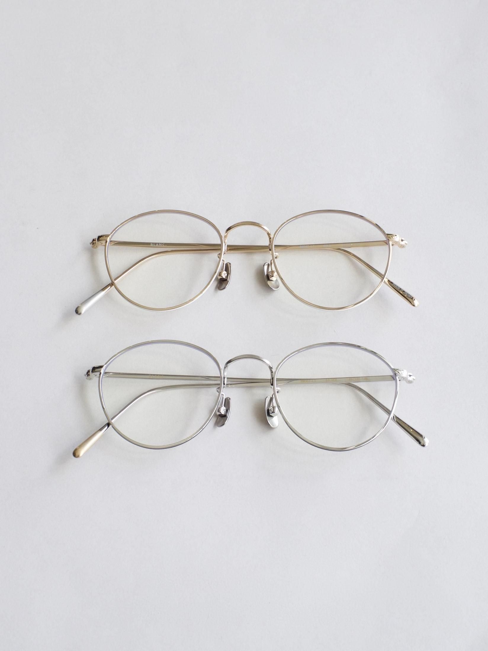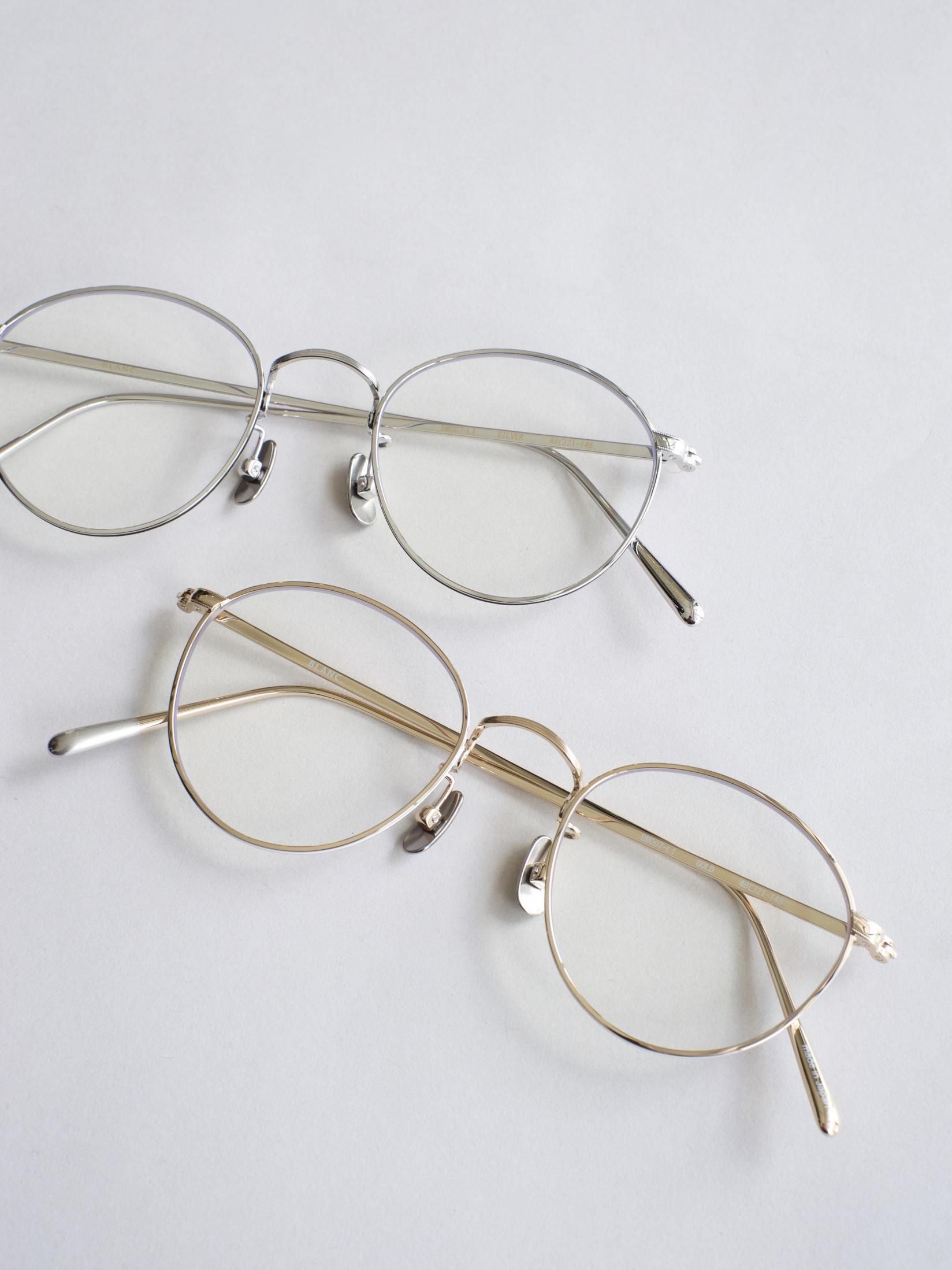 ボストン型のシンプルで軽量なメタルフレームのリム側面に溝を掘り、職人の七宝技術で入れたカラーラインがアクセント。