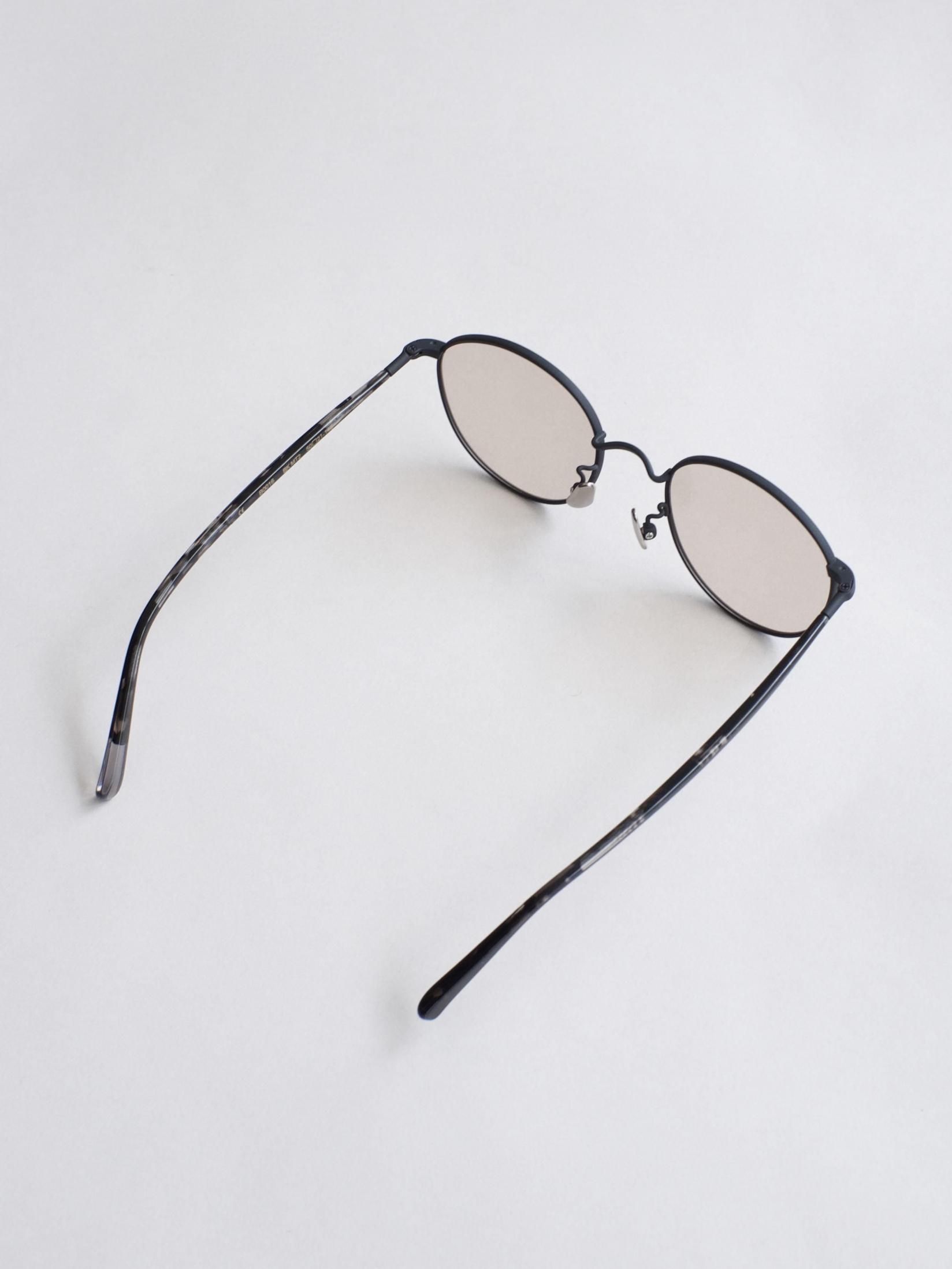 ディティールはクラシックに仕上げ、それに対し少し大きめの玉型や厚めのリム、セミフラットレンズの採用によりモード感をプラス。
