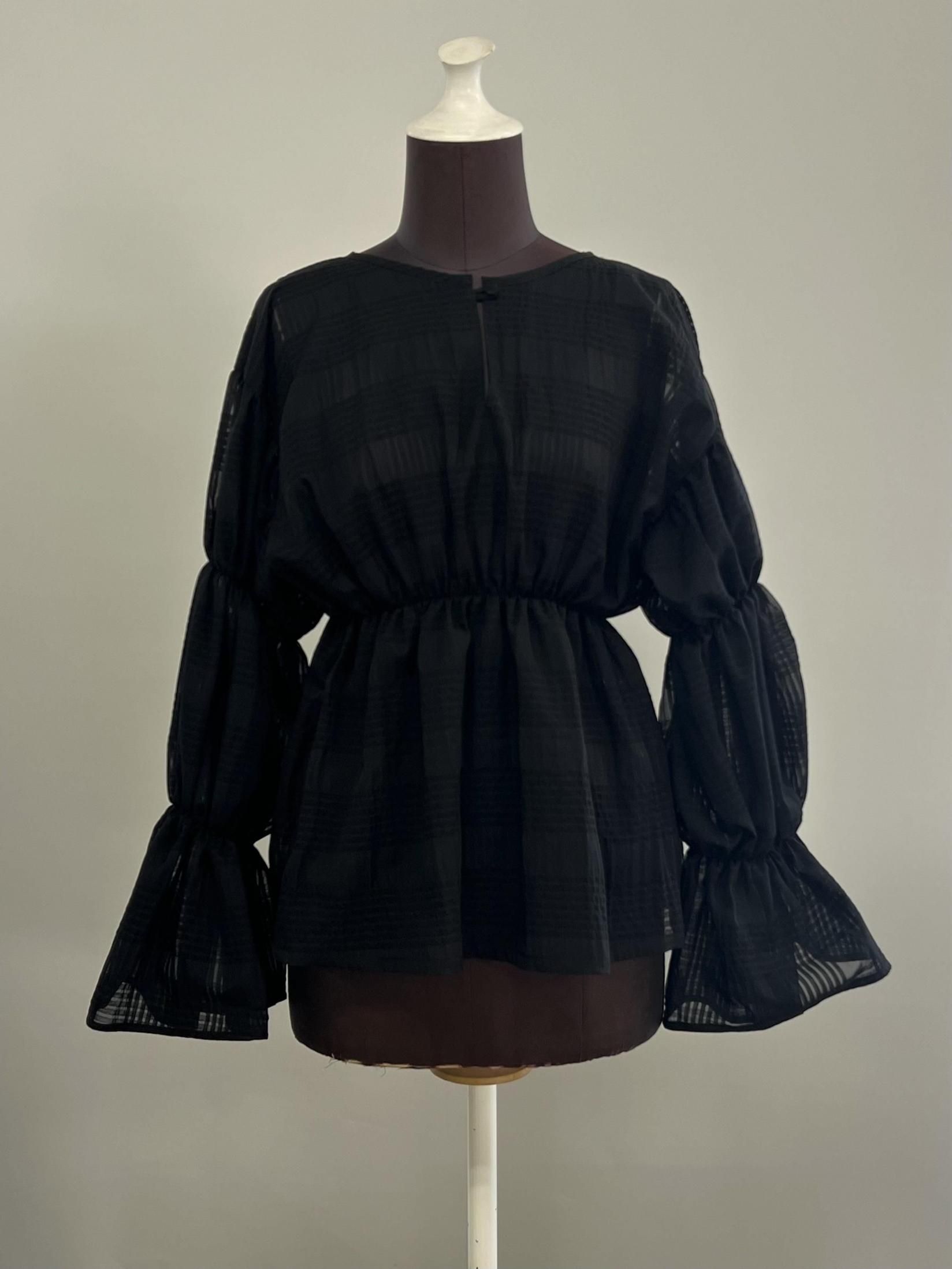マムルークスリーブ(ゴムでしぼませた袖の形状)が特徴のブラウス。
