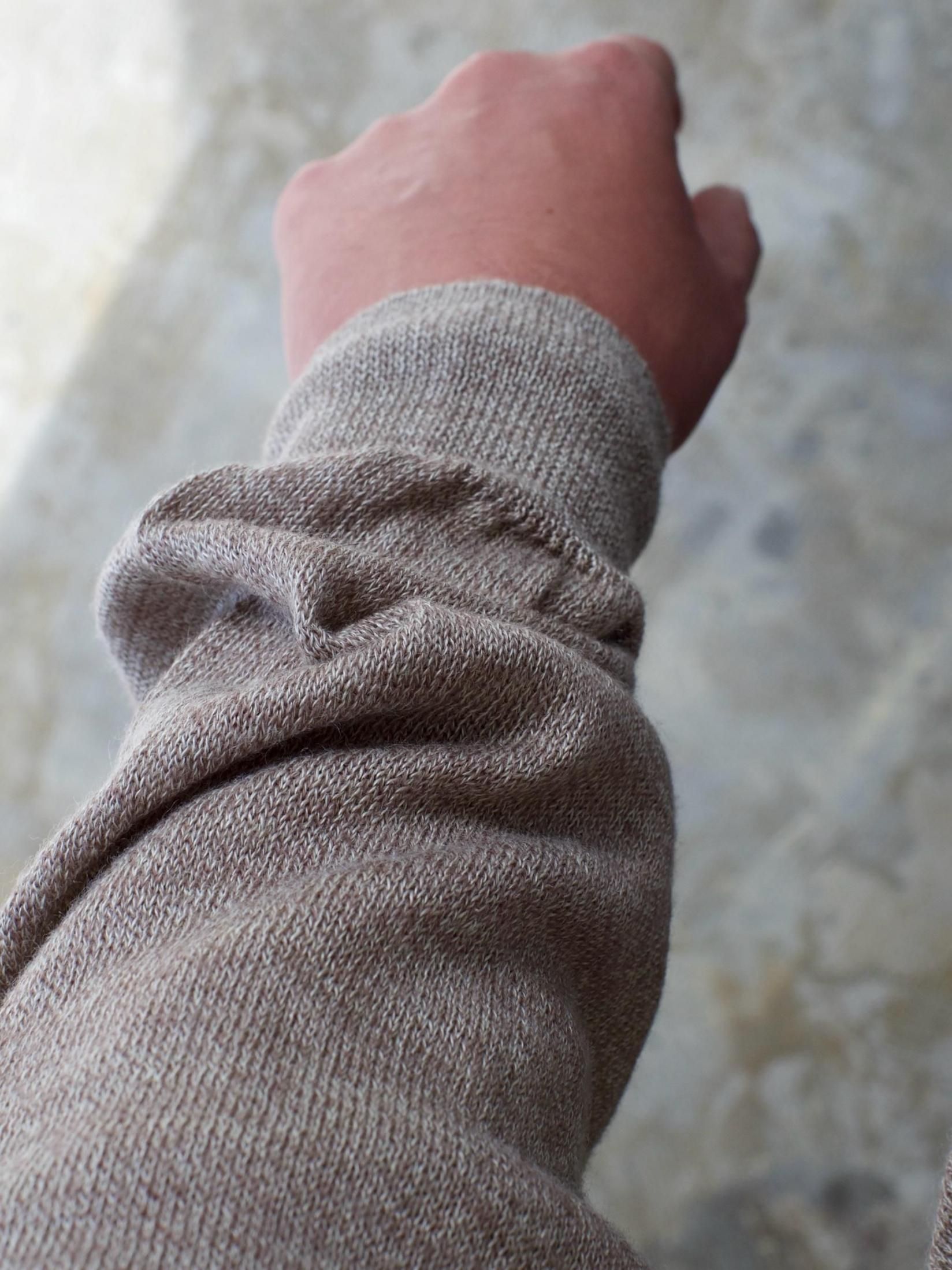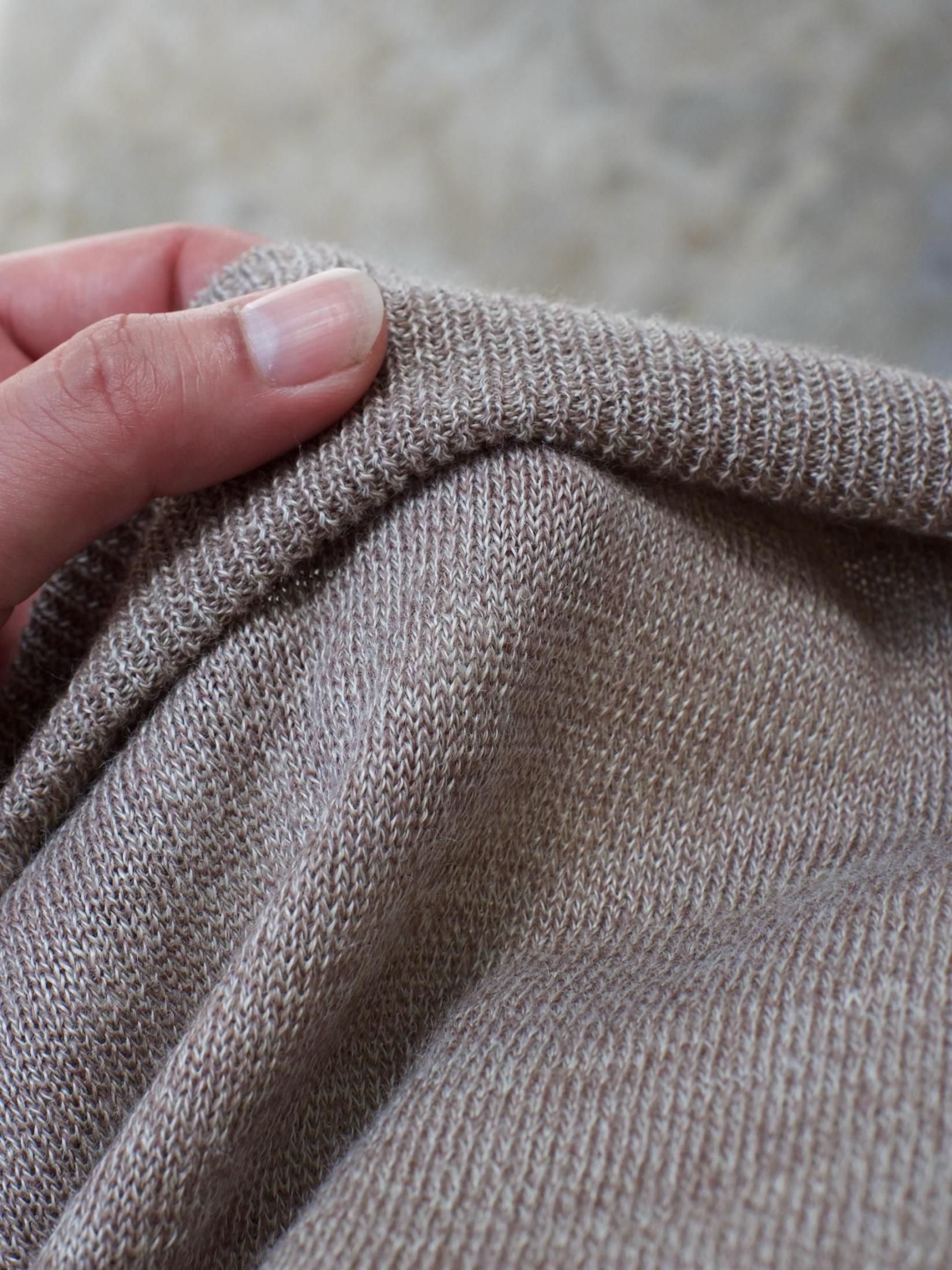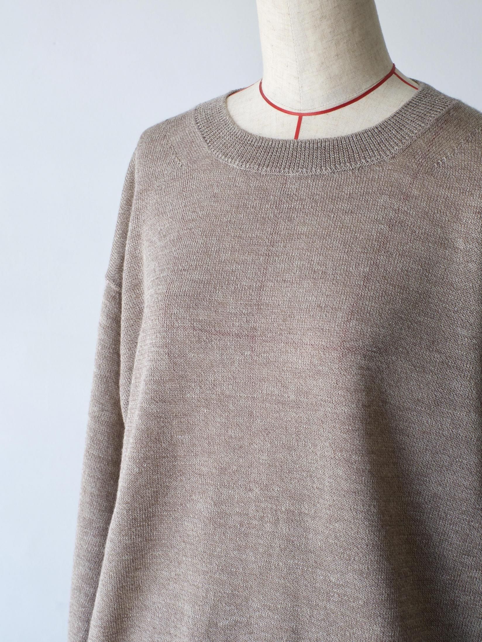 細番手のラミーと細番手の梳毛を撚糸した糸をゆるく編んだシアー感のあるシリーズ。