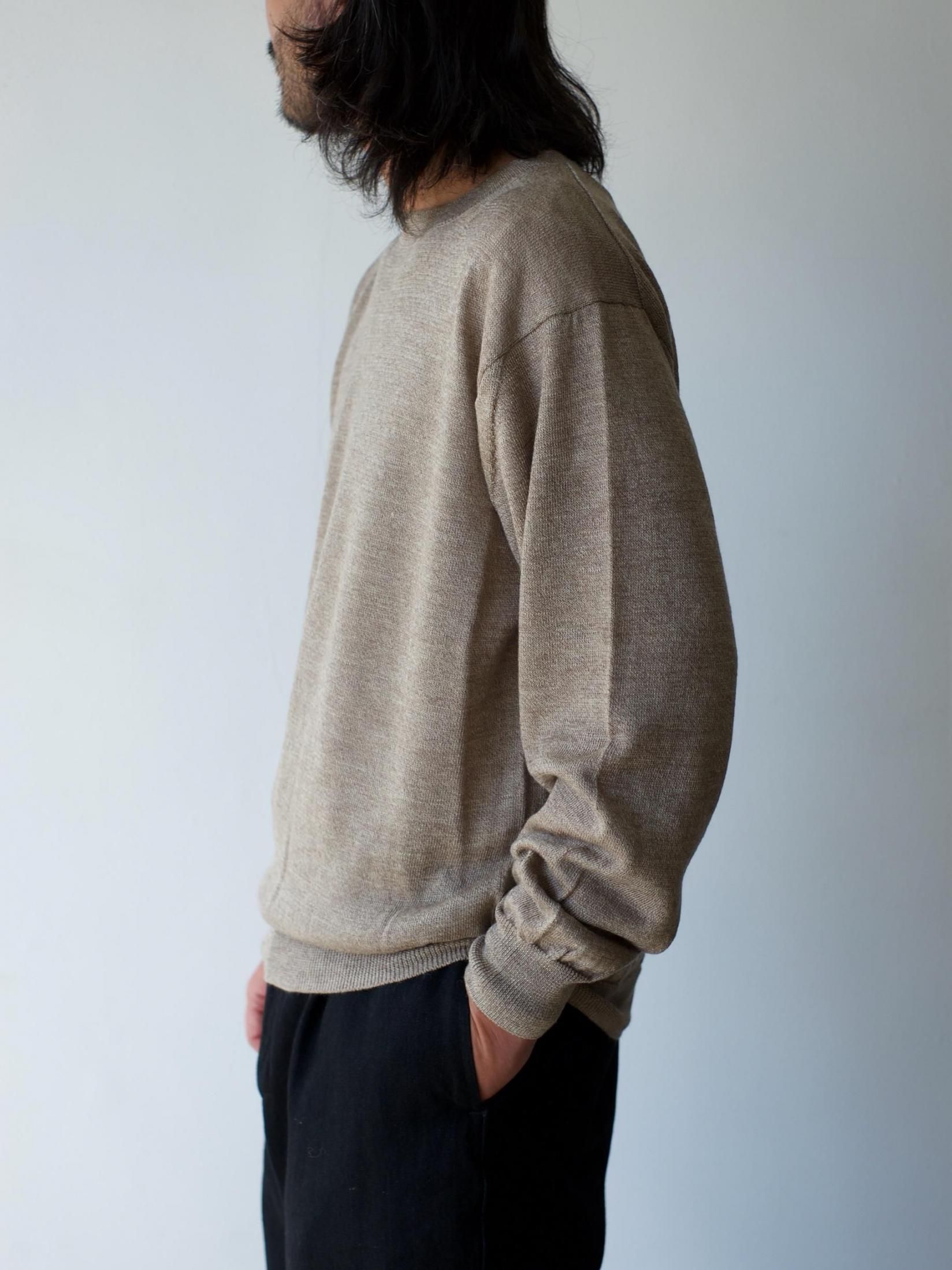 ラミーウール素材のクルーネックセーター。