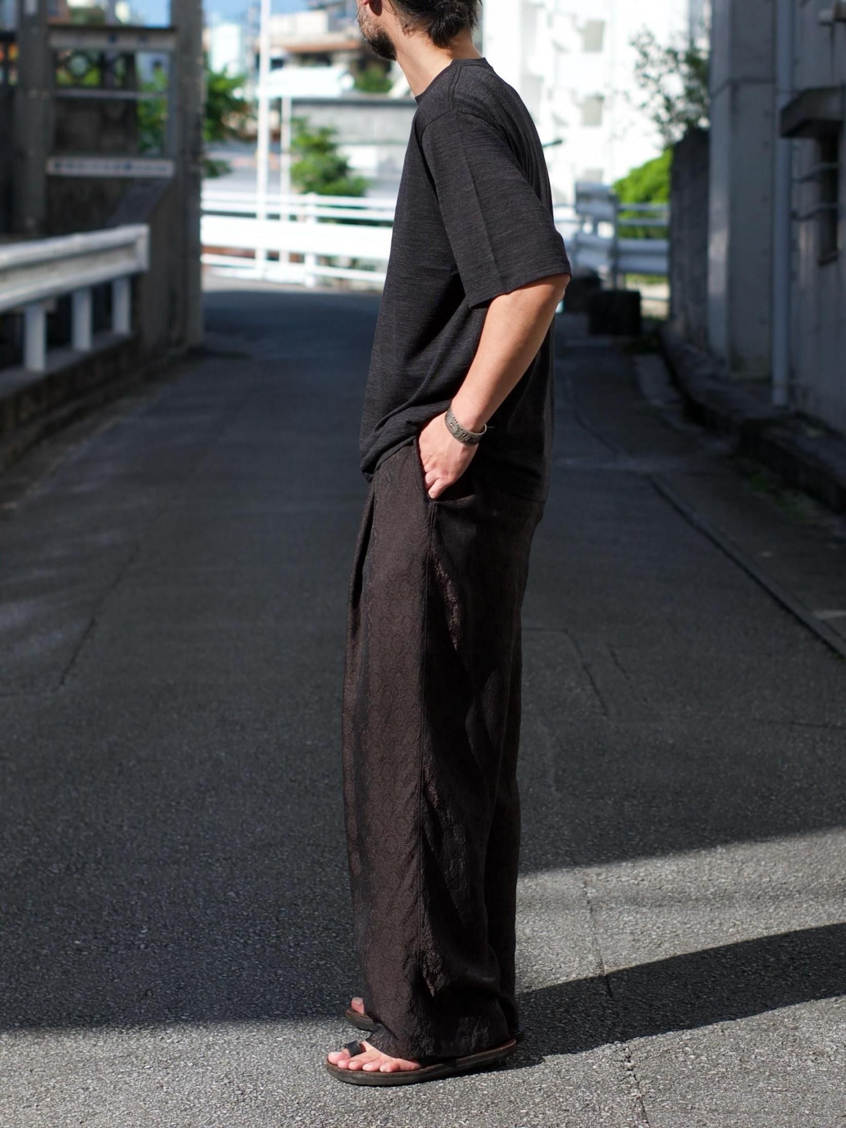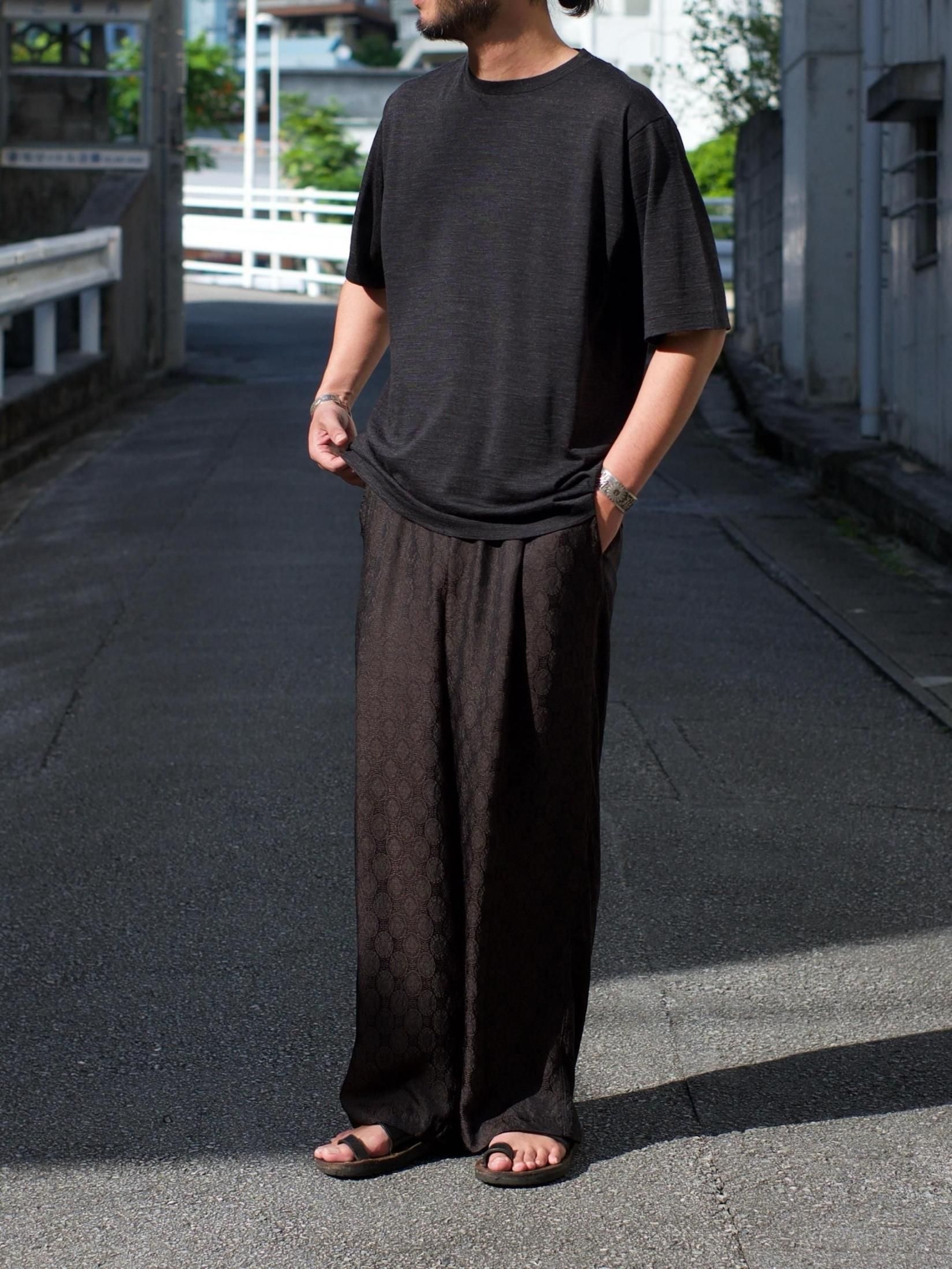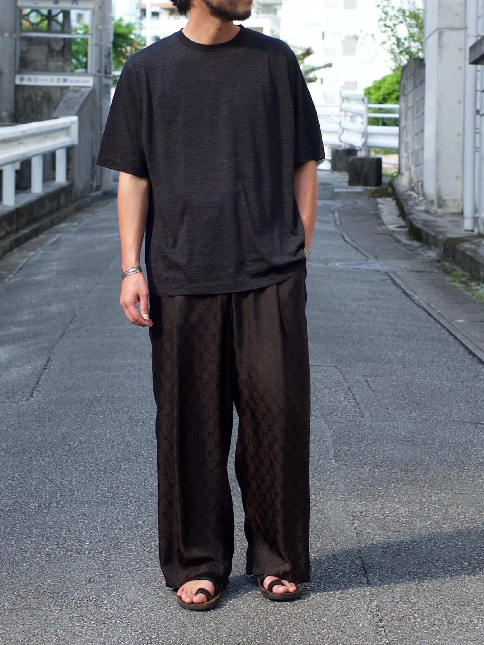 梳毛WOOLの特徴をあえて消さないように、肌触り・風合い・ドレープ性を重視しながらウール100%の梳毛の生地を採用。