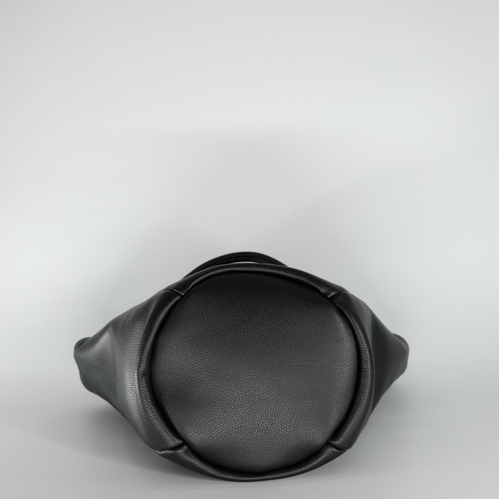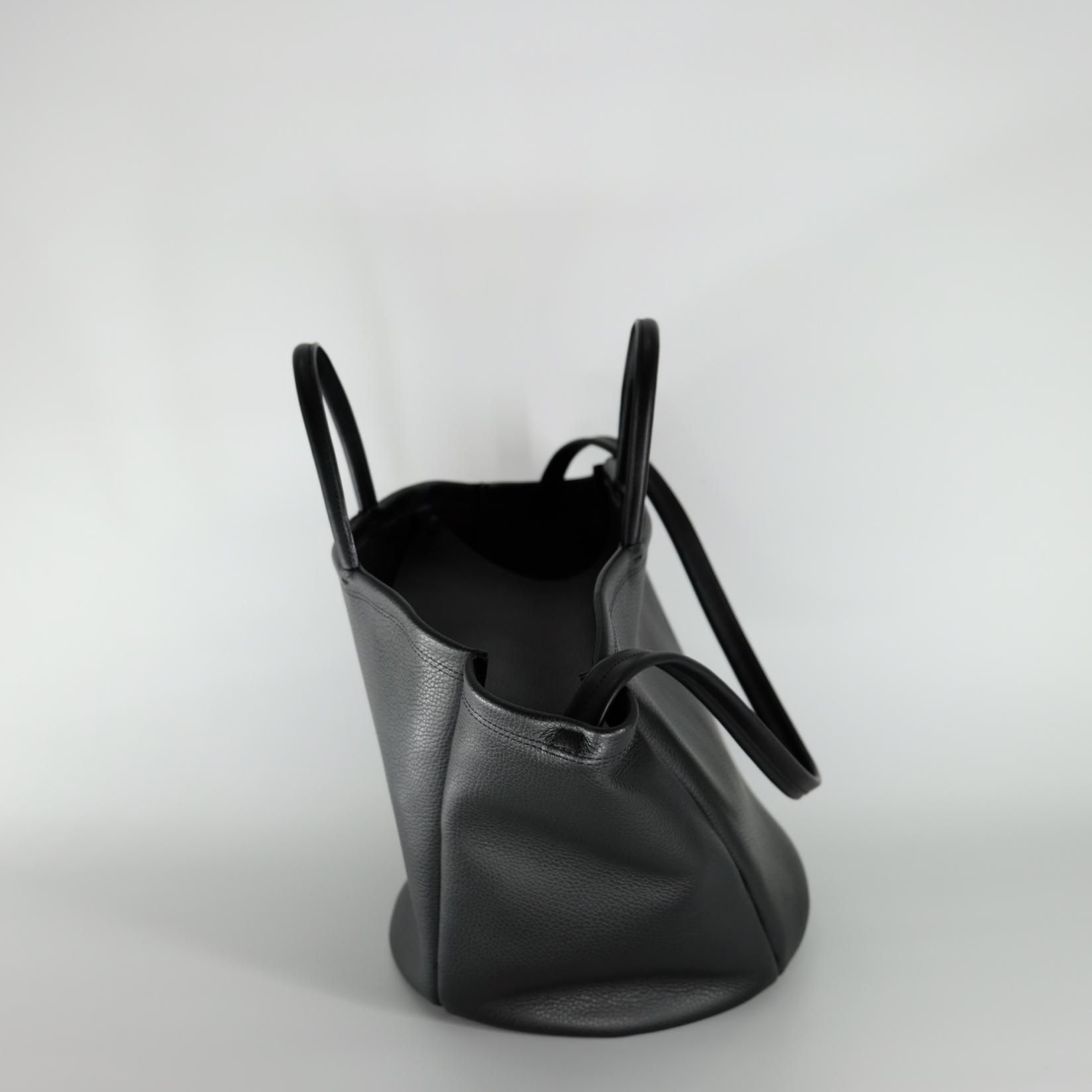BASKET=編まれたカゴバッグのように口が広がった舟形をレザーで再現しており、底の形状までも、編み上げていくカゴを意識し正円にしている。