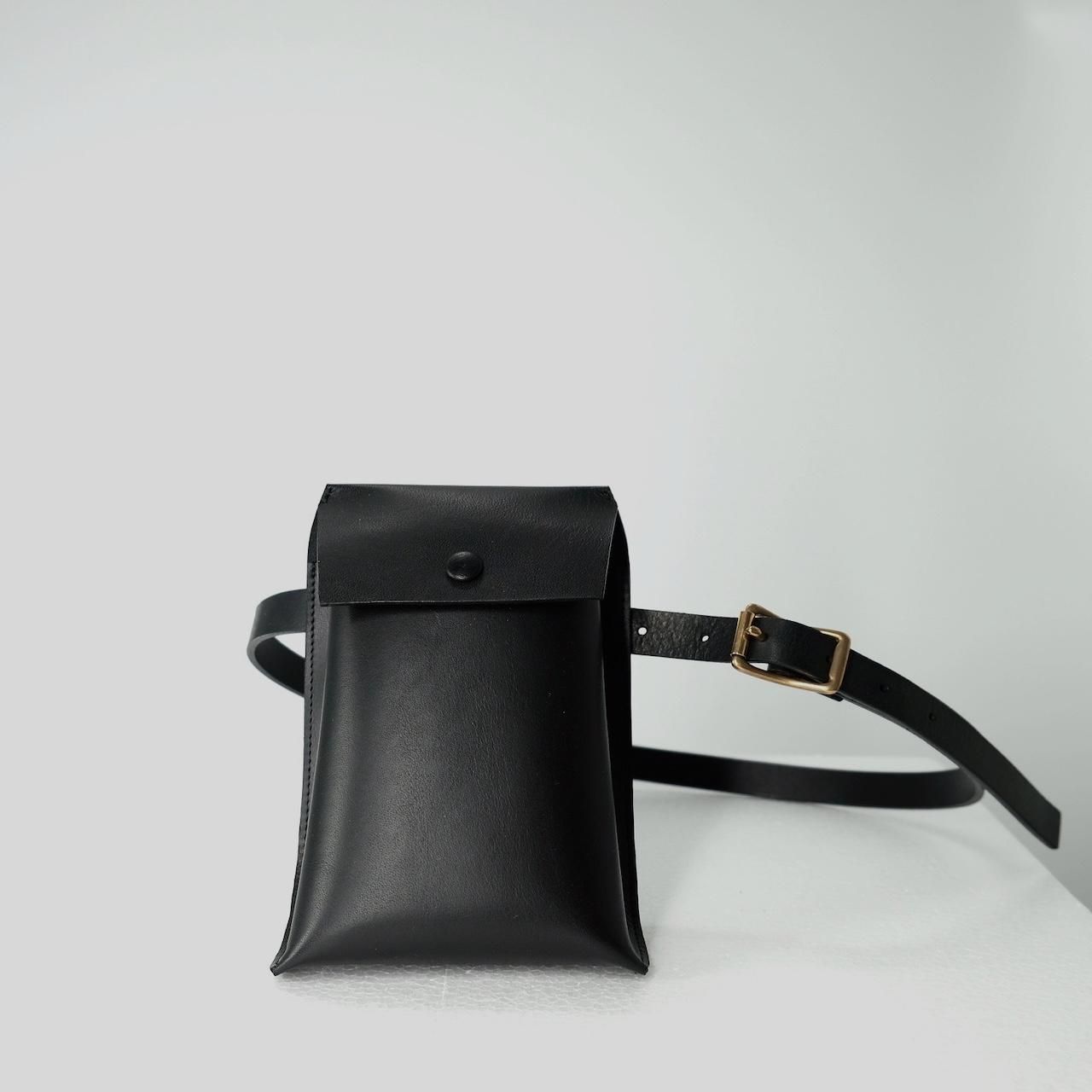 シンプルなベルトにMARROWらしい形状のポーチが付いたウエストポーチ。