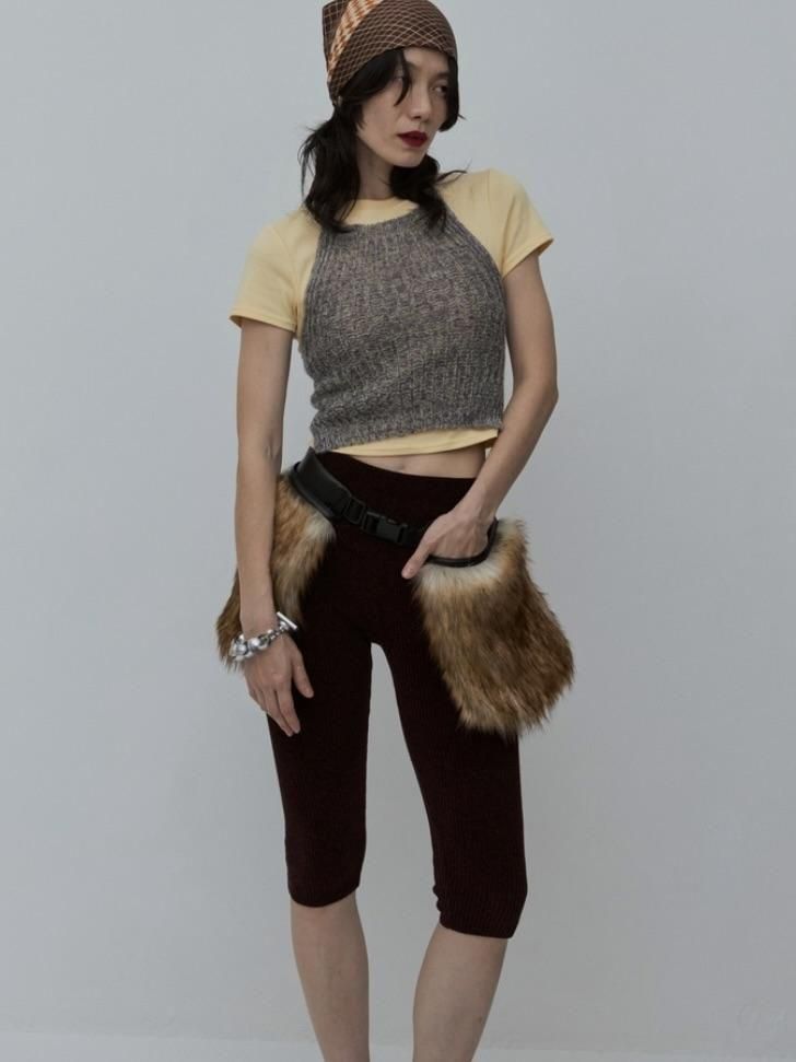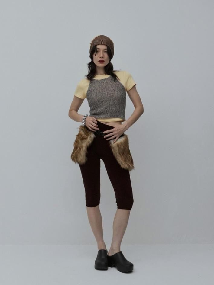 ベロアのような質感で、ストレッチが心地よいMole Knit Half Pants。
