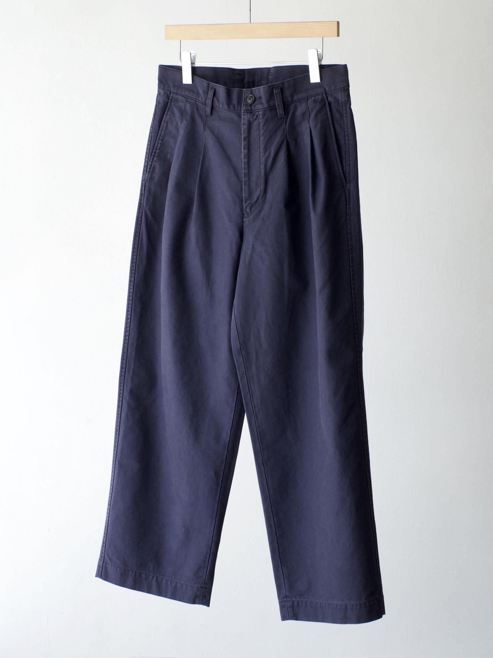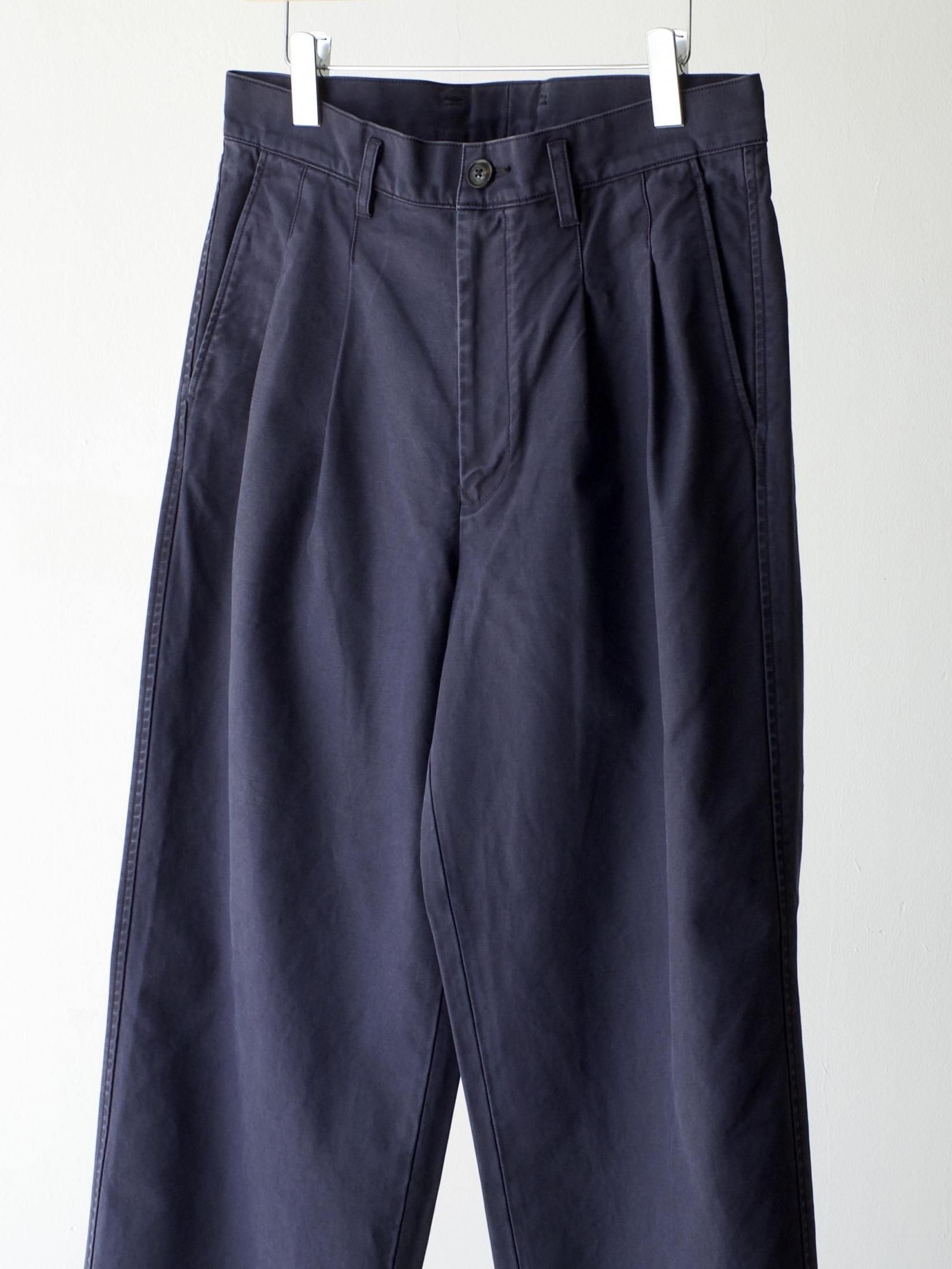2タックを入れた綺麗なワイドシルエットで綺麗な色味と風合いのある素材感が特徴の定番パンツ。