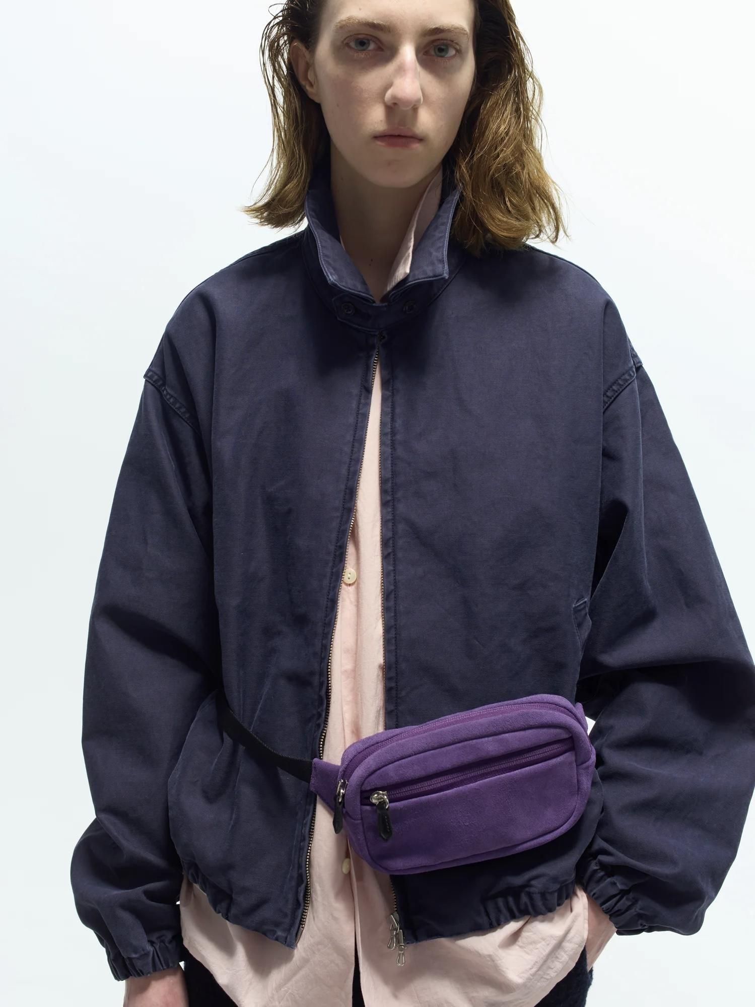 コットンバックサテン生地を使用したジップアップブルゾン。