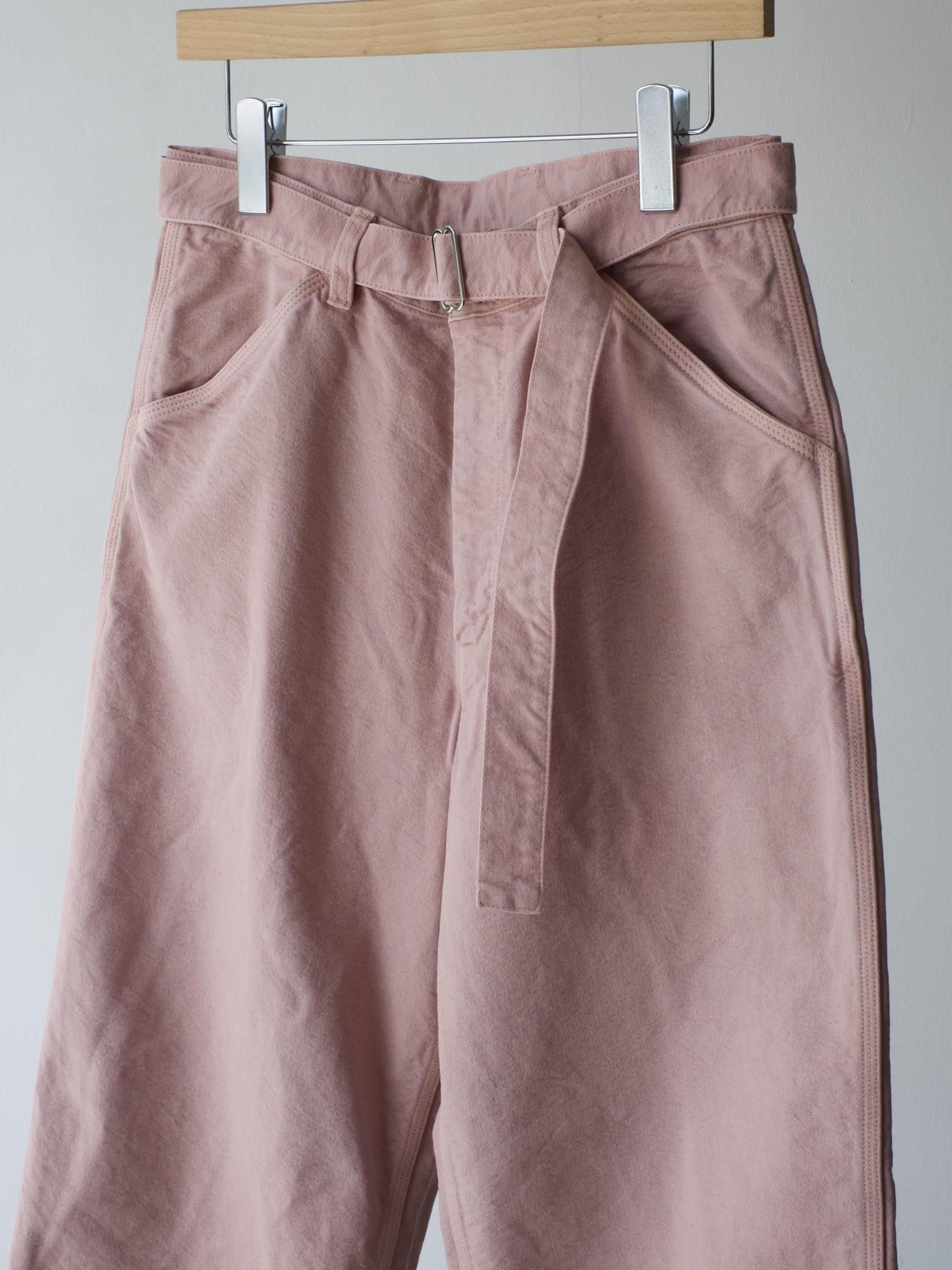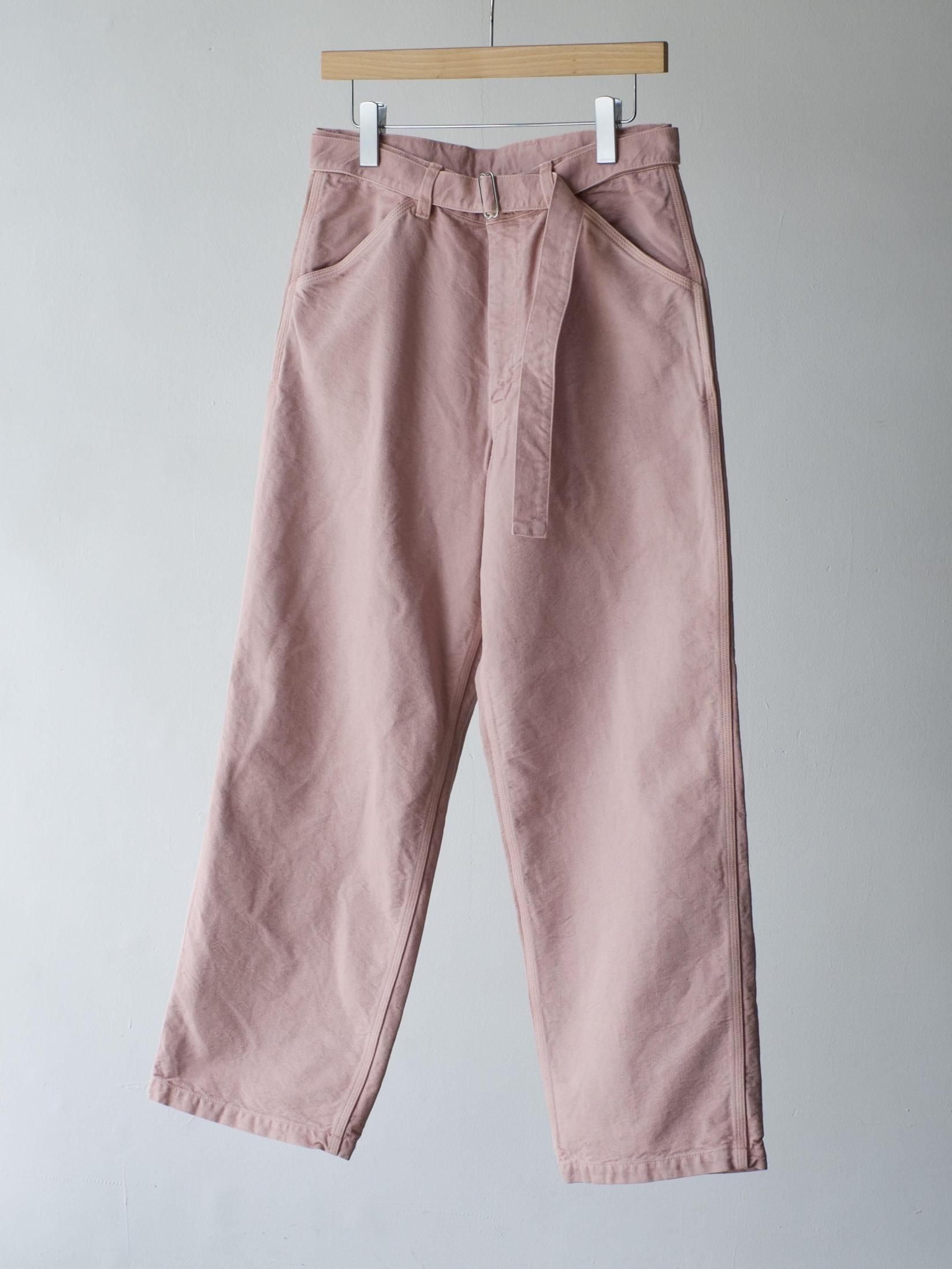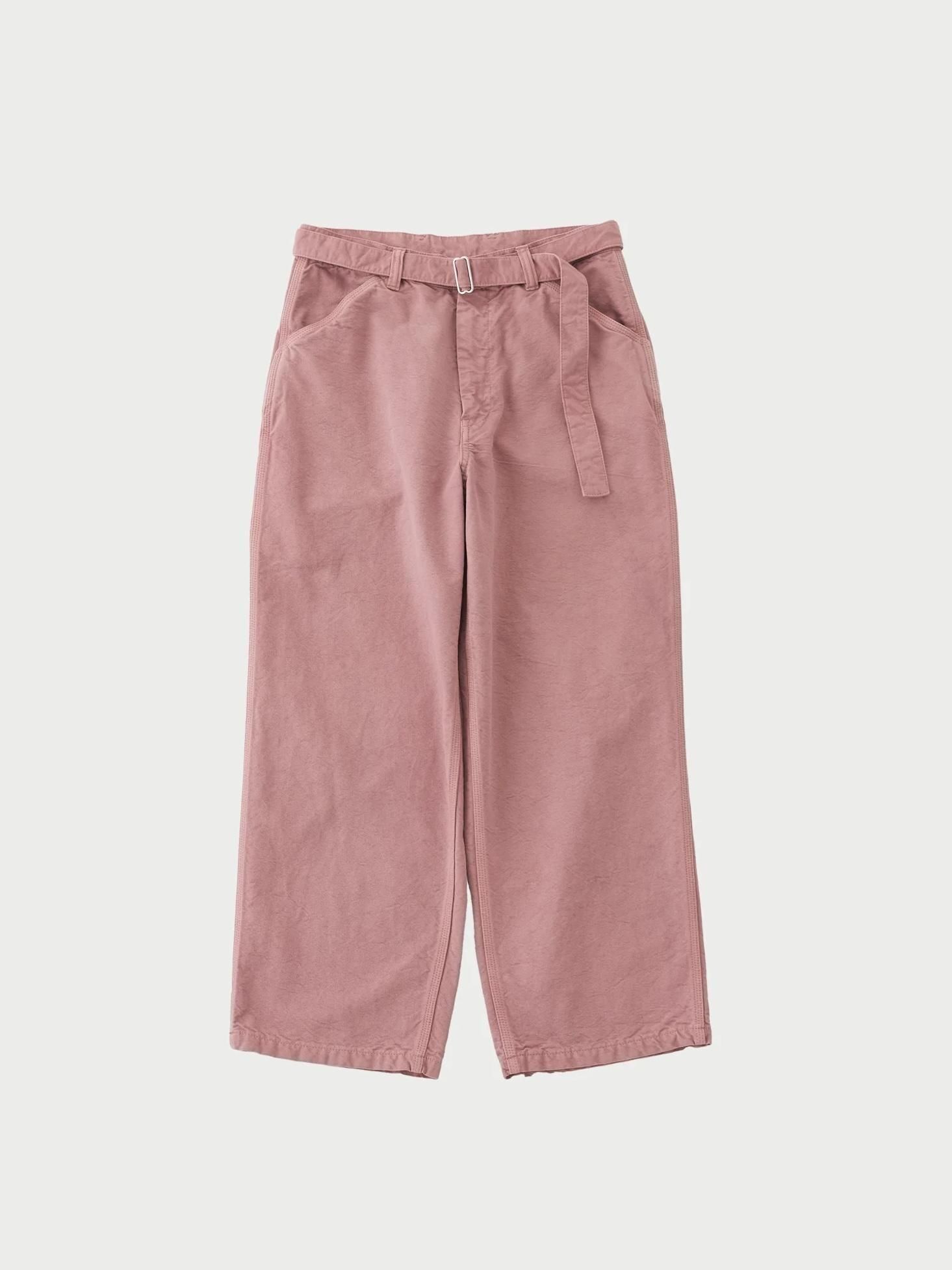 コットンキャンバス素材を使用したベルテッドパンツ。