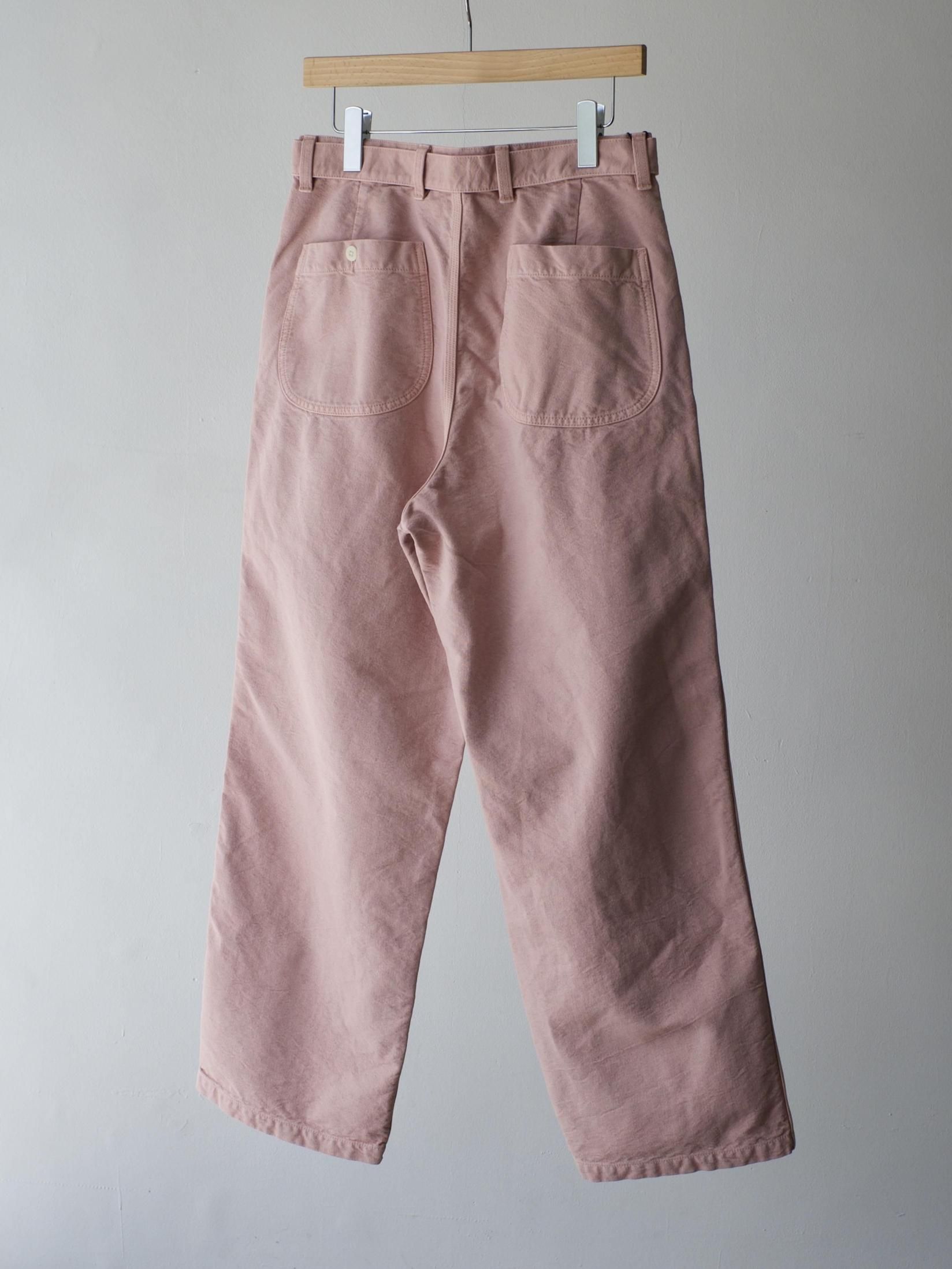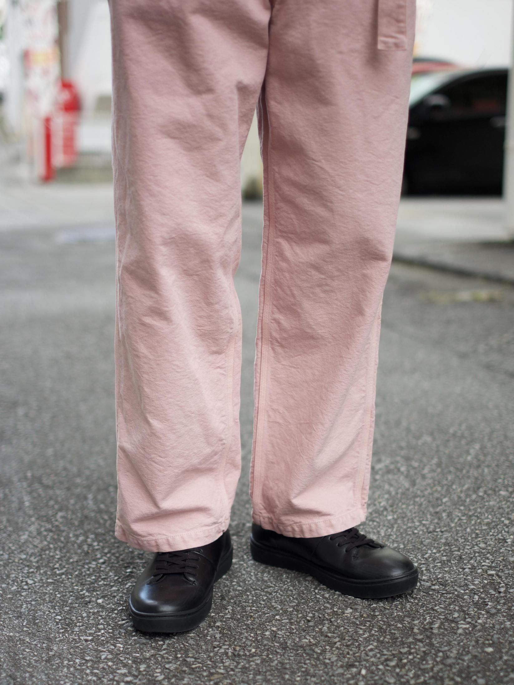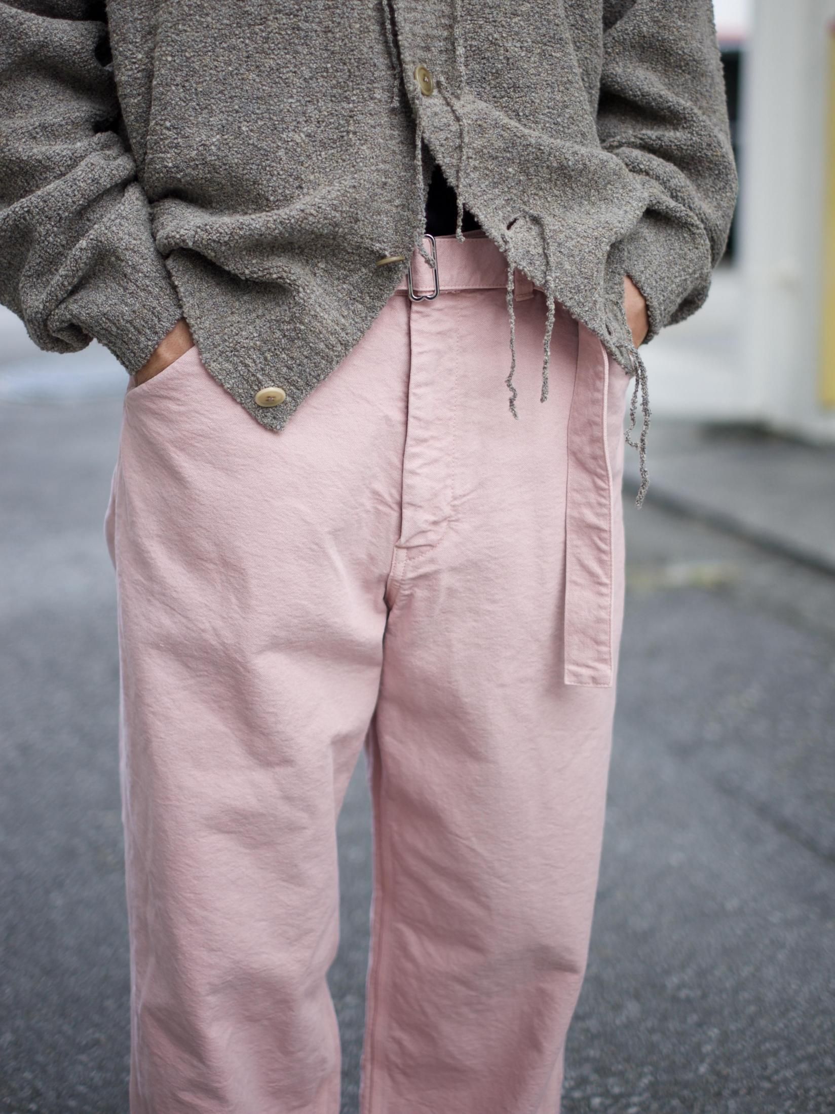 コットンキャンバス素材を使用したベルテッドパンツ。