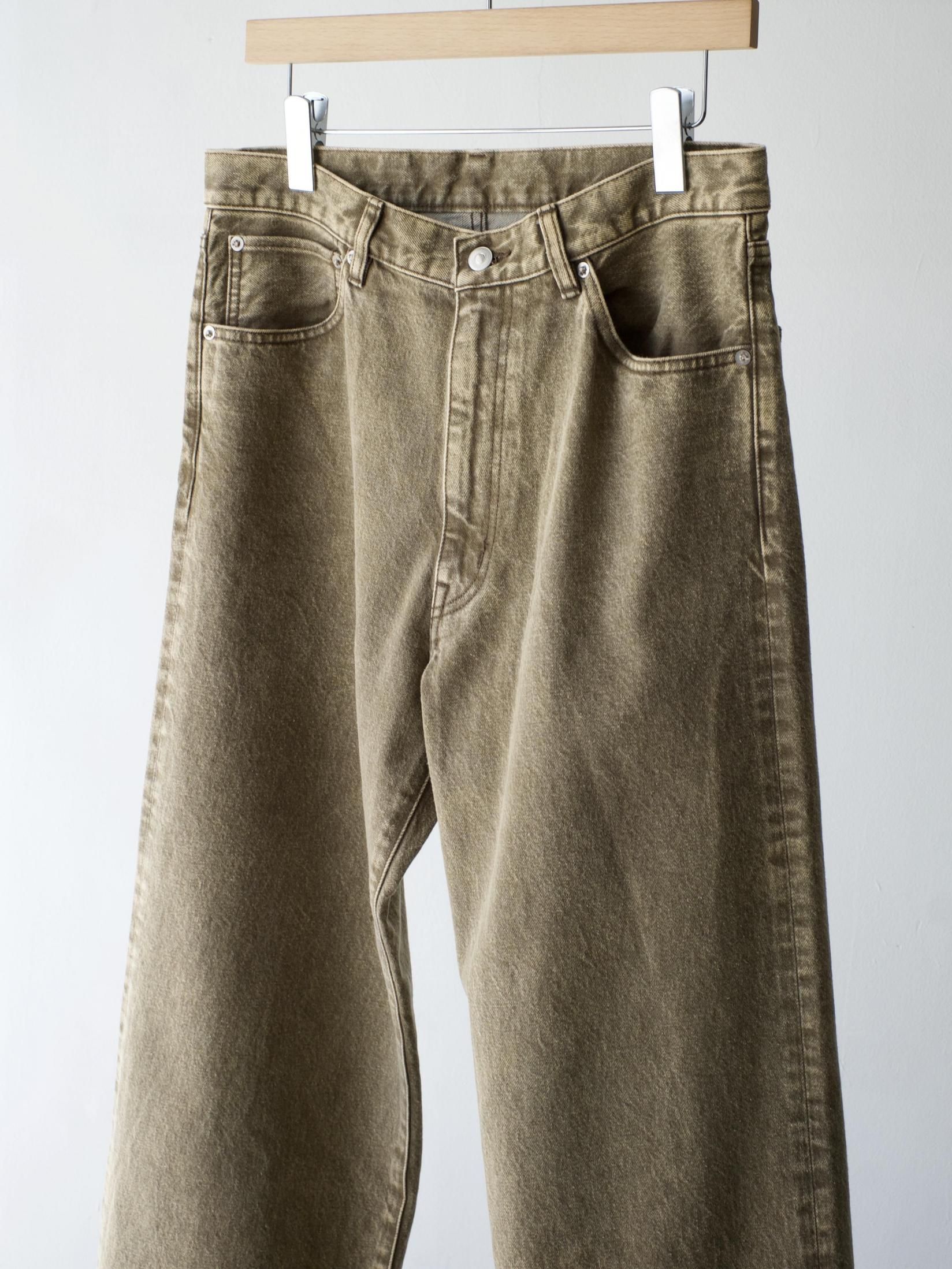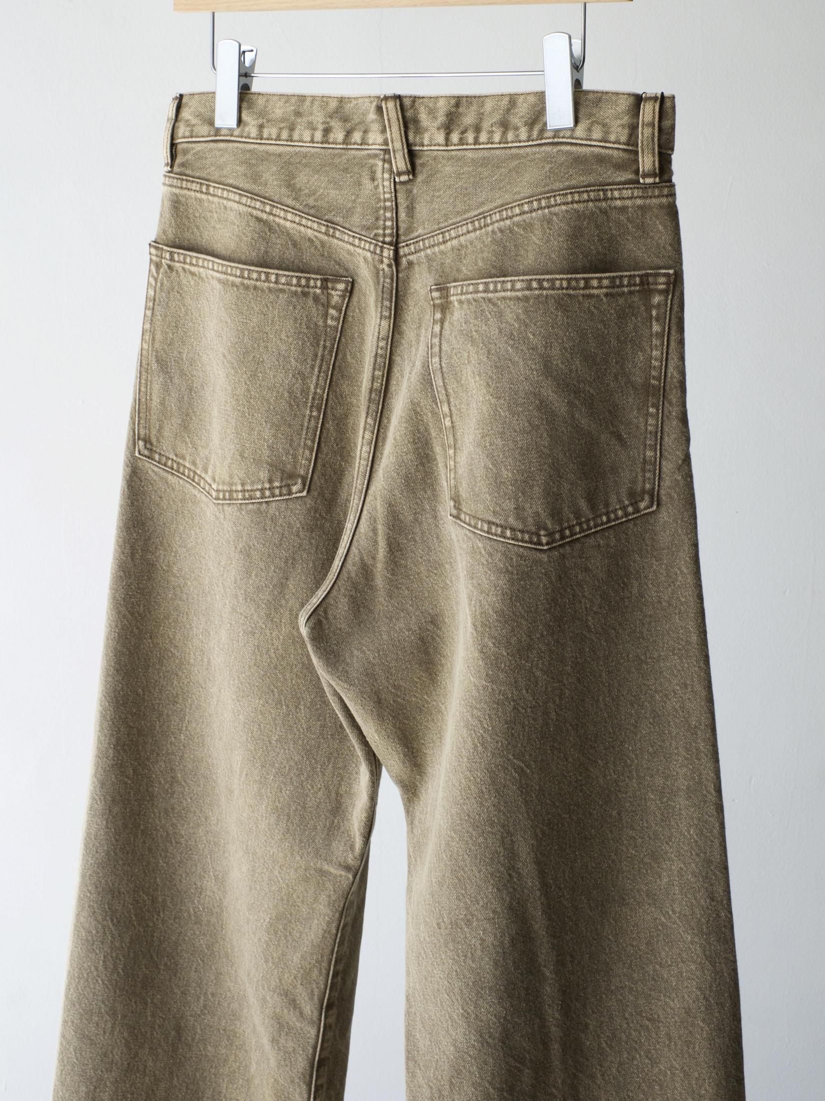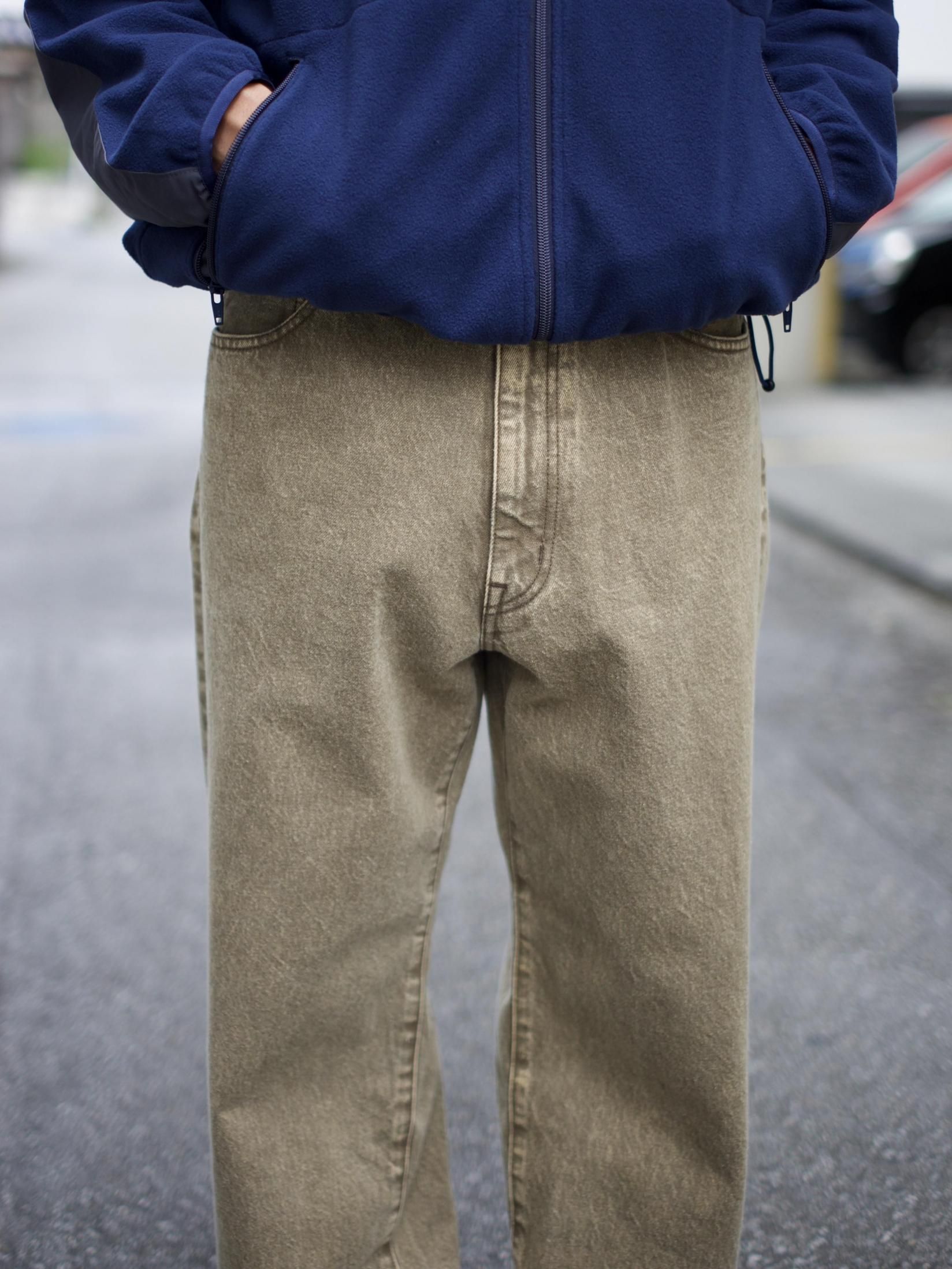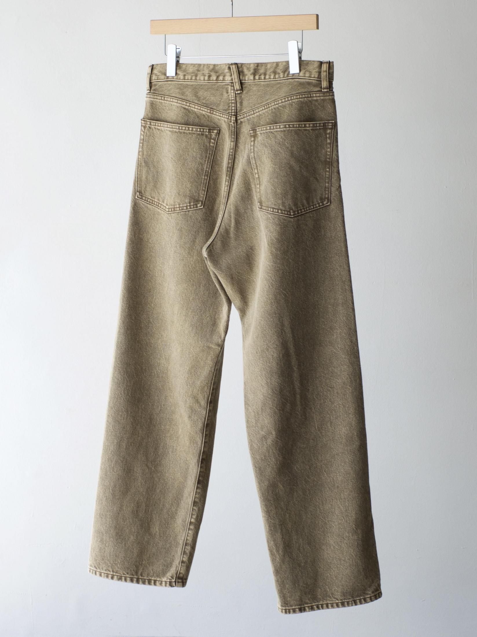 コットンデニム素材を使用した5ポケットパンツ。