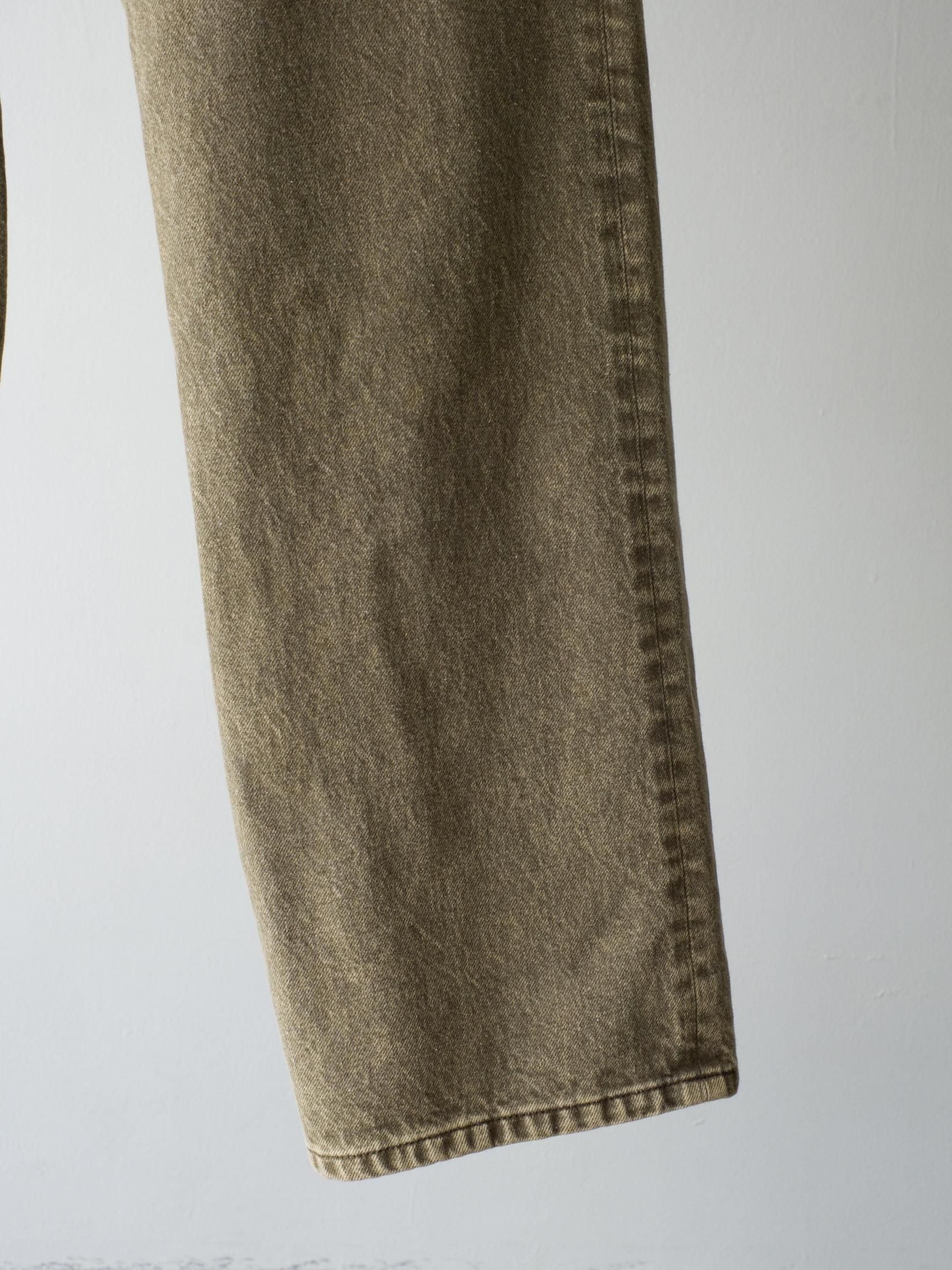 12.5オンスのデニムを使用し、仕上げにケミカルウォッシュ加工を施しています。