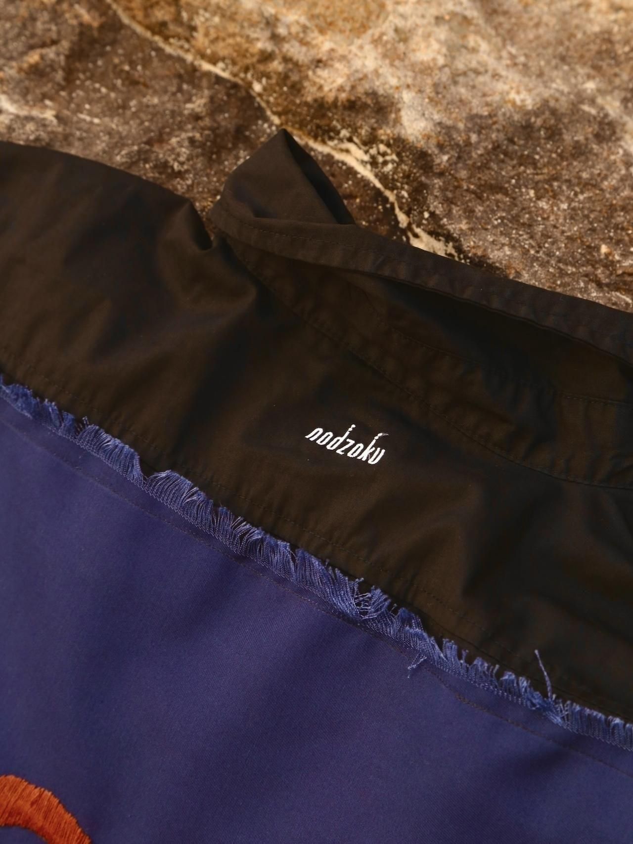マダガスカルの職人に刺繍を依頼しノゾクのワイドシャツにドッキングした、