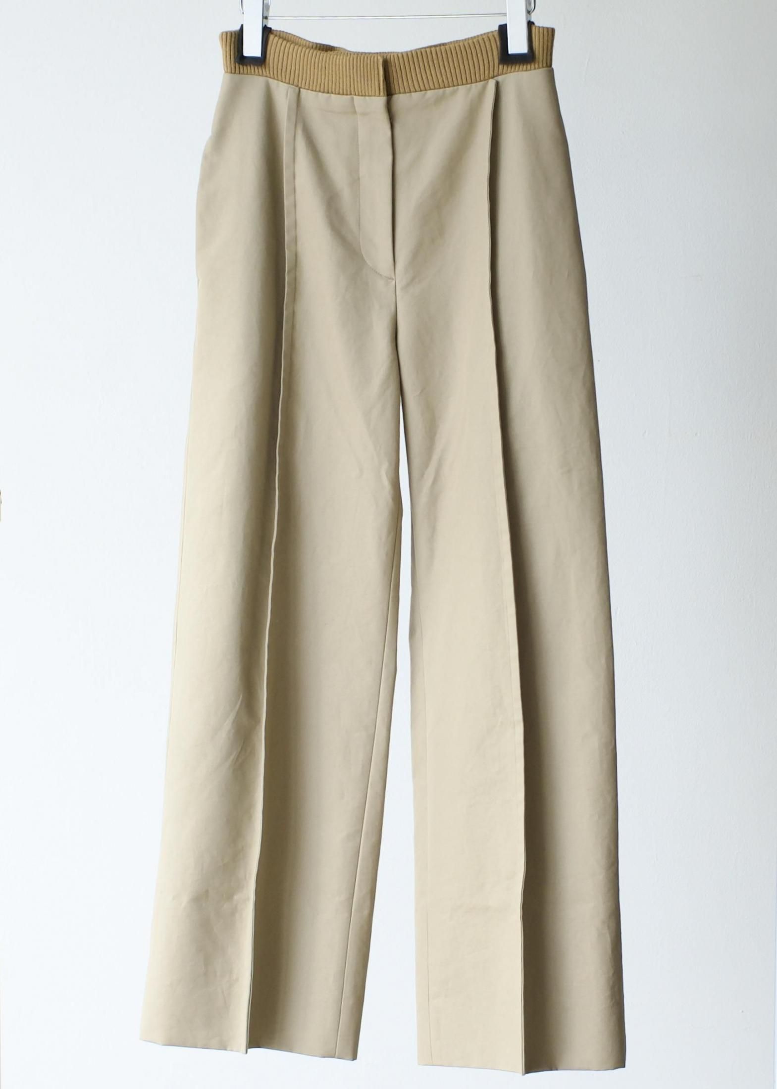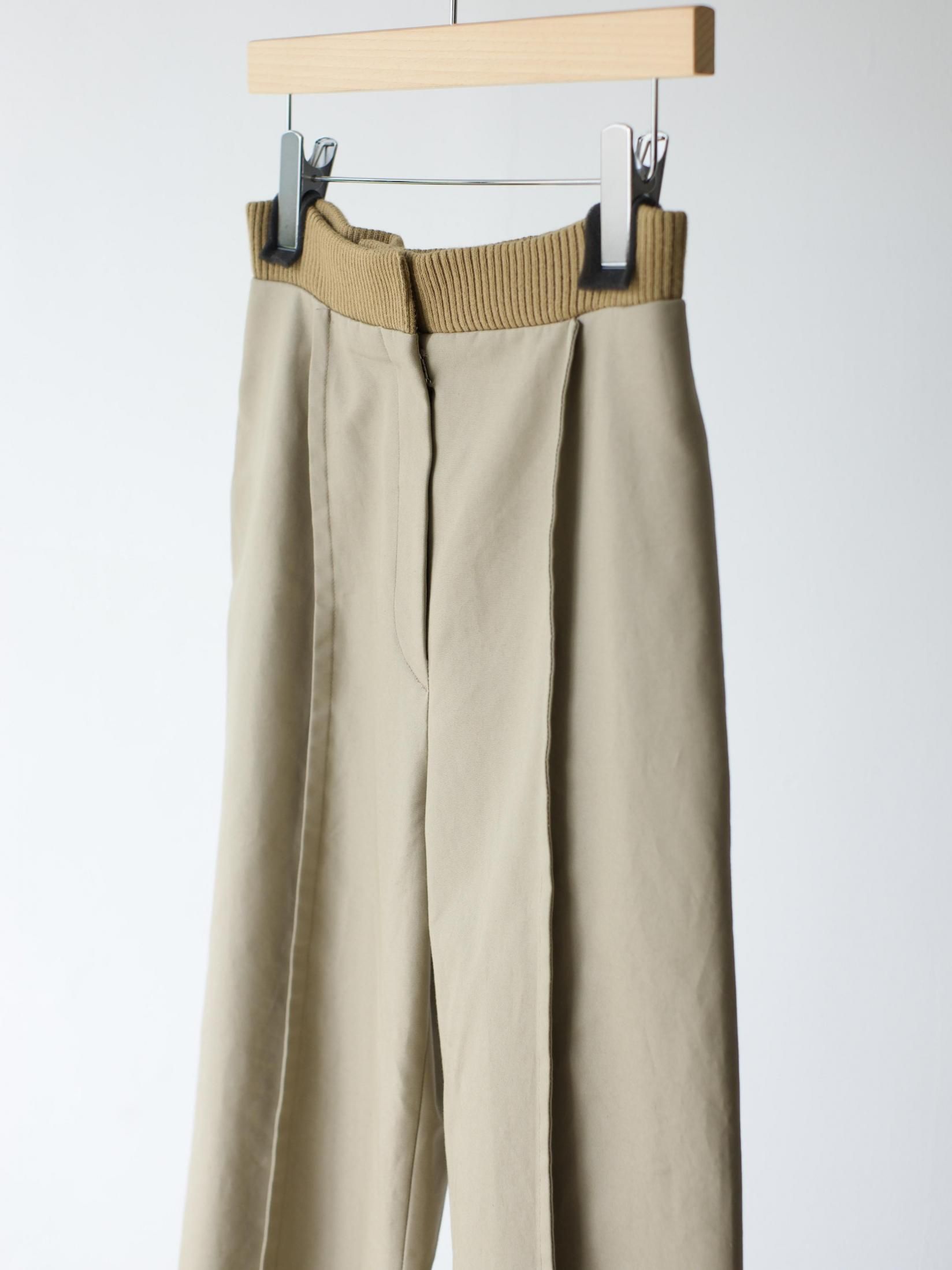 リブ編みのウエストパーツが腰回りを引き締めながらも立体的なシルエットになっています。