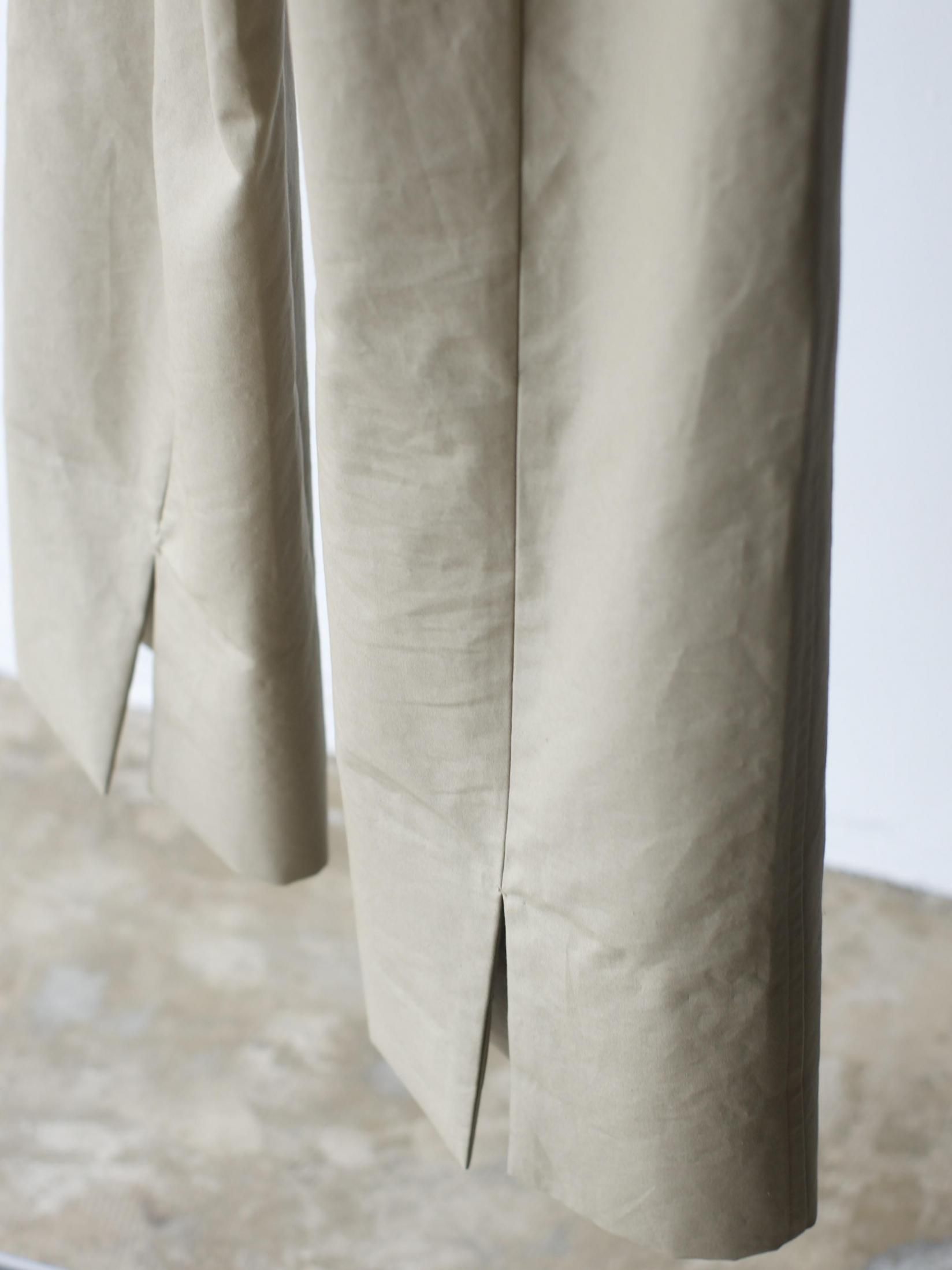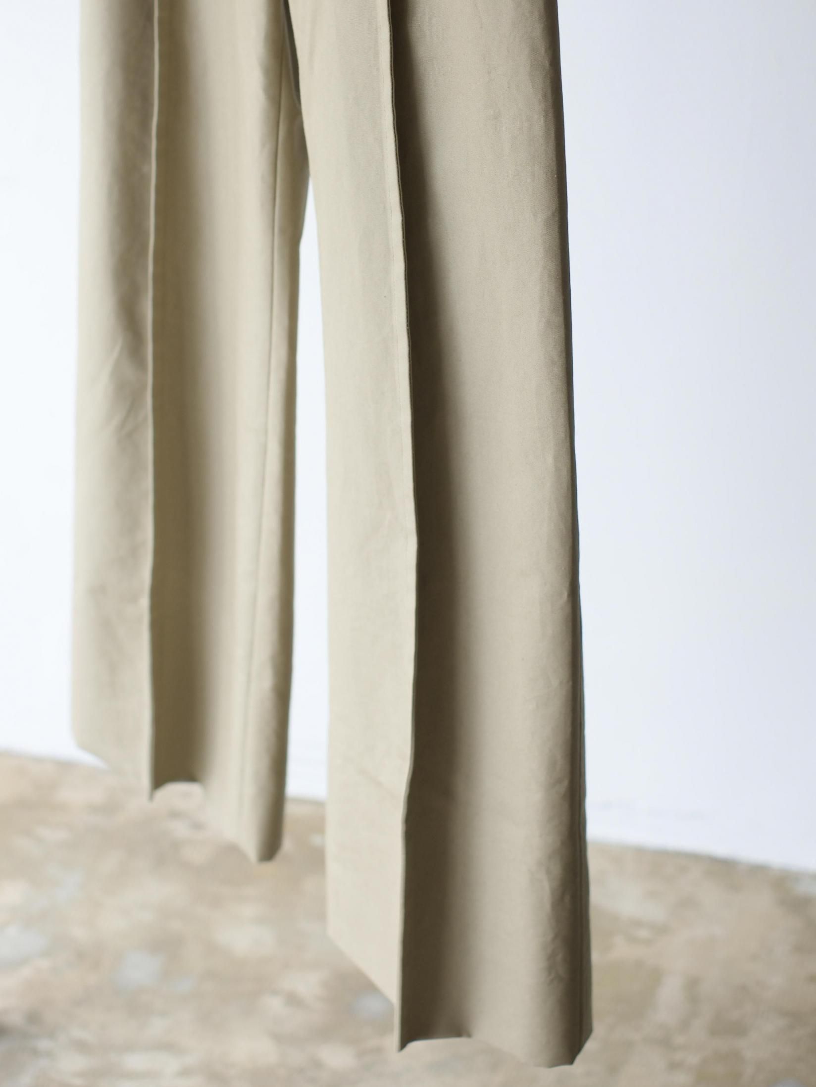 無骨さを感じさせるタフな生地で仕立てたパンツ。