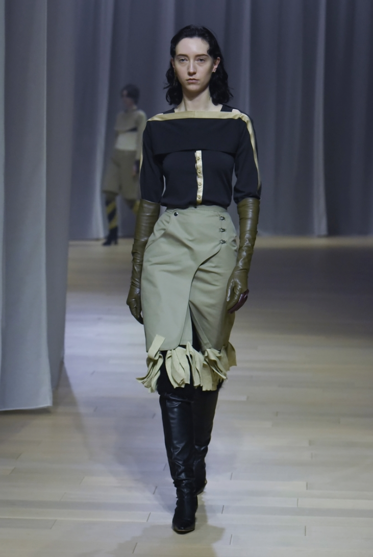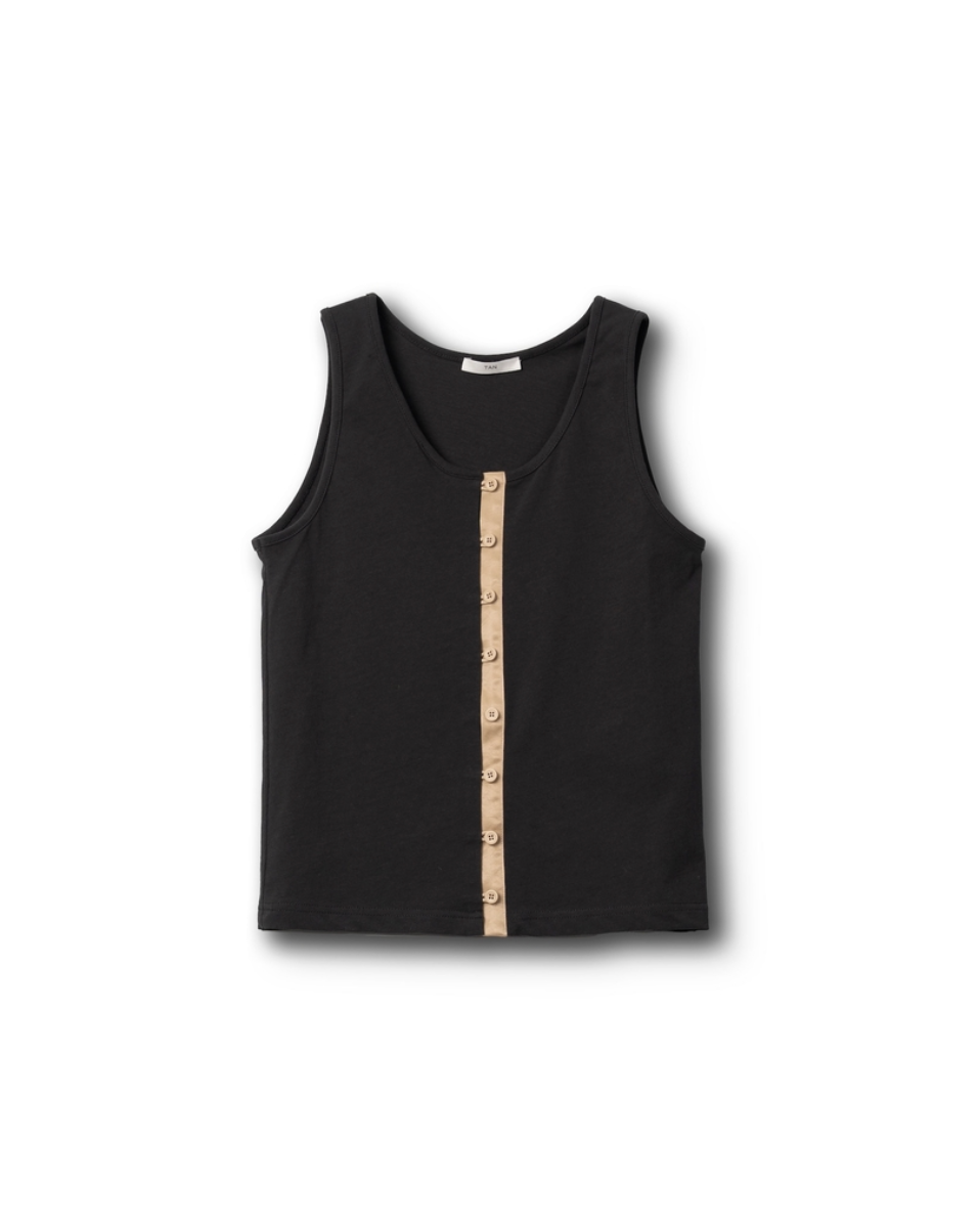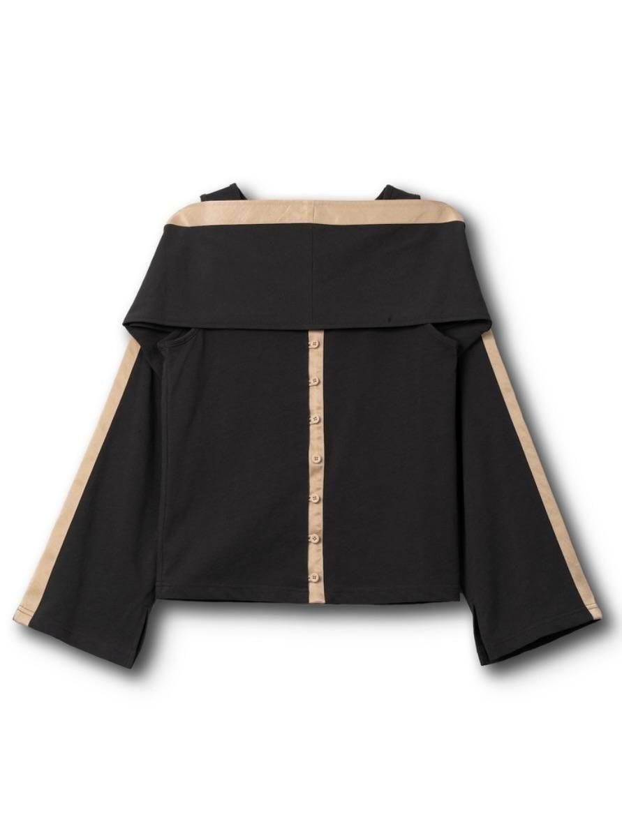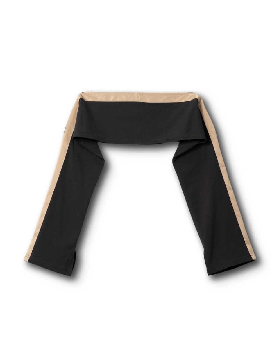 レザーのような艶を放つサテン生地と、ヴィンテージライクなコットンジャージーを組み合わせた袖とタンクトップの2ピースアイテム。