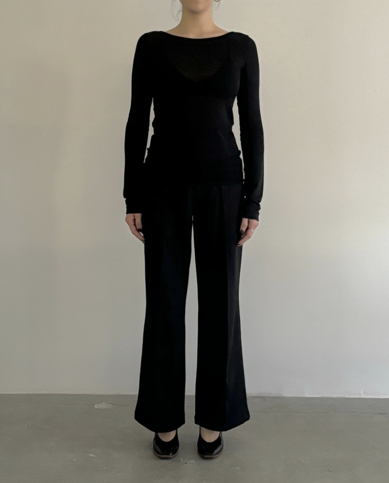 ボートネックとUネックの前後で表情が変わるデザインカットソーです。