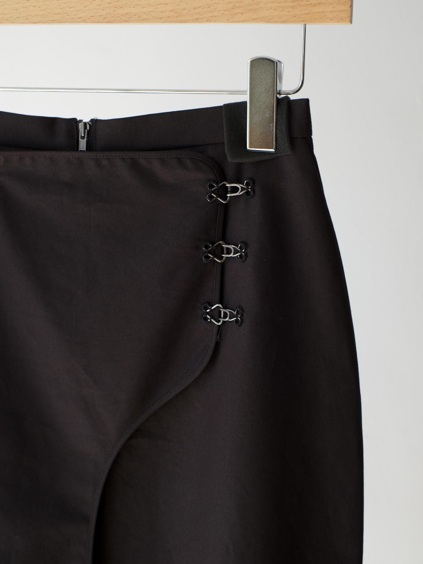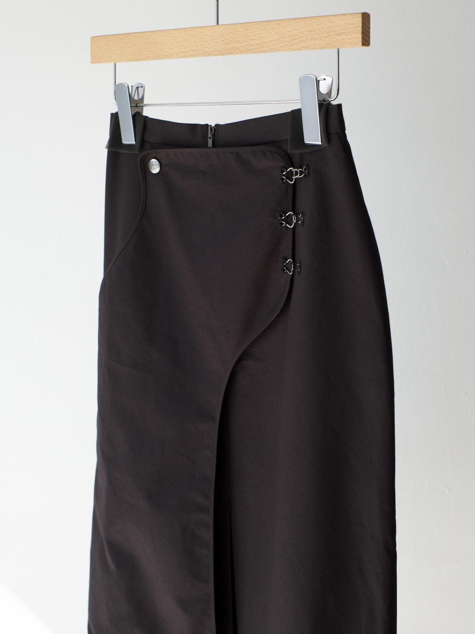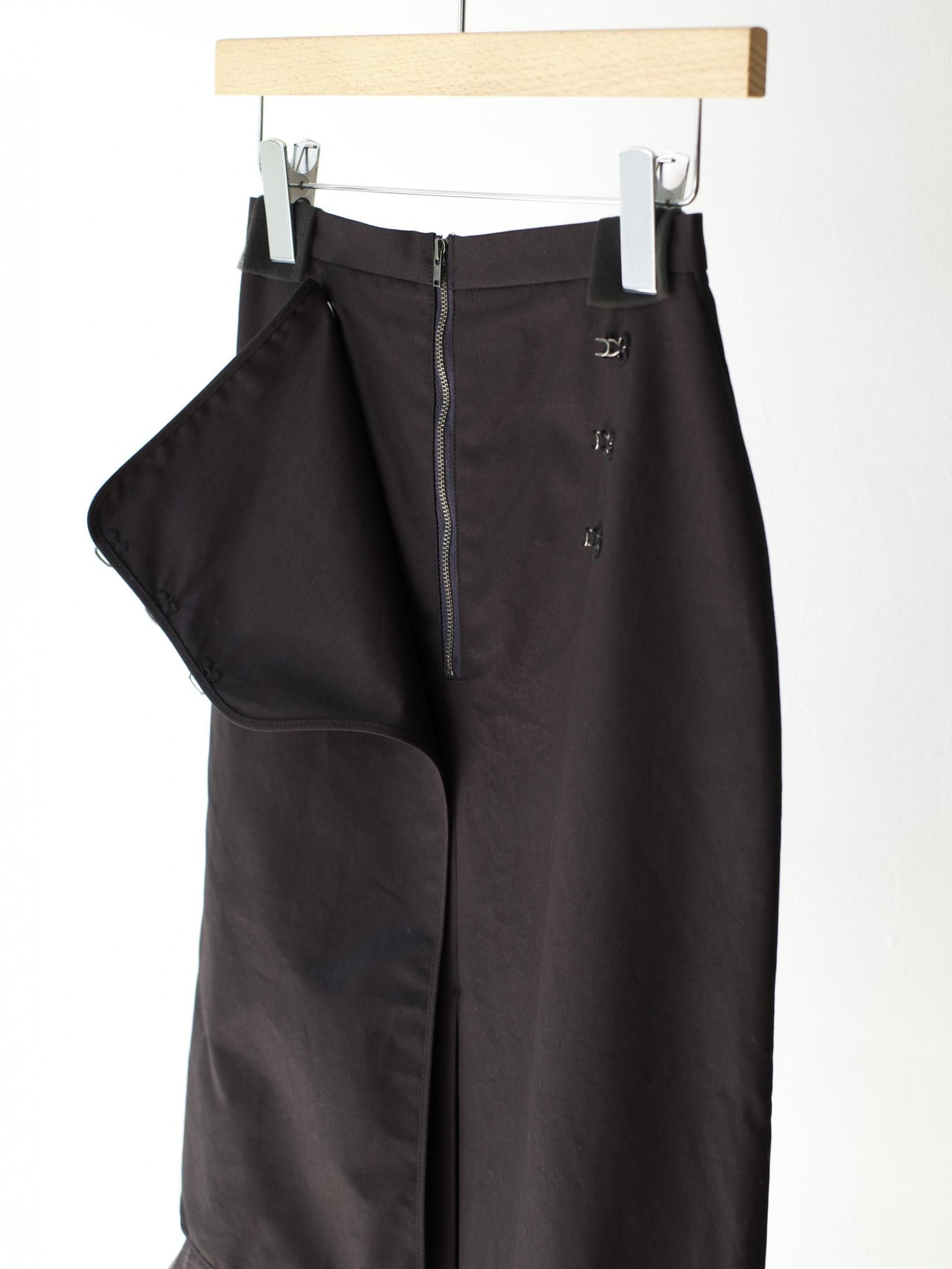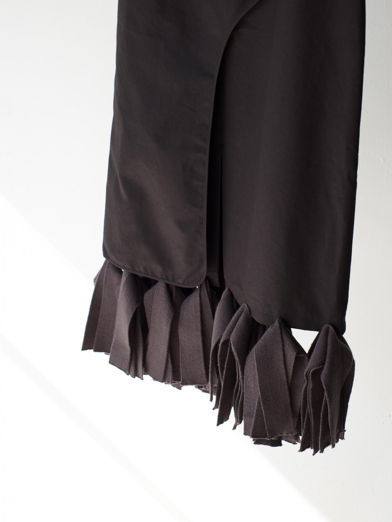 無骨さも感じるタフな生地と繊細なニットフリンジが特徴のスカート。