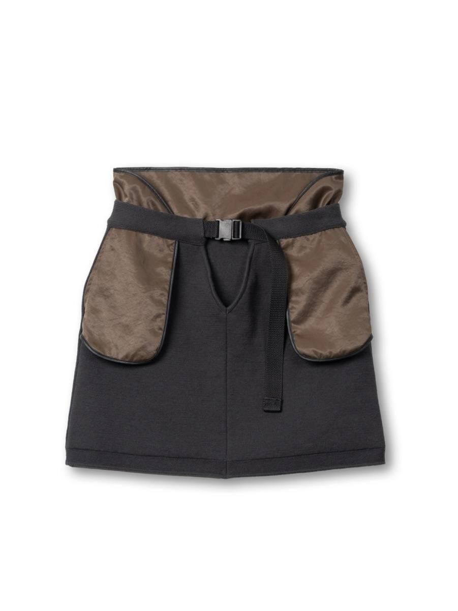 V-FRONT KNIT LAYERED MINI SKIRT
