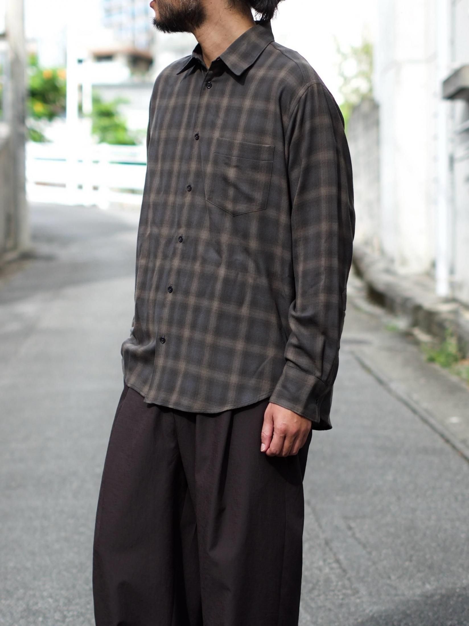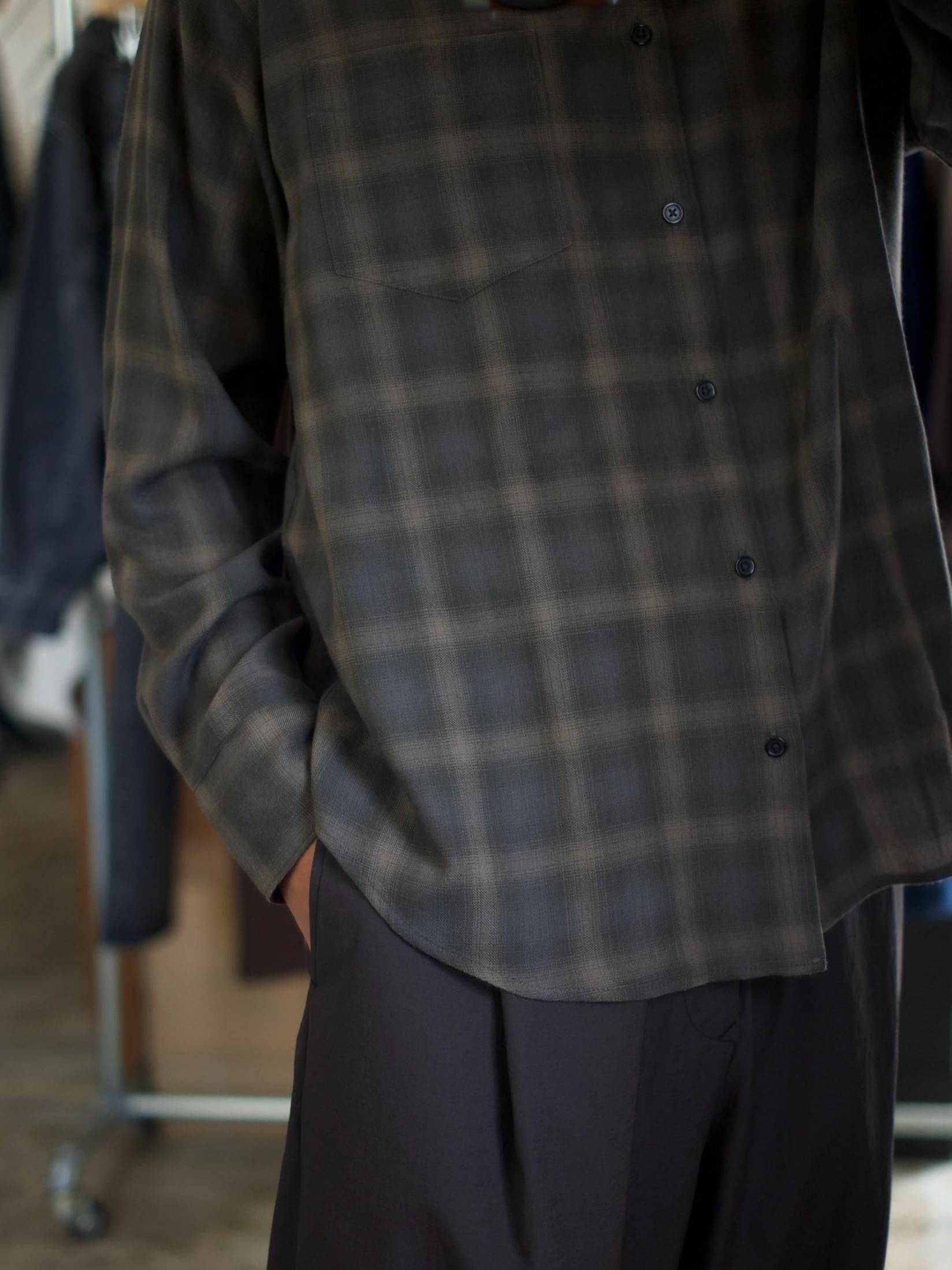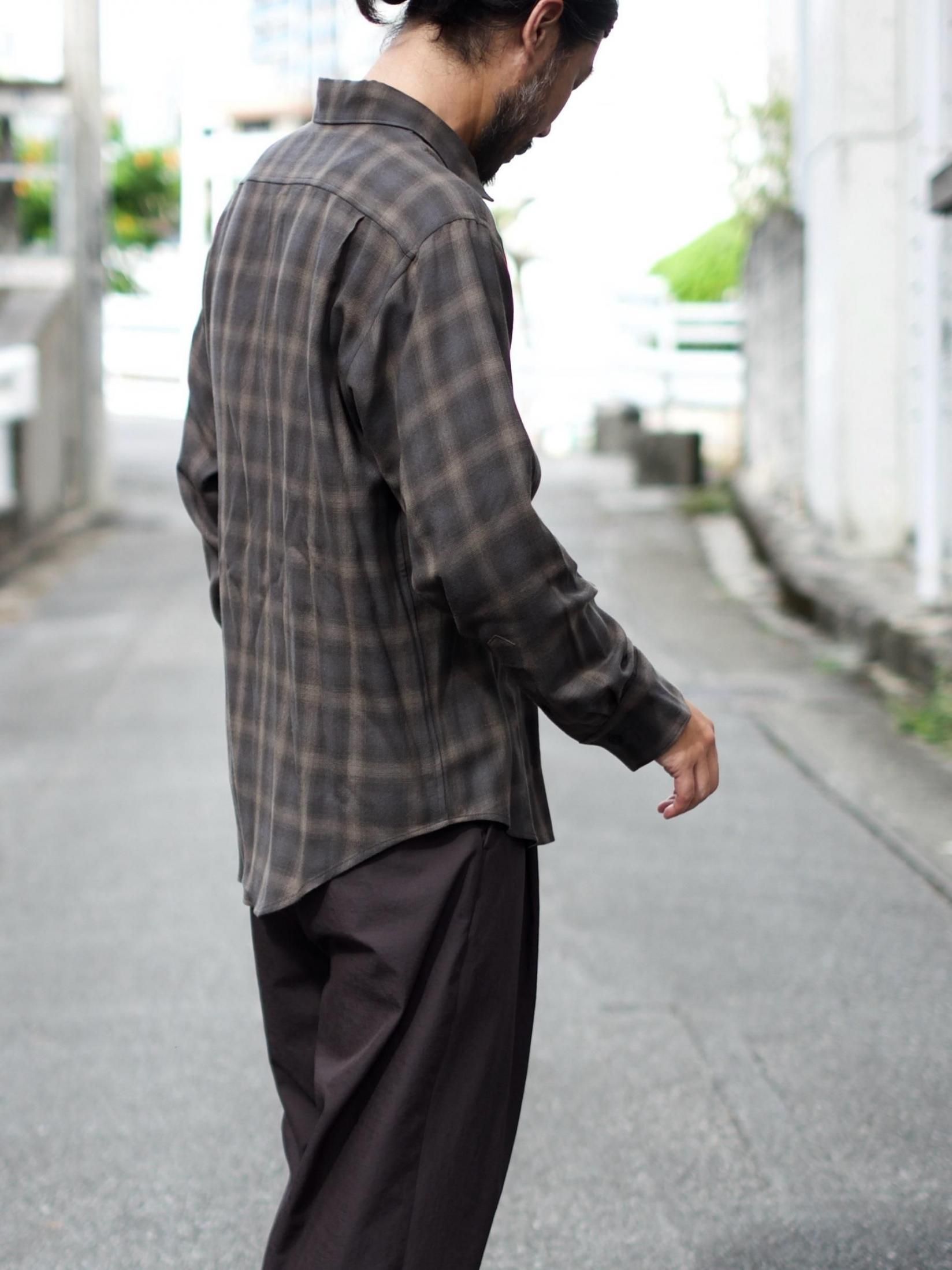 やや肩の落ちたシンプルなレギュラーカラーシャツ。