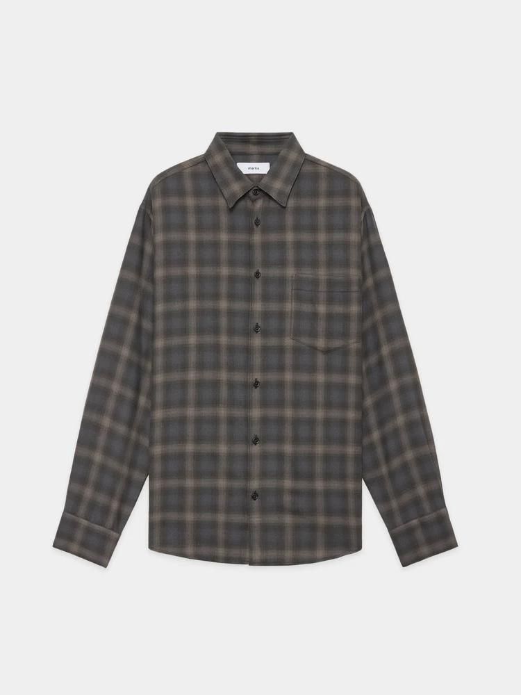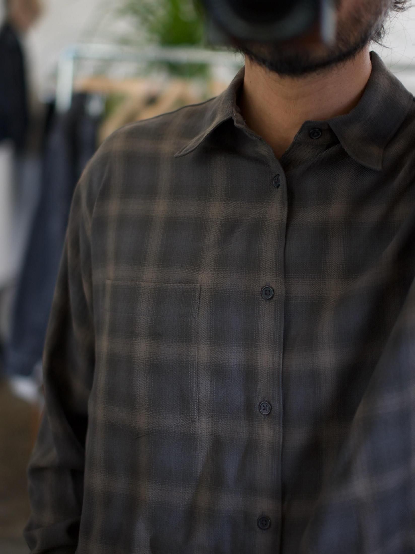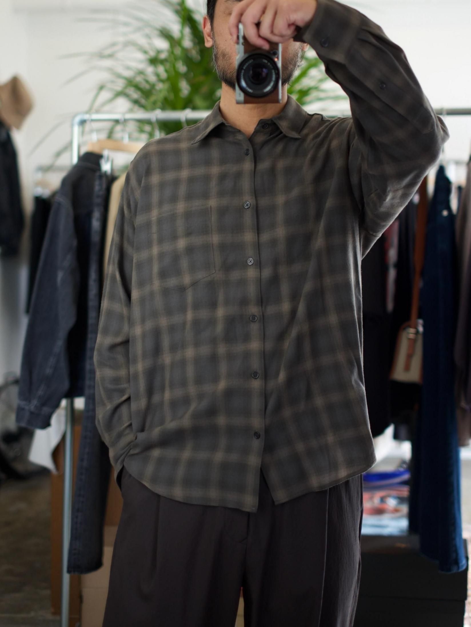 やや肩の落ちたシンプルなレギュラーカラーシャツ。