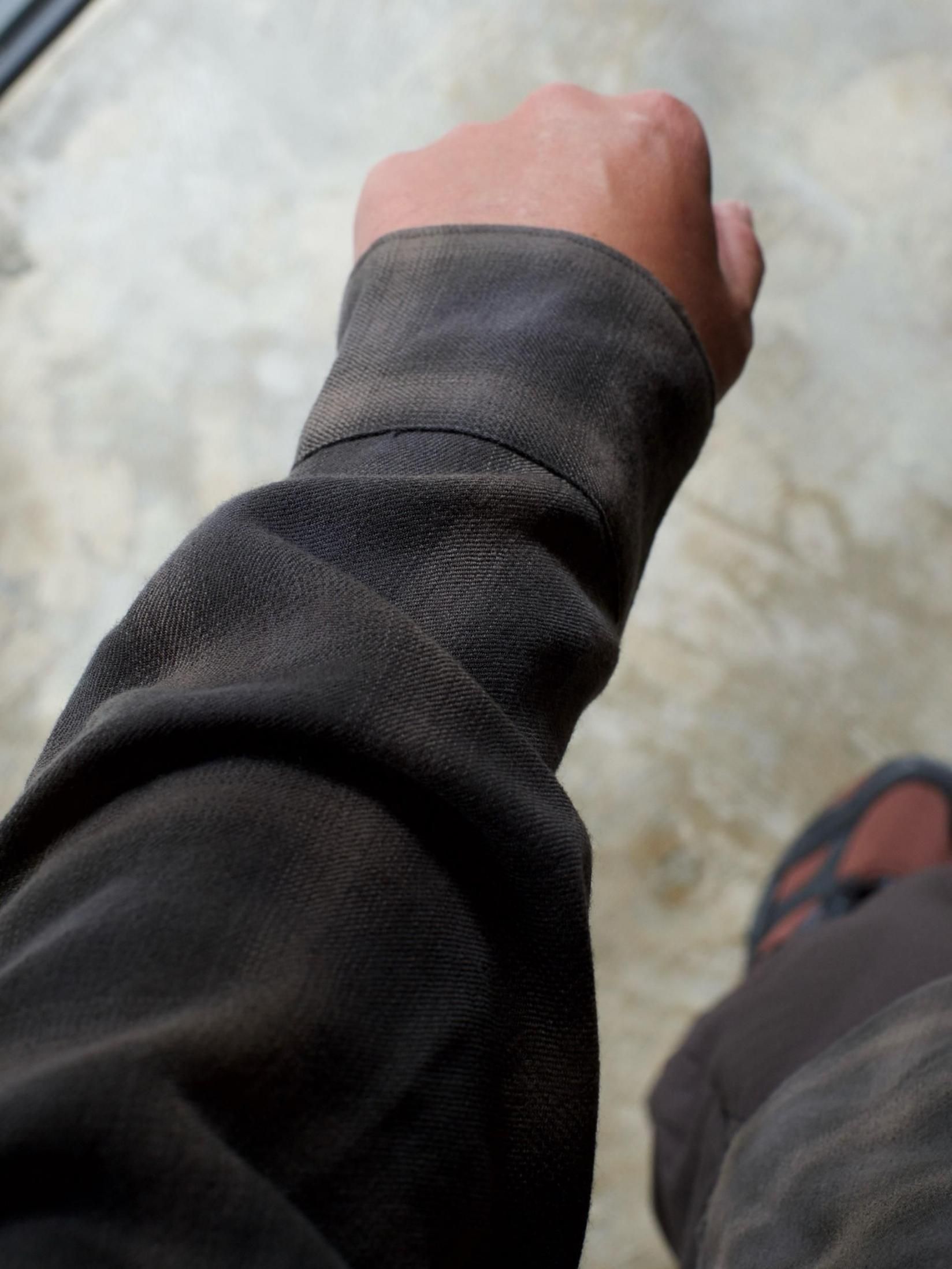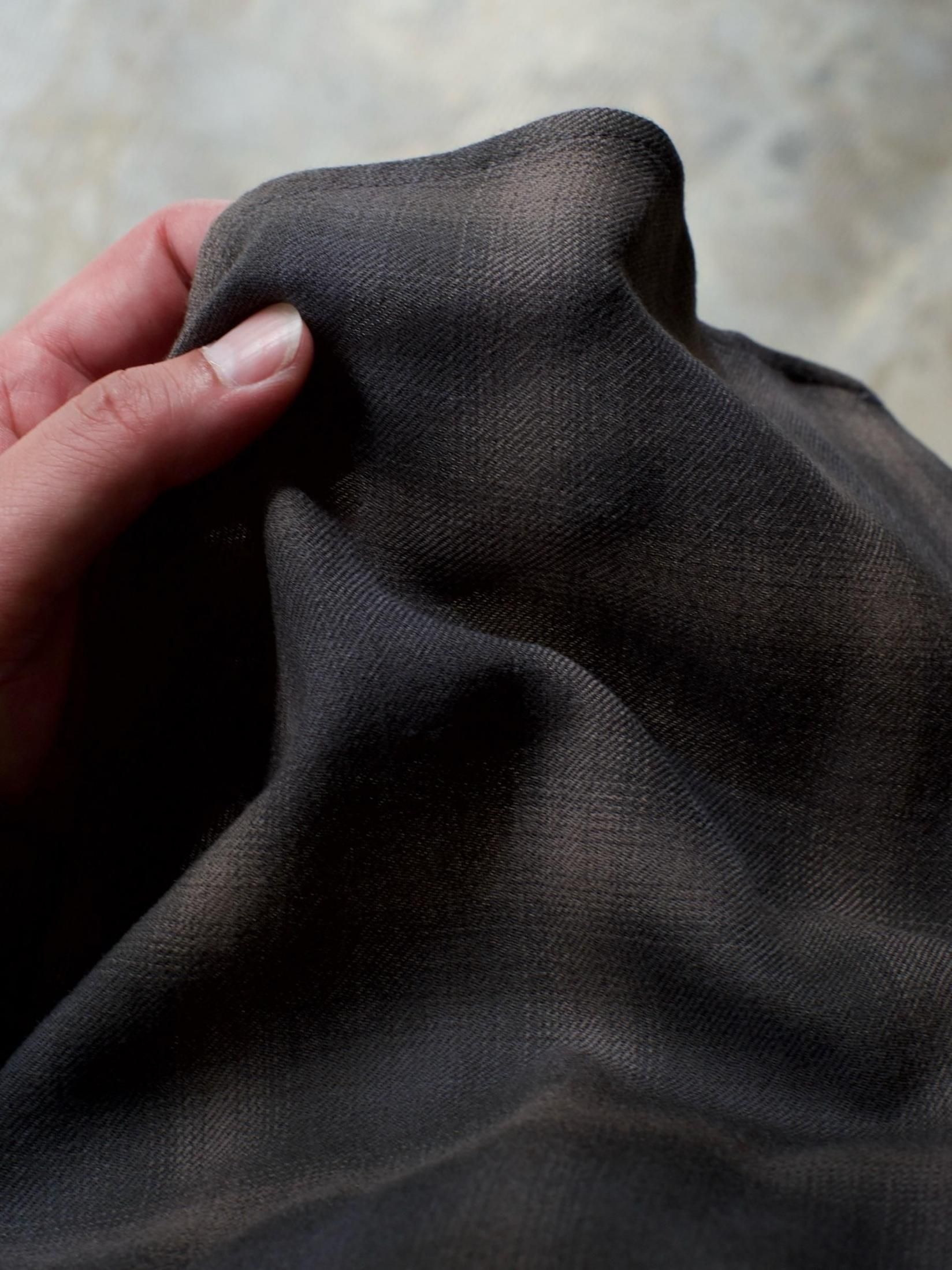 生地加工でワッシャータンブラーを施し、繊細な毛羽立ちと膨らみ、自然な小じわを加えることで、ほどよいぬけ感を演出。