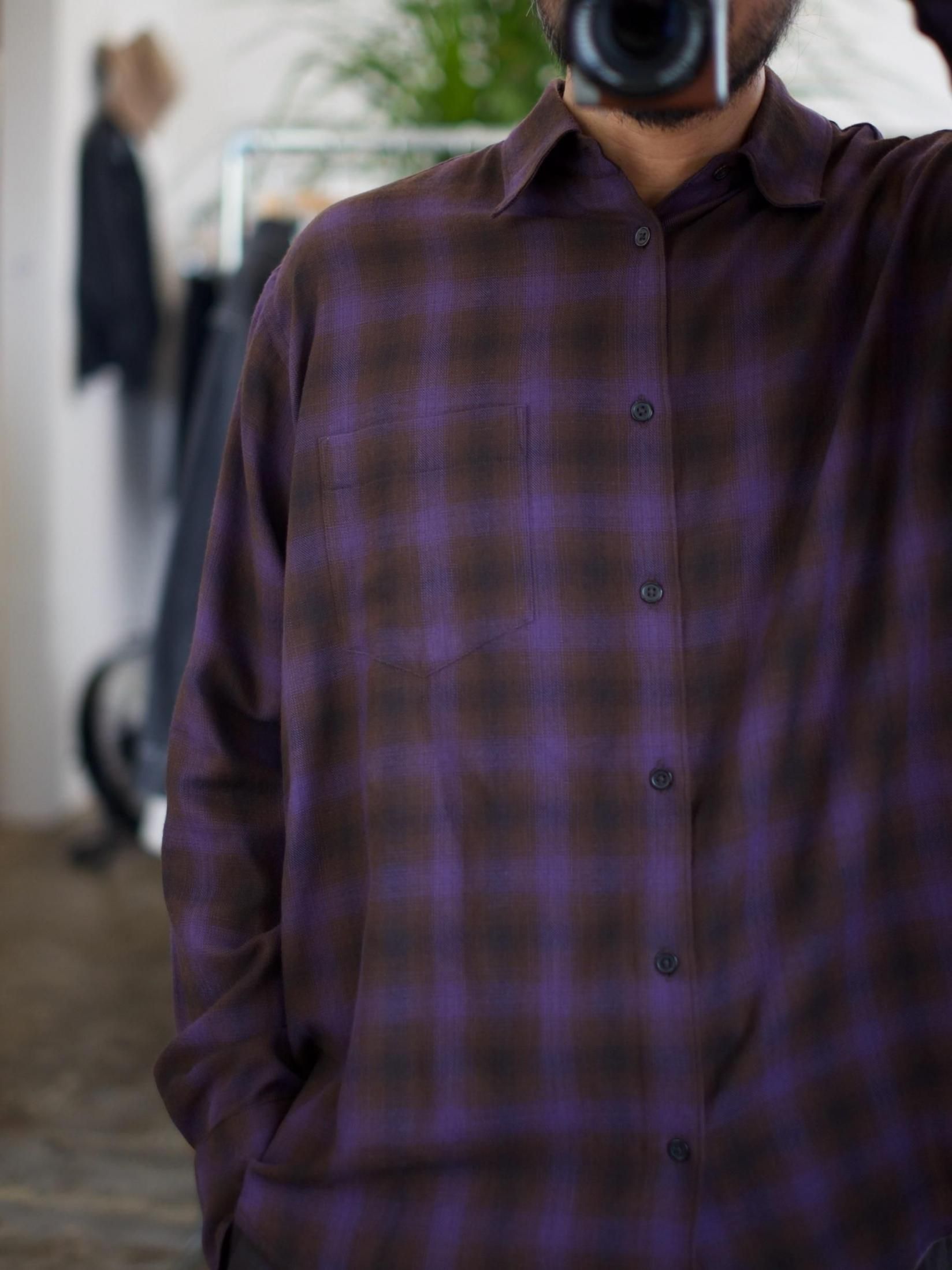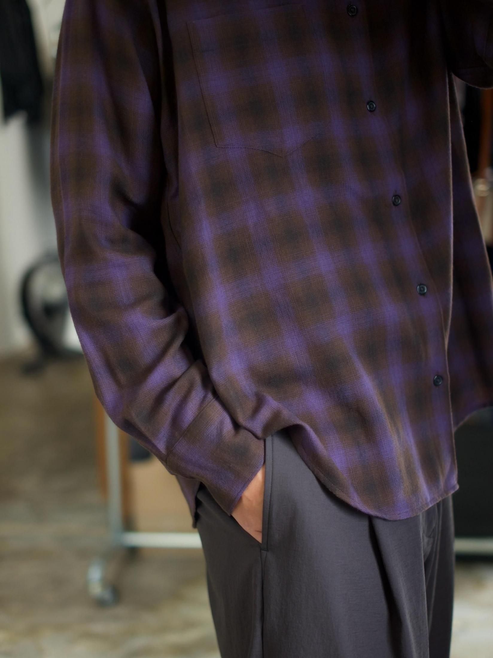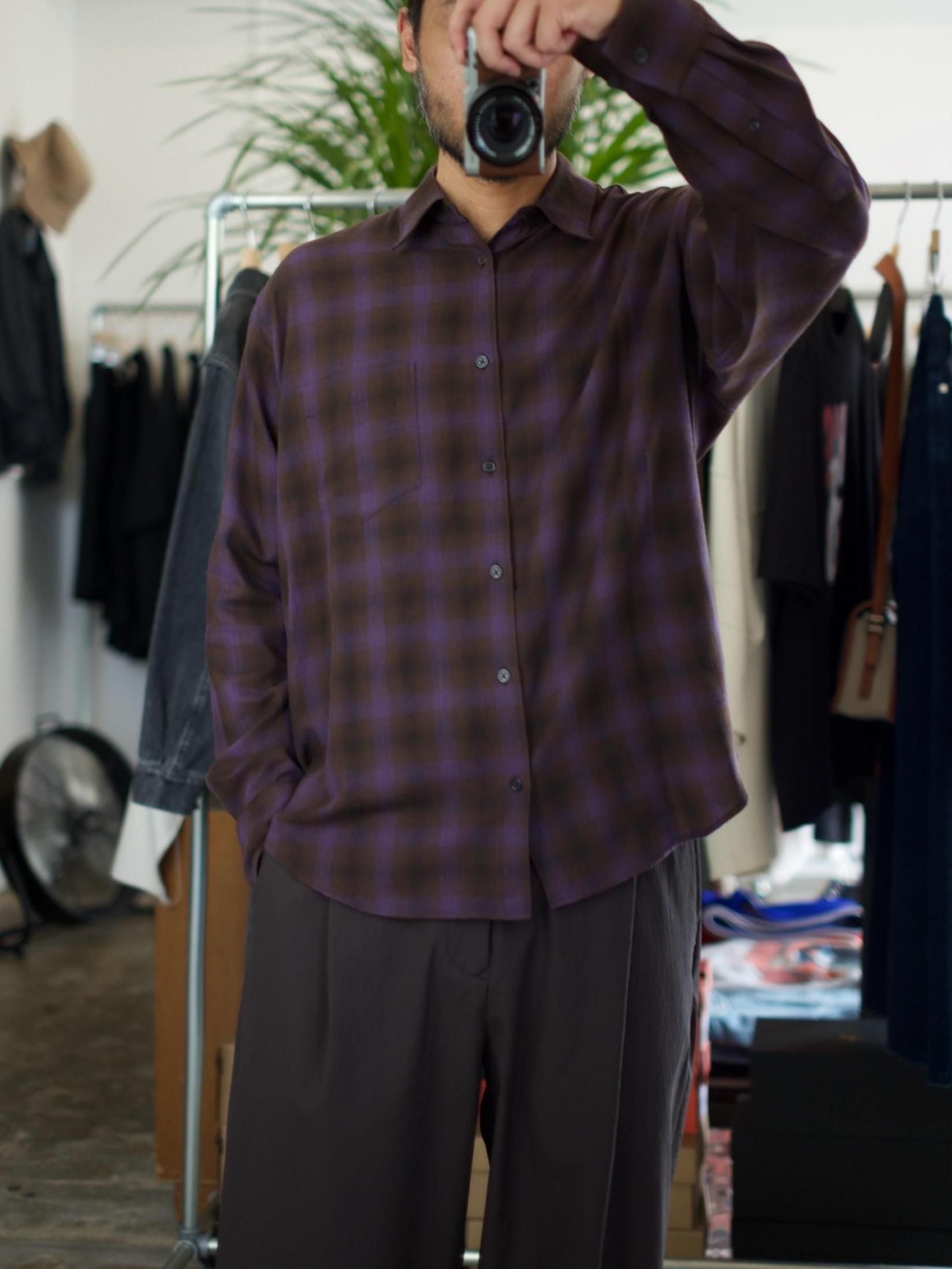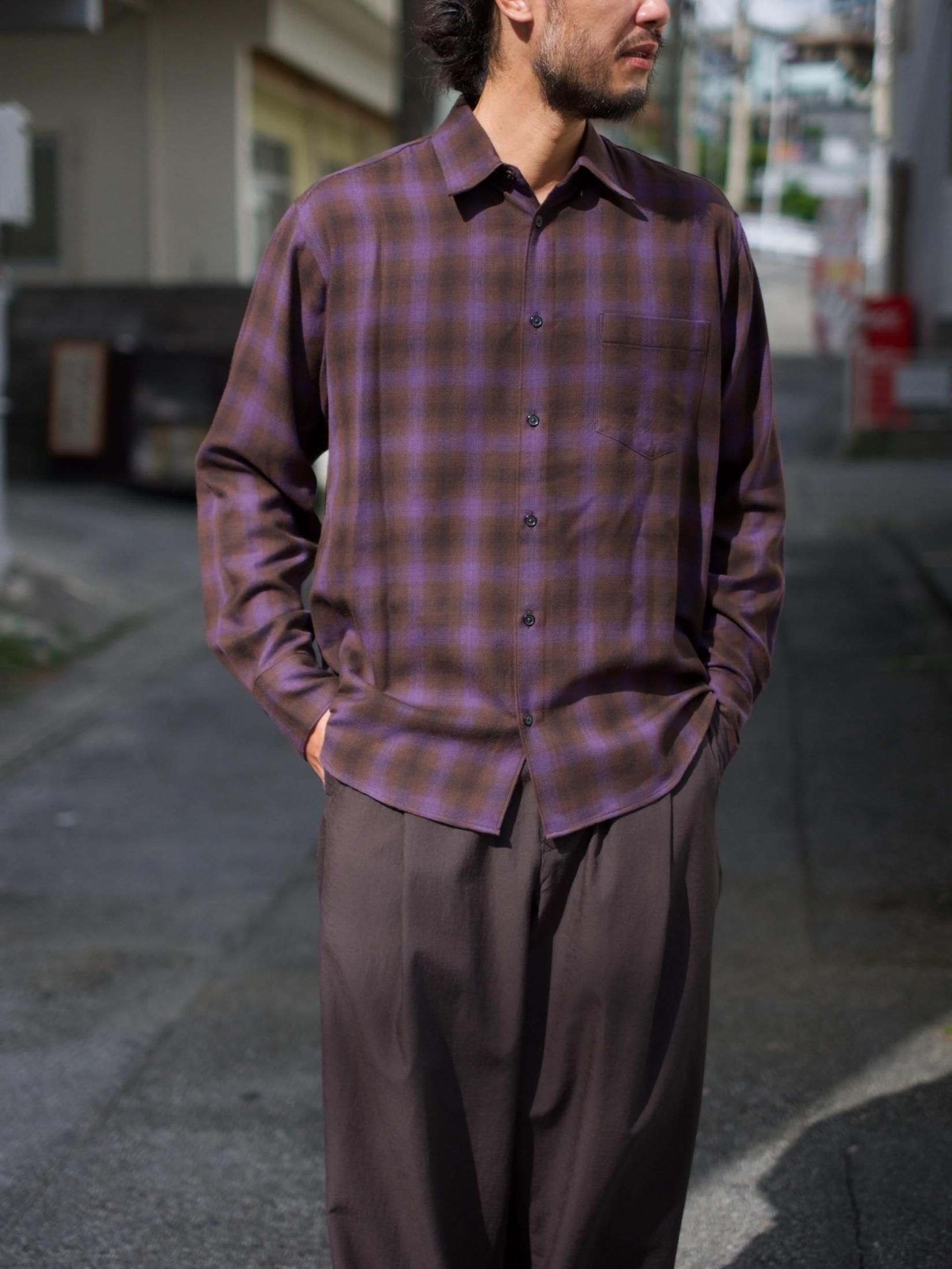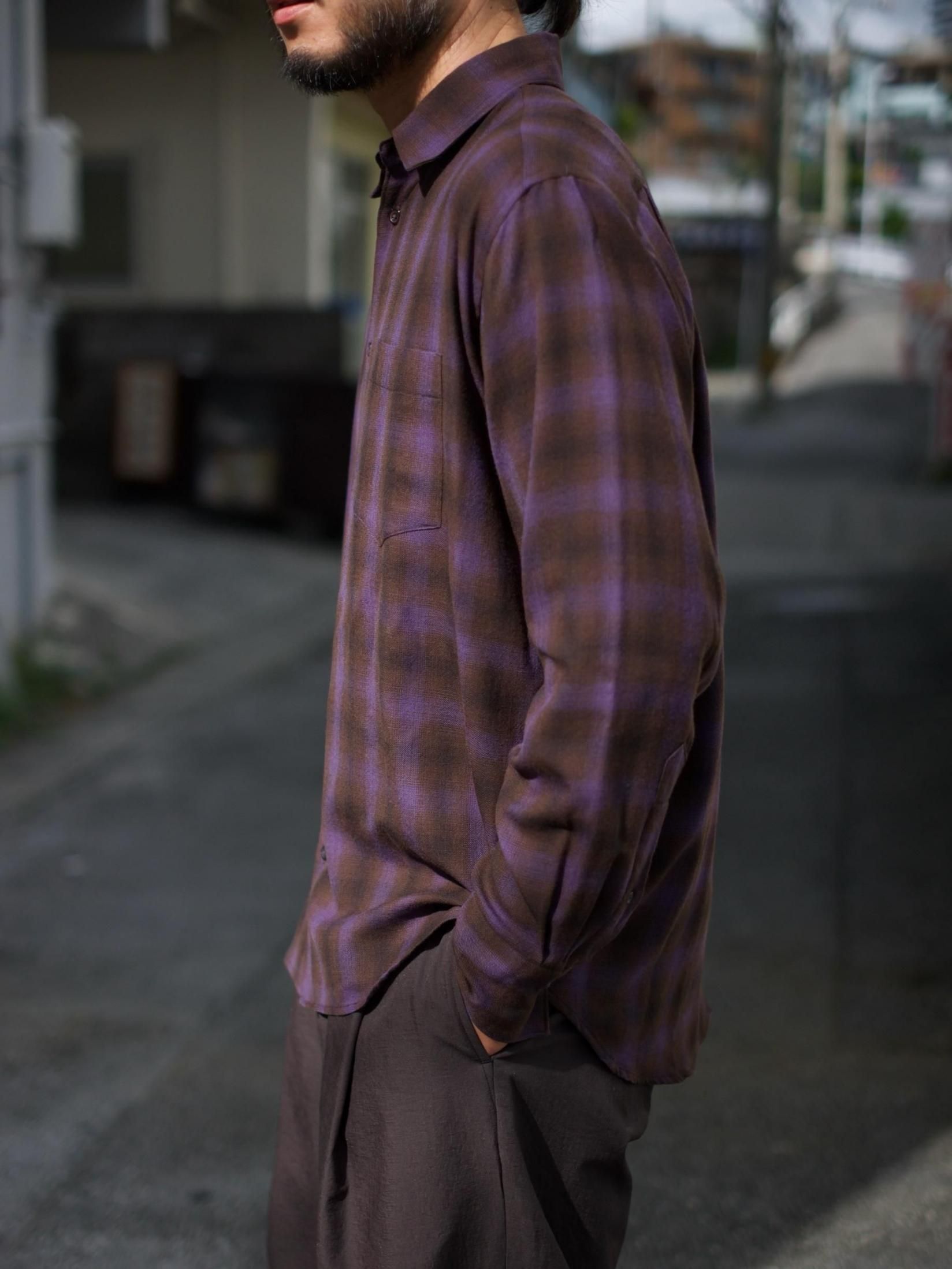 やや肩の落ちたシンプルなレギュラーカラーシャツ。