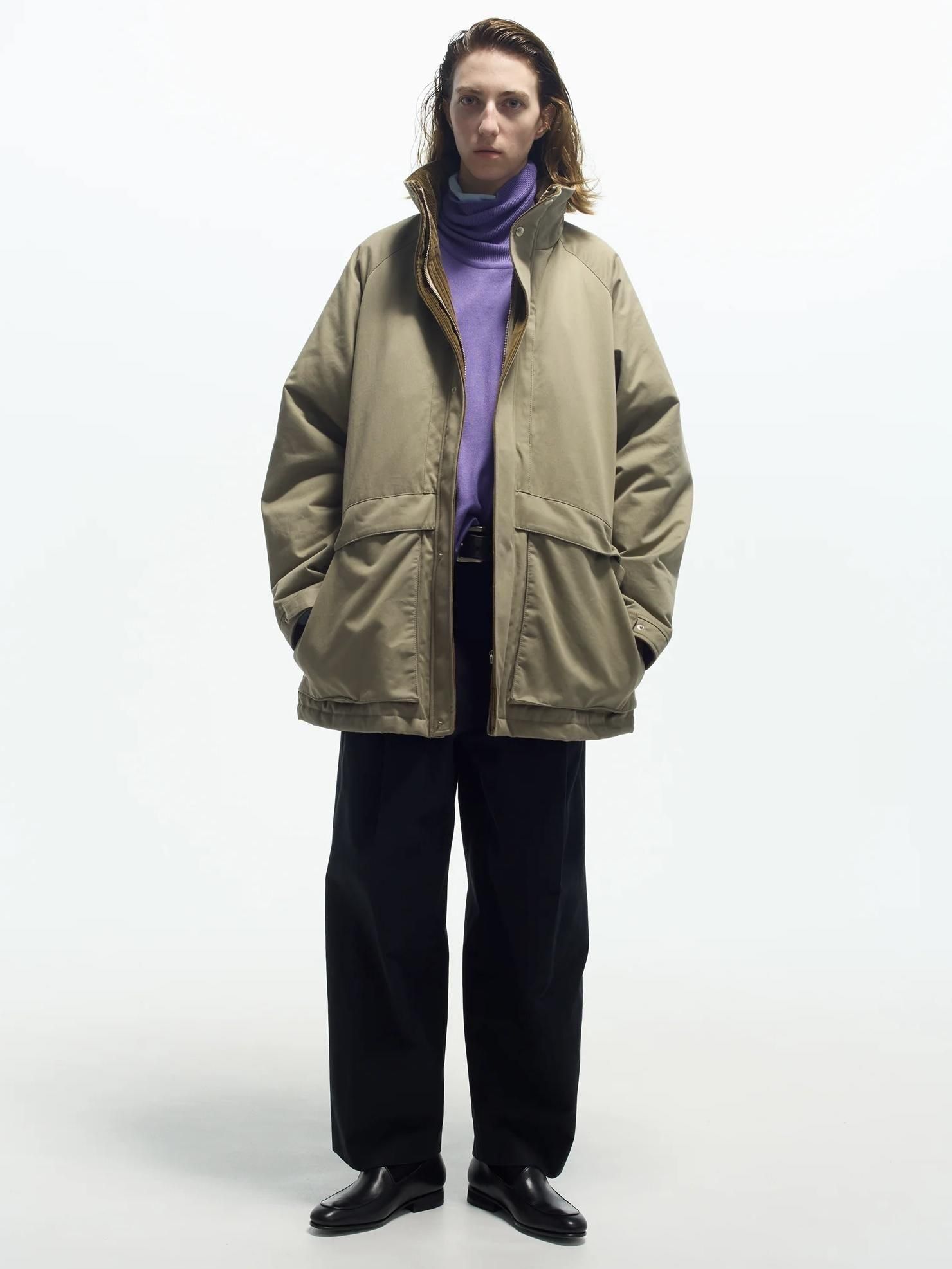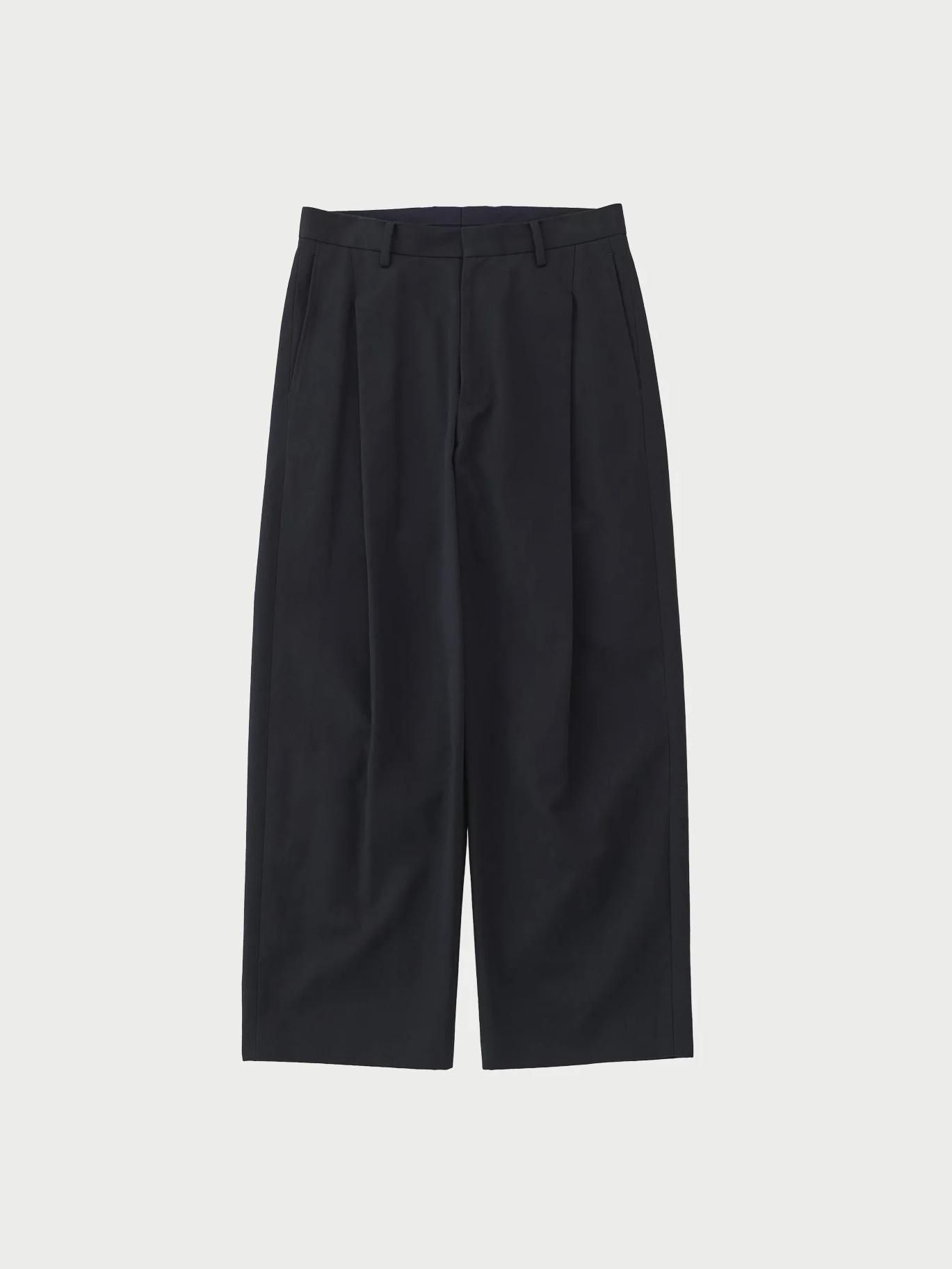 オーガニックコットンのチノクロスを使用した1タックパンツ。