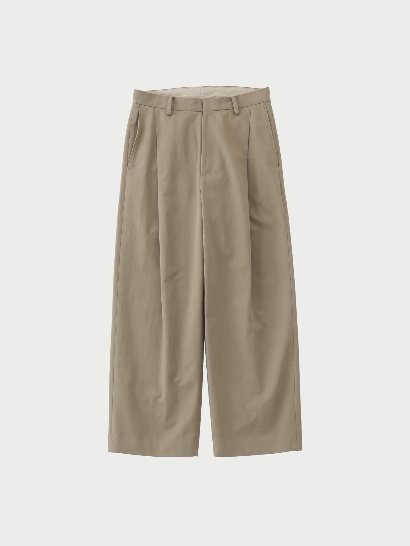 オーガニックコットンのチノクロスを使用した1タックパンツ。