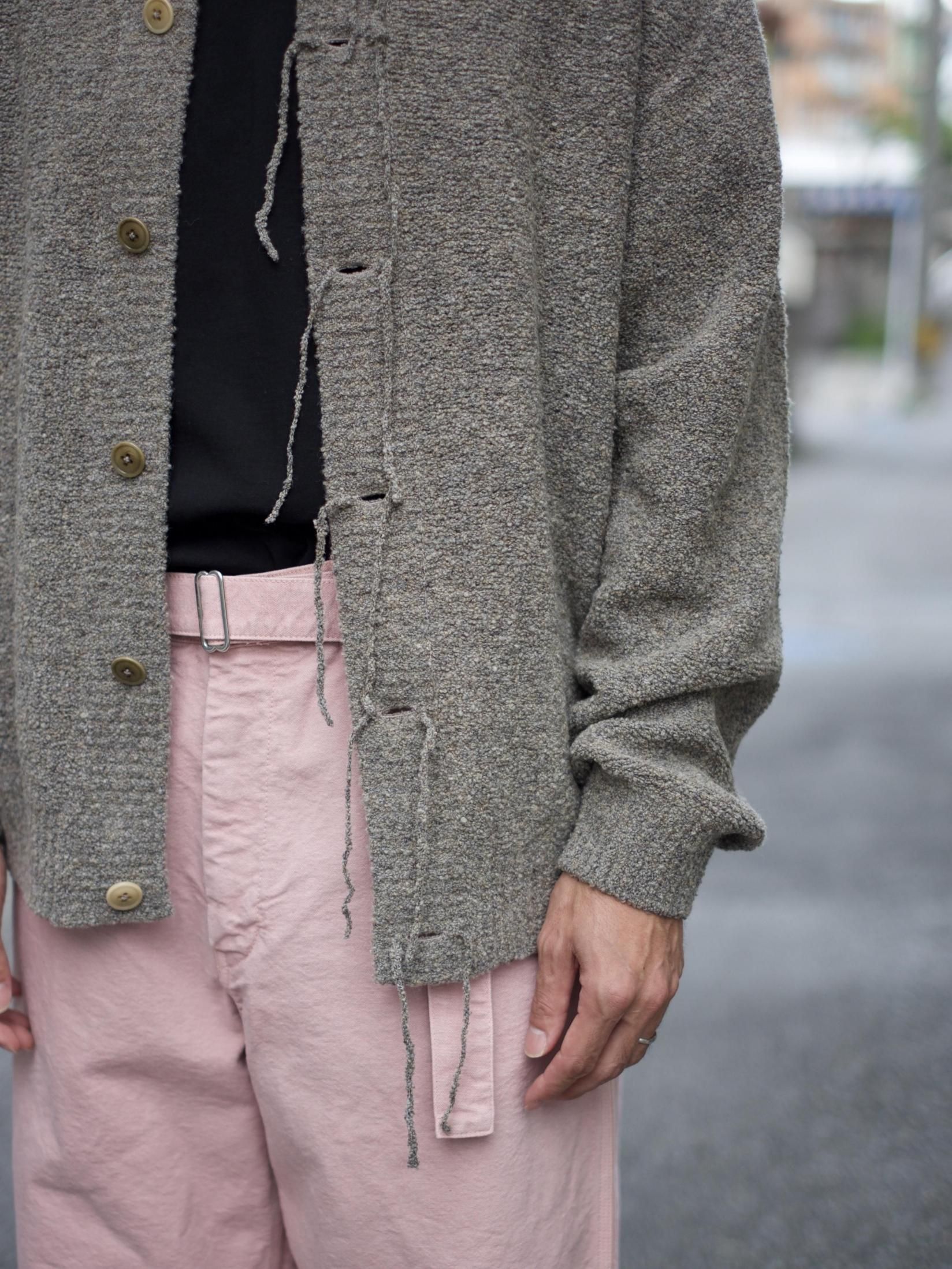 ボタンは長く着用して取れてしまい、新しいボタンを似寄りの色で取り付けたイメージで、いくつかは配色になっています。