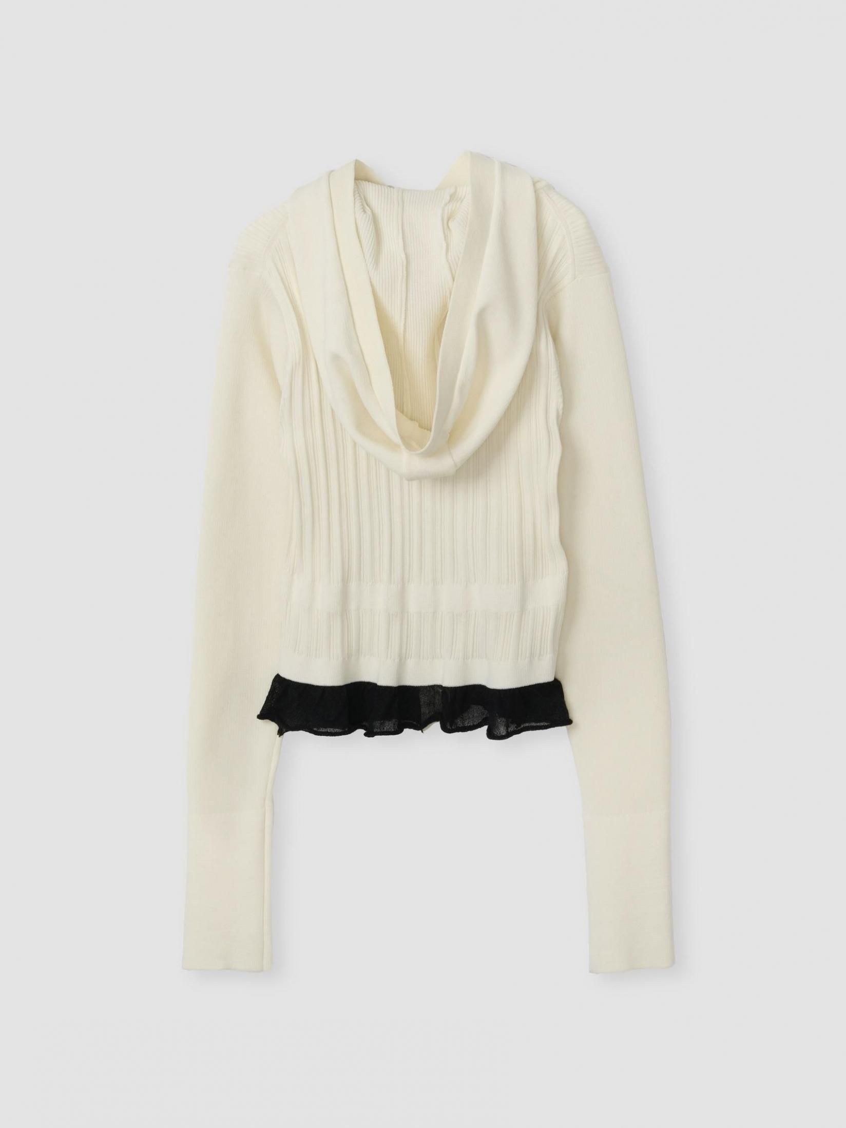 16Gリブフードニットカーデ。