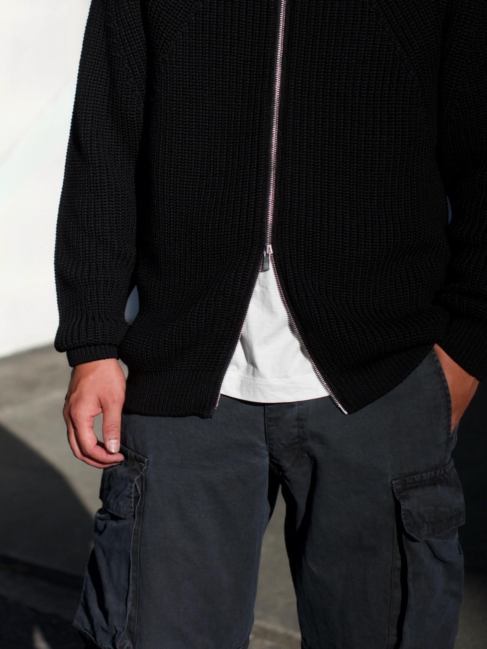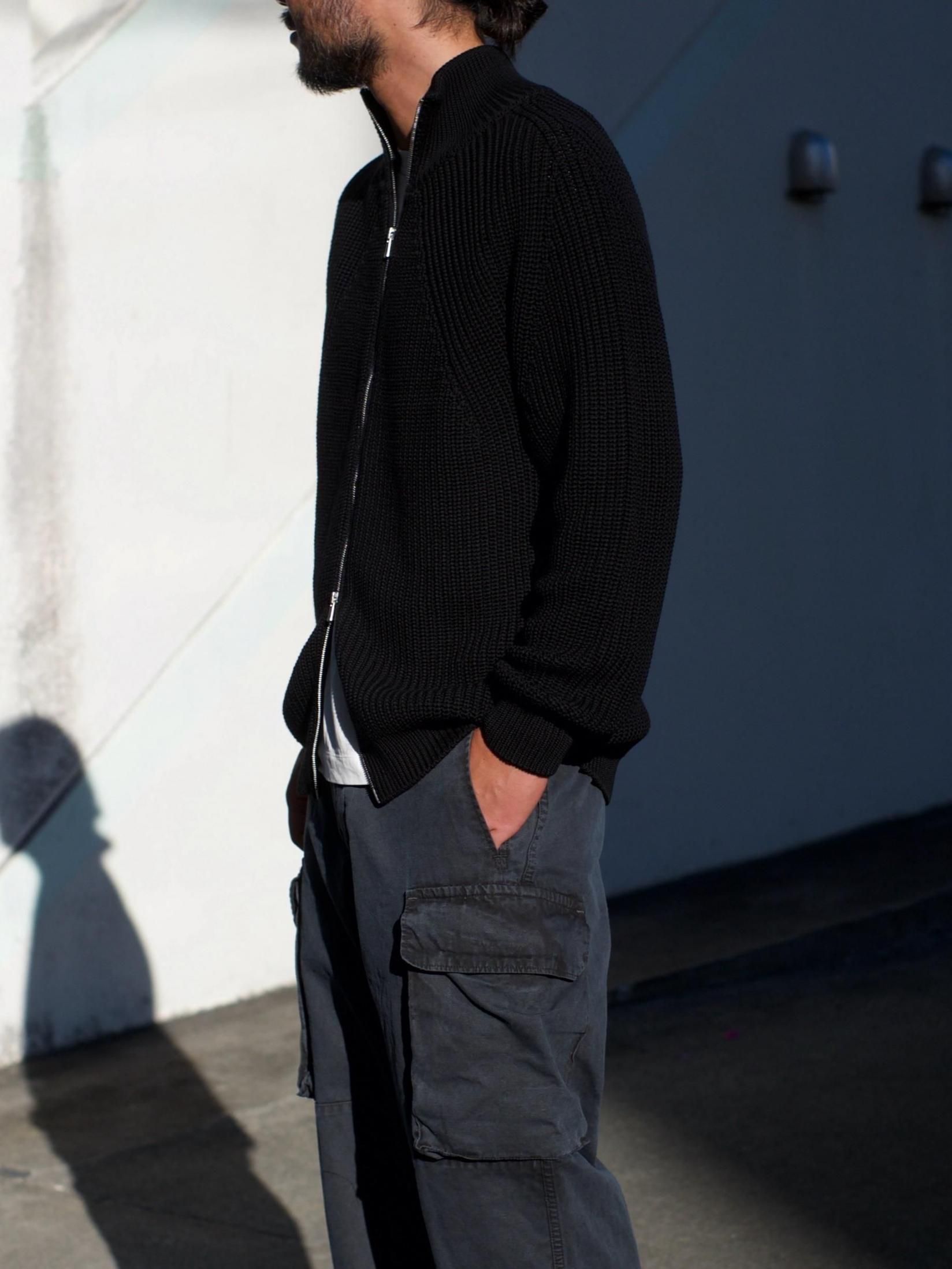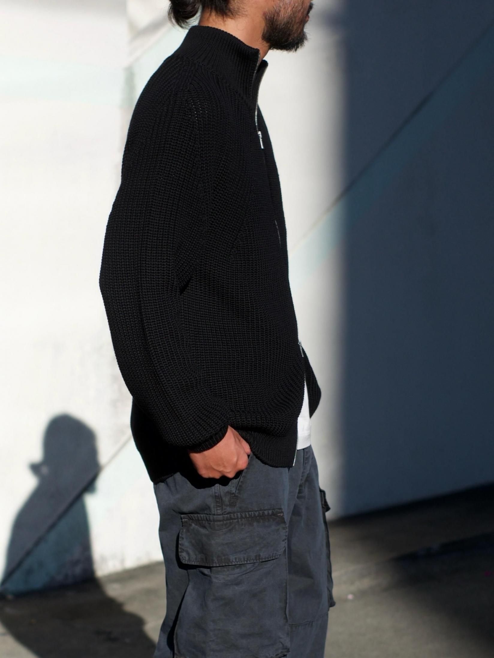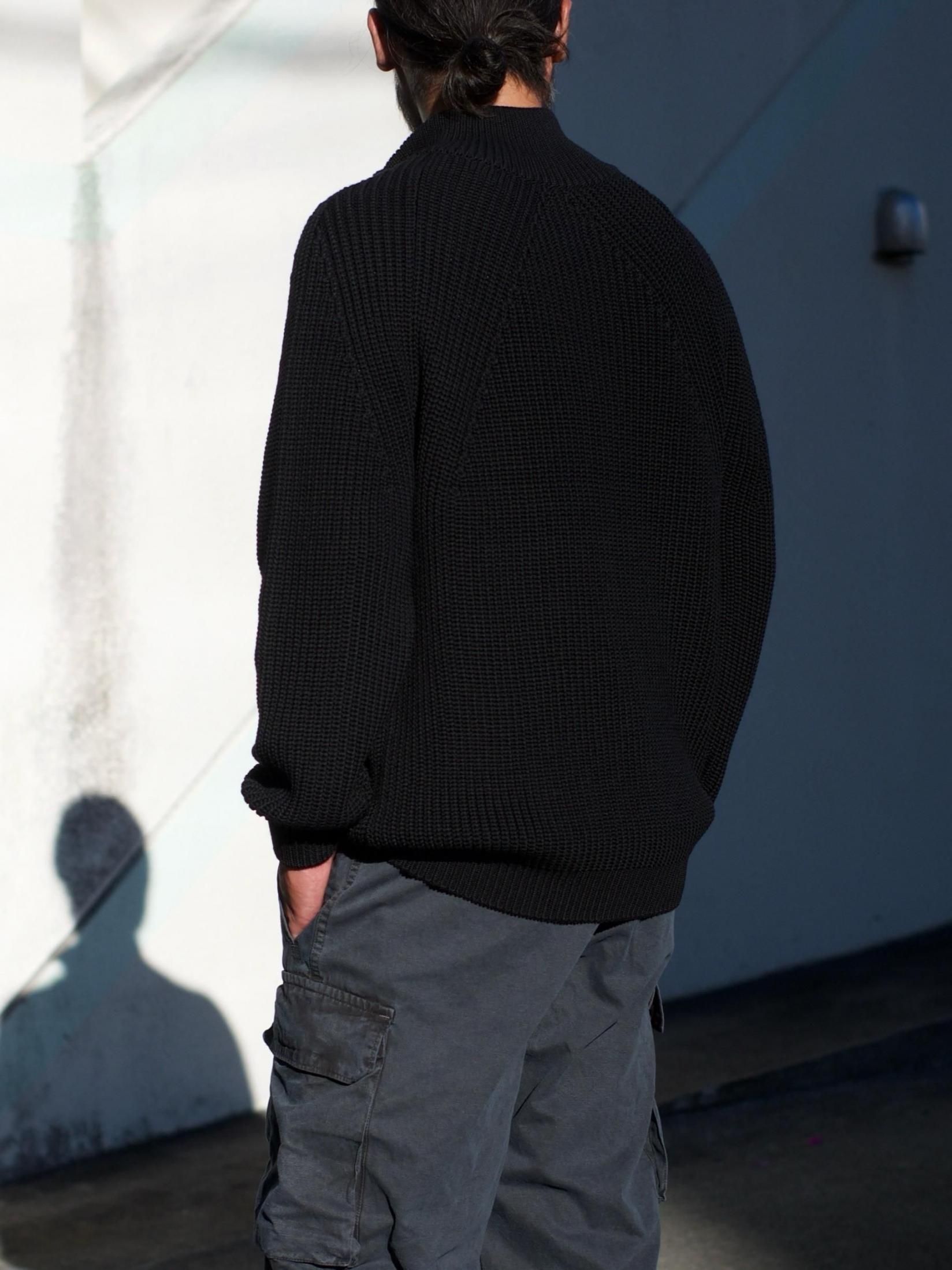 SOLID WOOLというこのシリーズの為に独自で開発した糸を使用し、目の立ったキレイな編目とダレない強度、そして毛玉ができにくくチクチクしないという理想のミドルゲージニットを目指した商品となっております。
