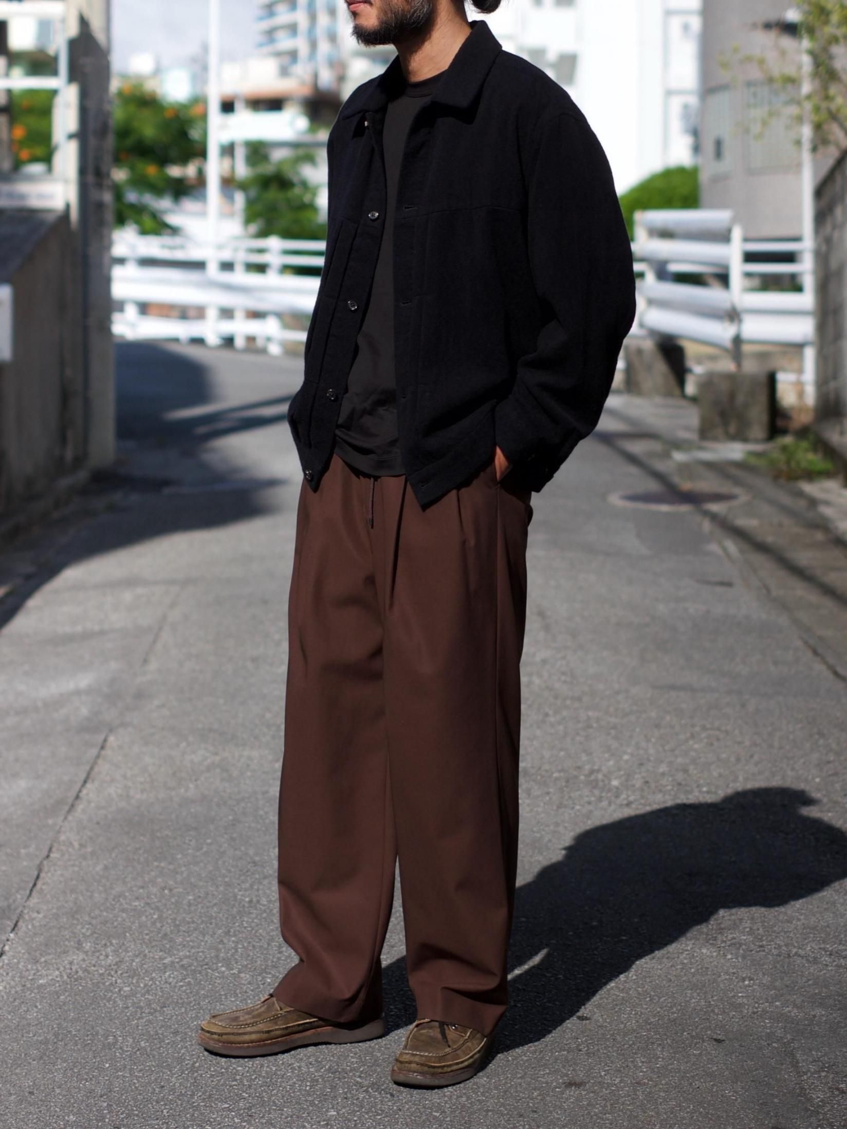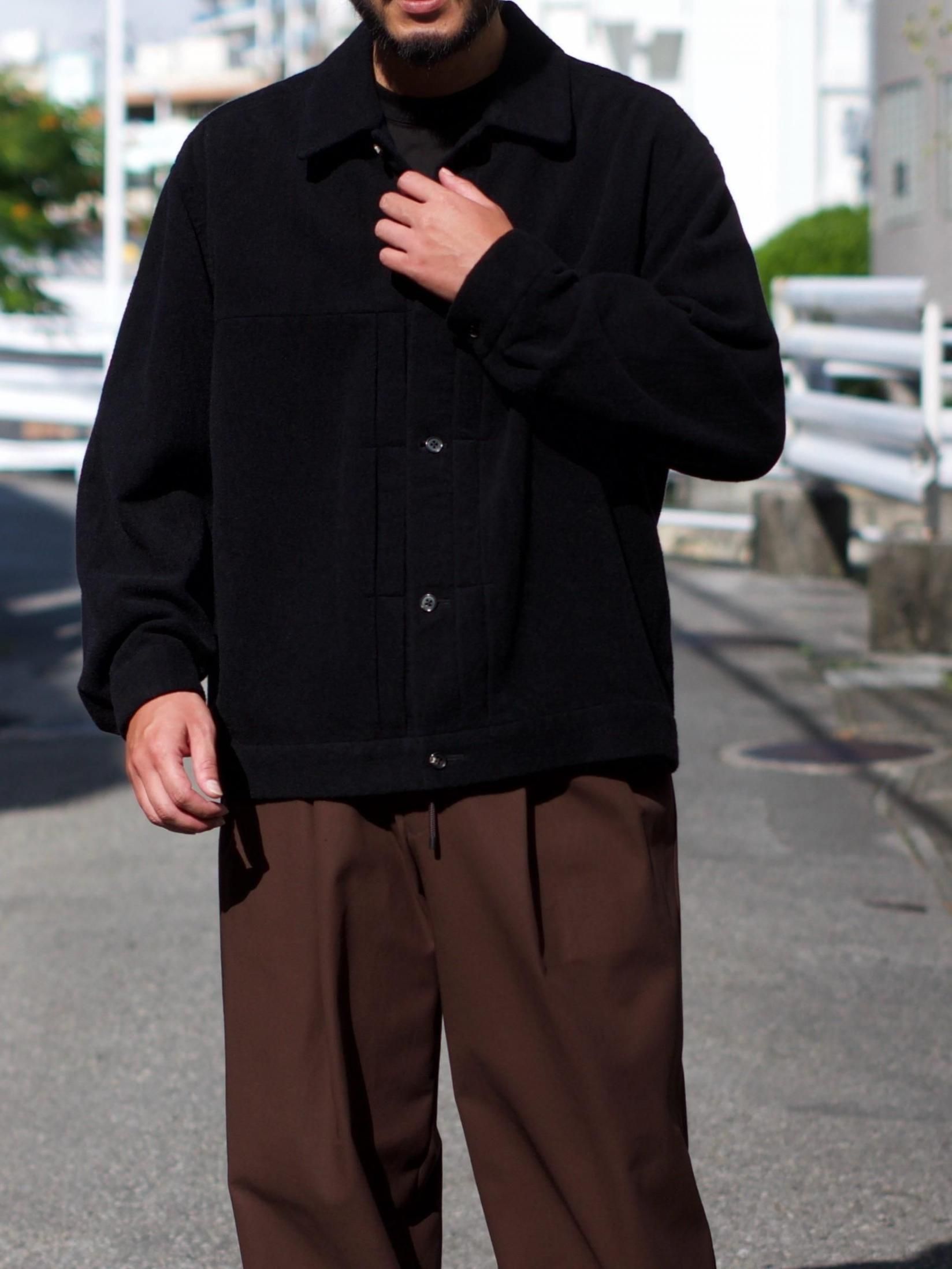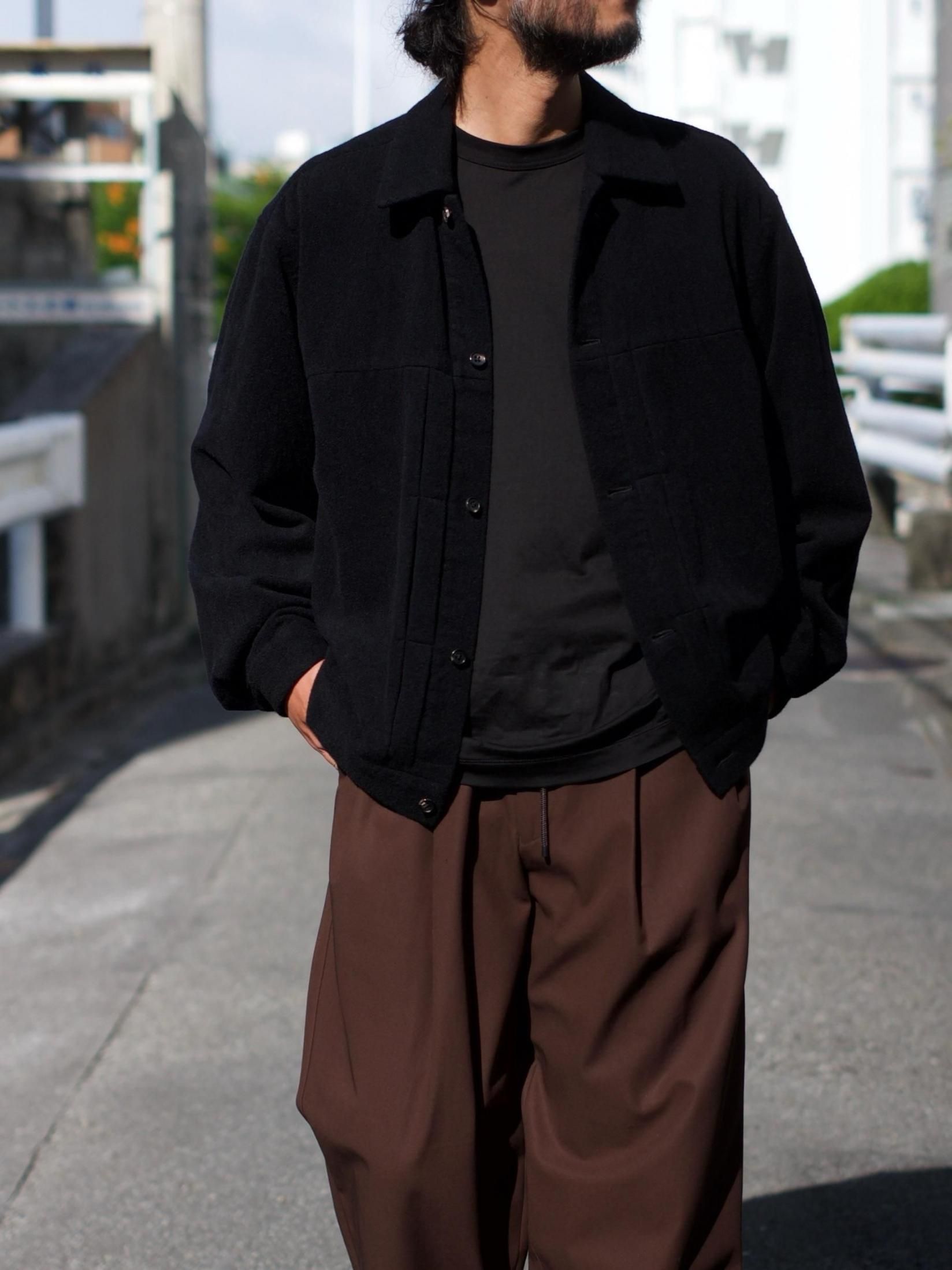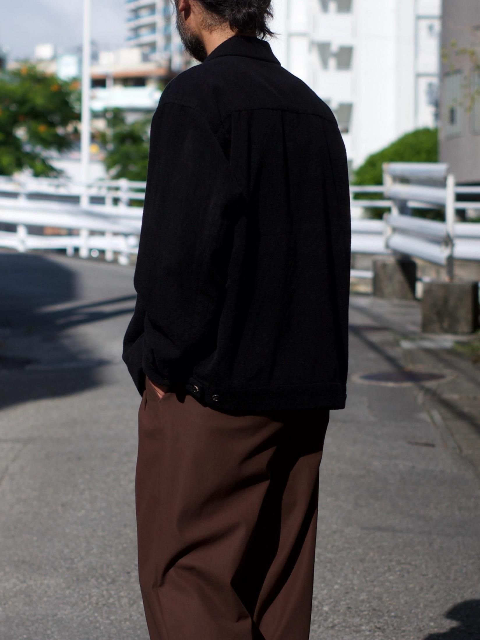 ニット用に紡績された紡毛カシミヤに甘く撚りをかけて生地に仕立て、さらにニット用の縮絨加工を施すことで、布帛でありながらニットのような柔らかさと膨らみを実現した極上のシャツジャケット。