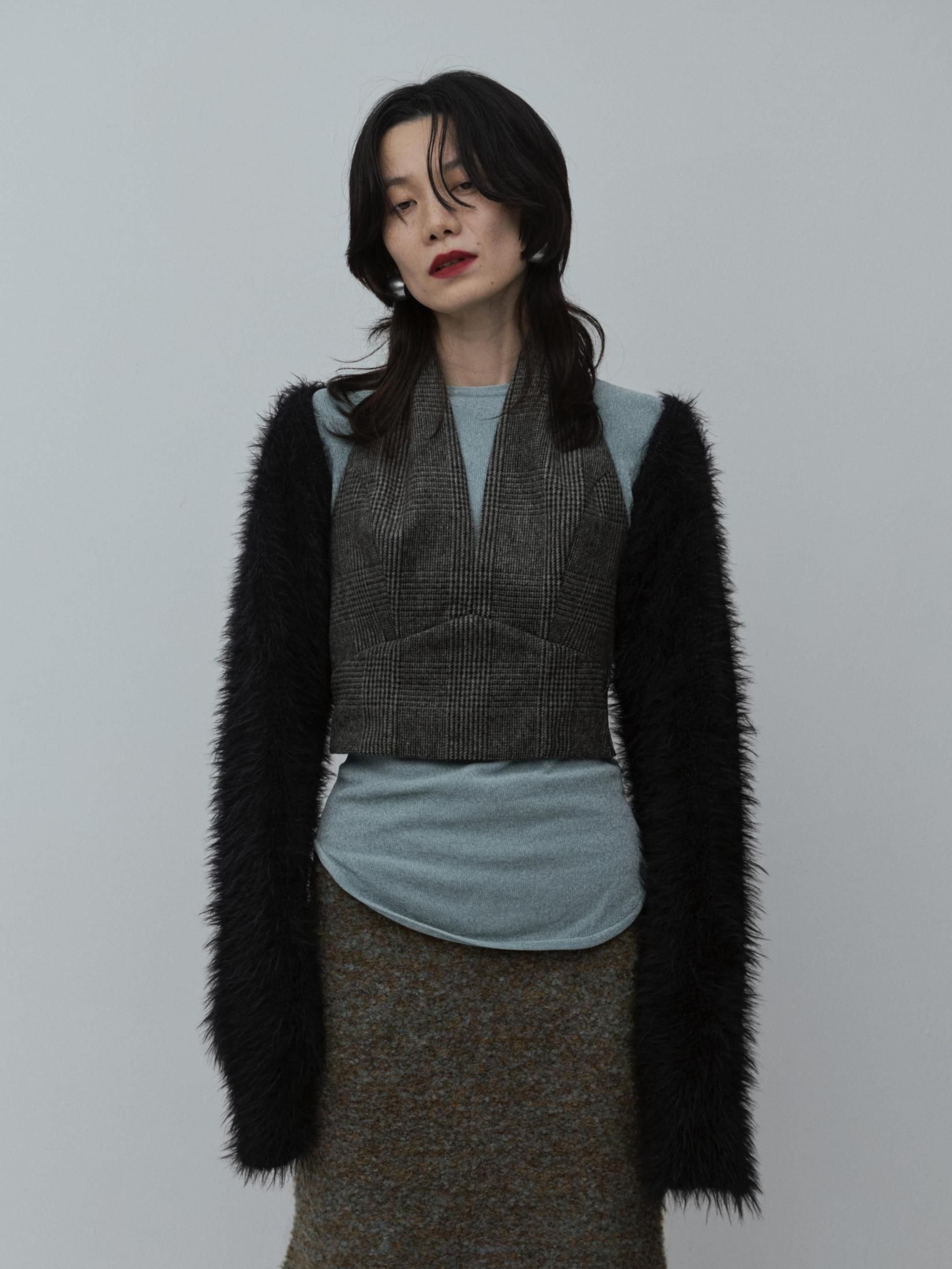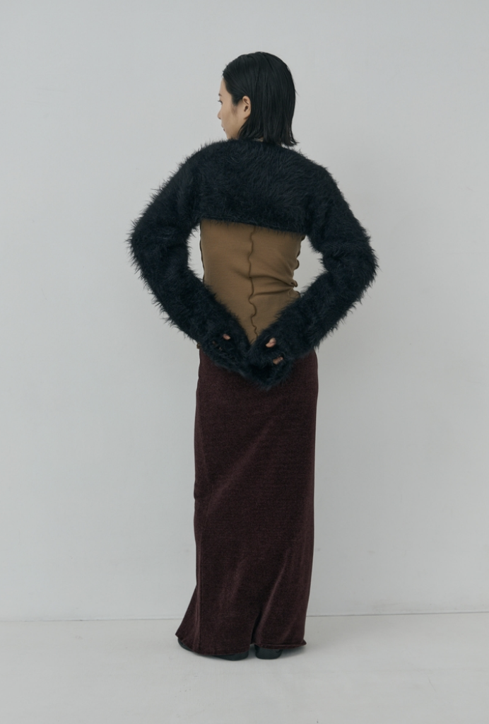 しなやかな肌触りのシャギーニットの毛足がかわいいアームカバー。