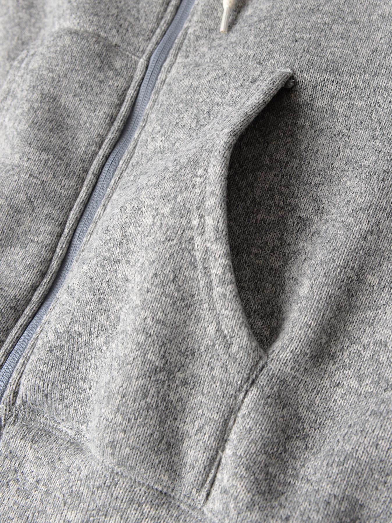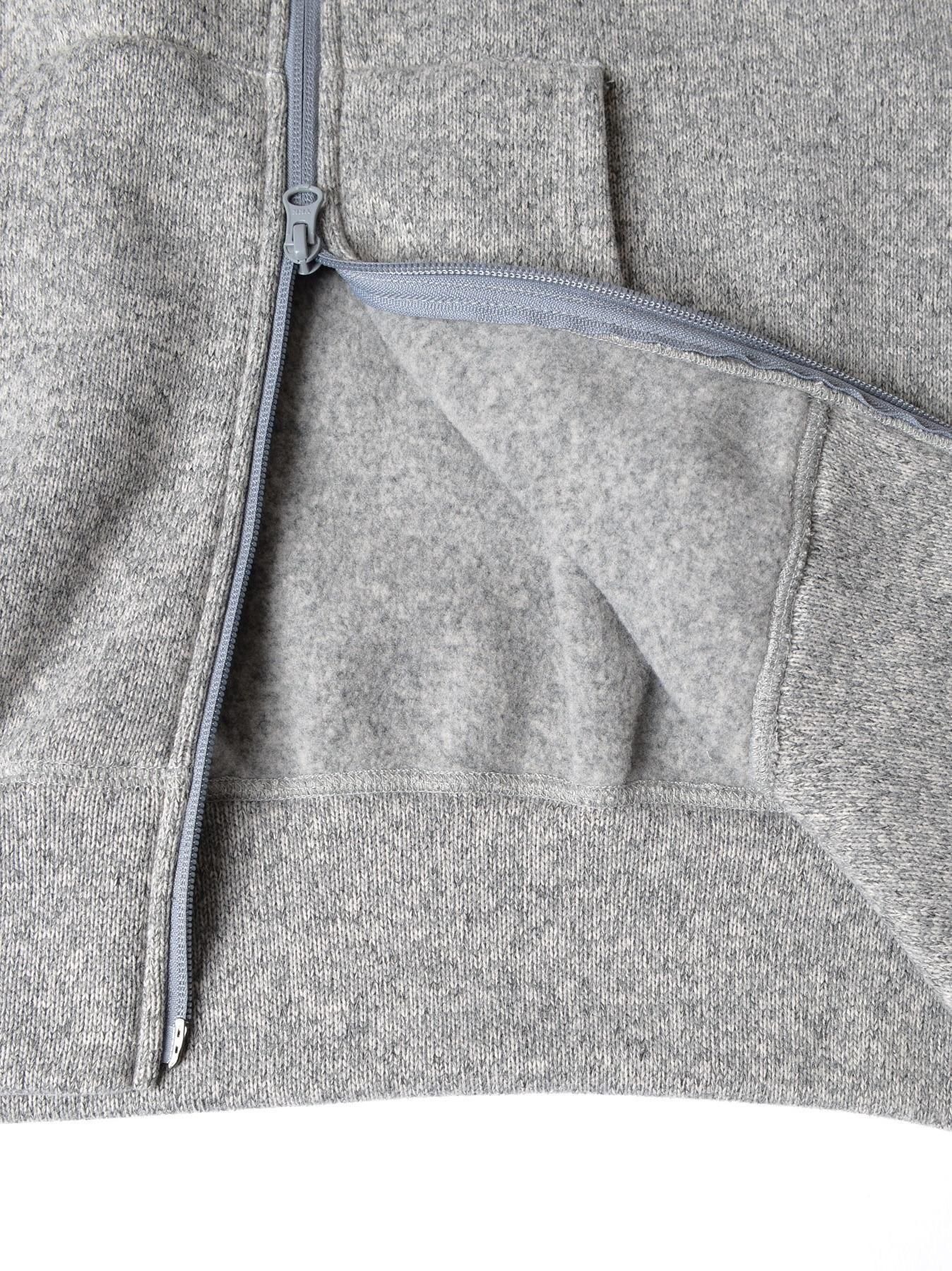 POLARTEC社の保温性に特化したTHERMAL PROを使用したフリースジップフーディ。THERMAL PROのフリースは表面はニットのような編み地で着心地が良く軽量で耐久性や速乾性に優れています。大きなアームホールとボリュームのあるボディに対して裾幅を狭めることで丸みのあるシルエットに仕上げています。ダブルジップ仕様。同素材のボトムスとセットアップスタイルもおすすめです。