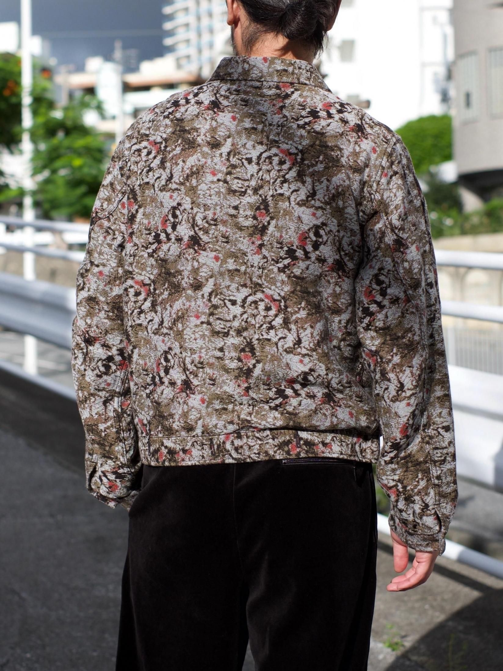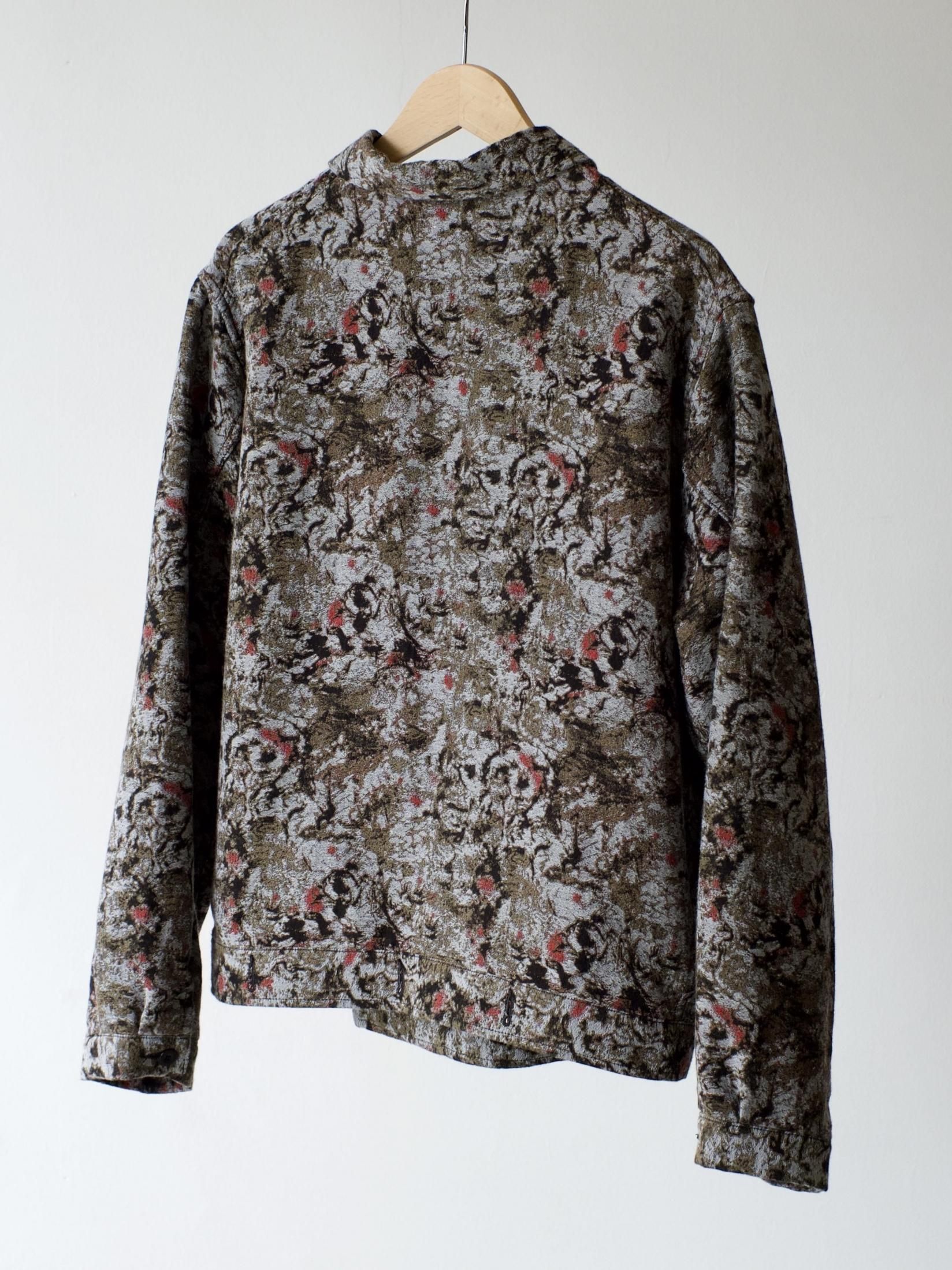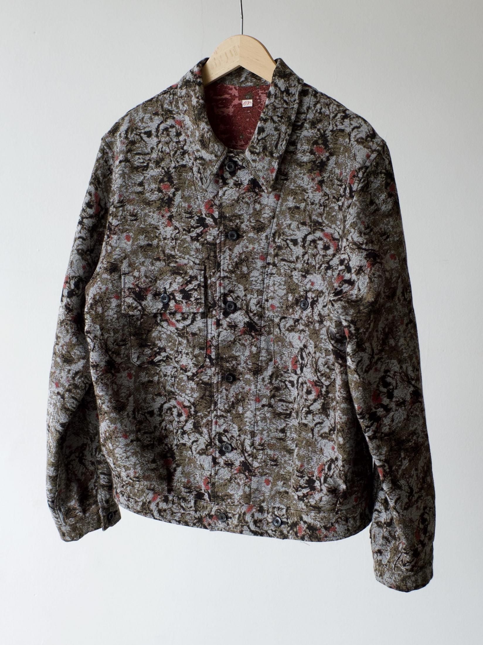 1970年代のフランスの画家の絵からイメージした抽象的な柄をジャガード織機でインディゴ糸を含む縦横共に4色使いで表現したウティ オリジナルファブリック。