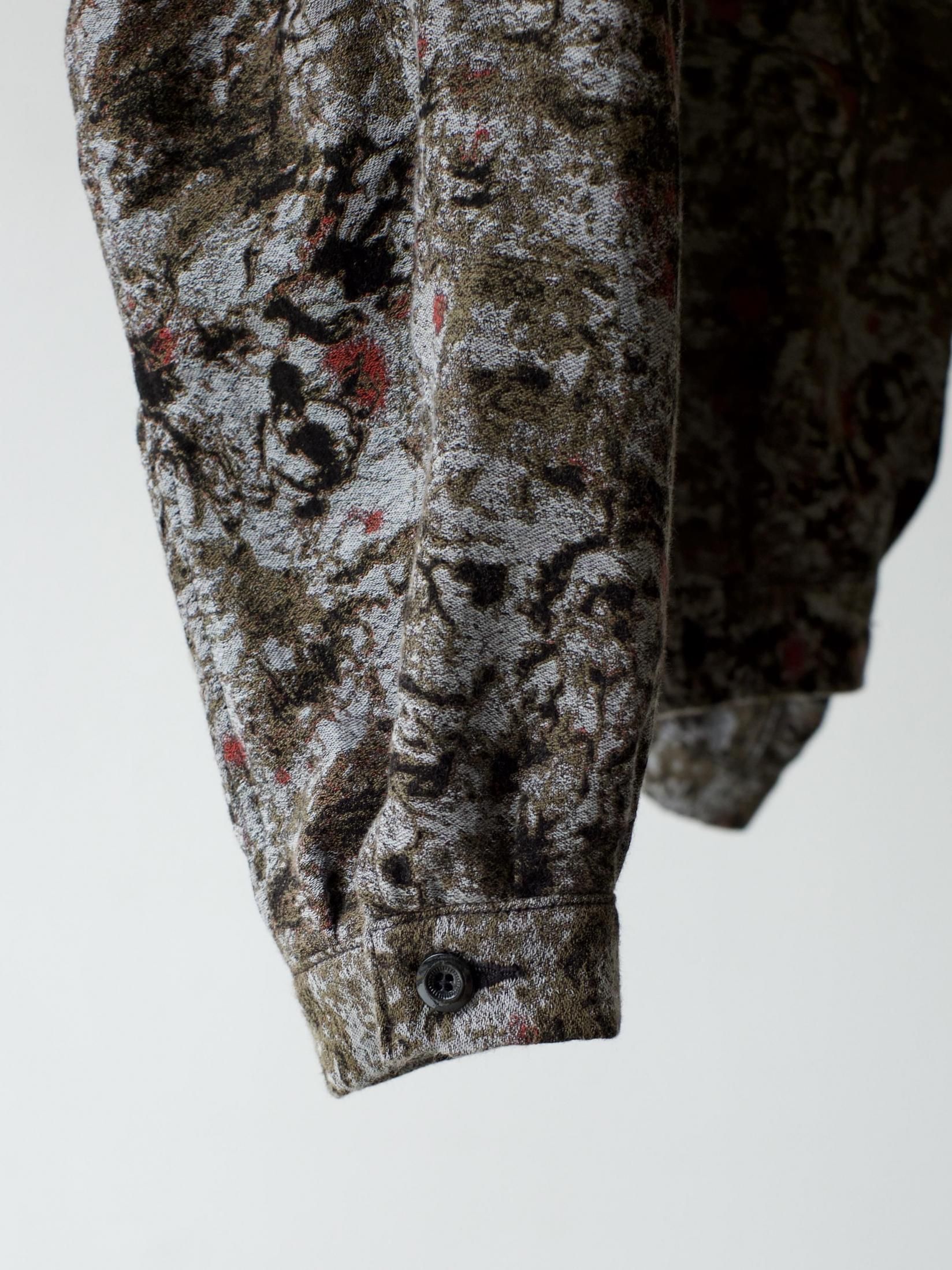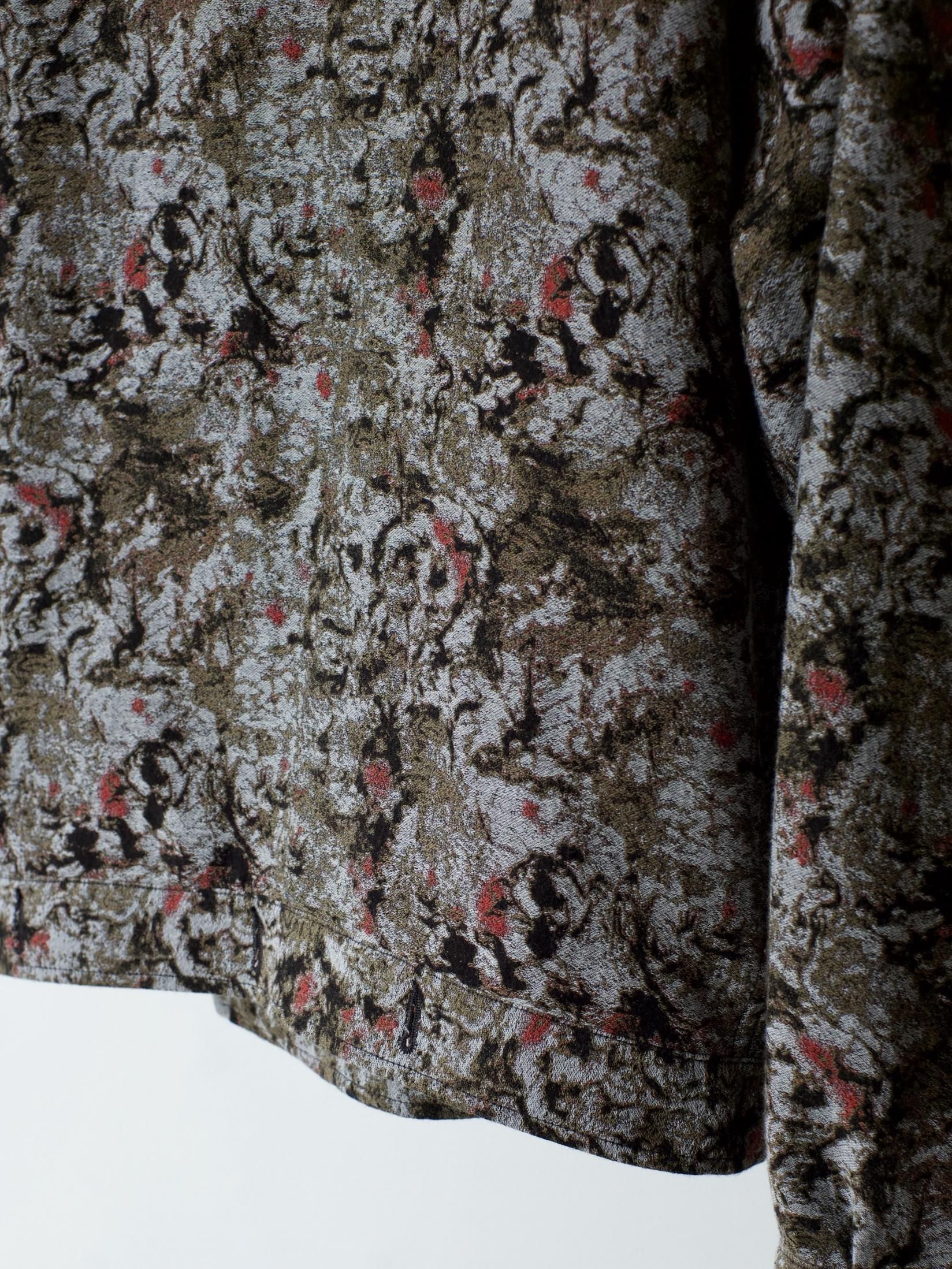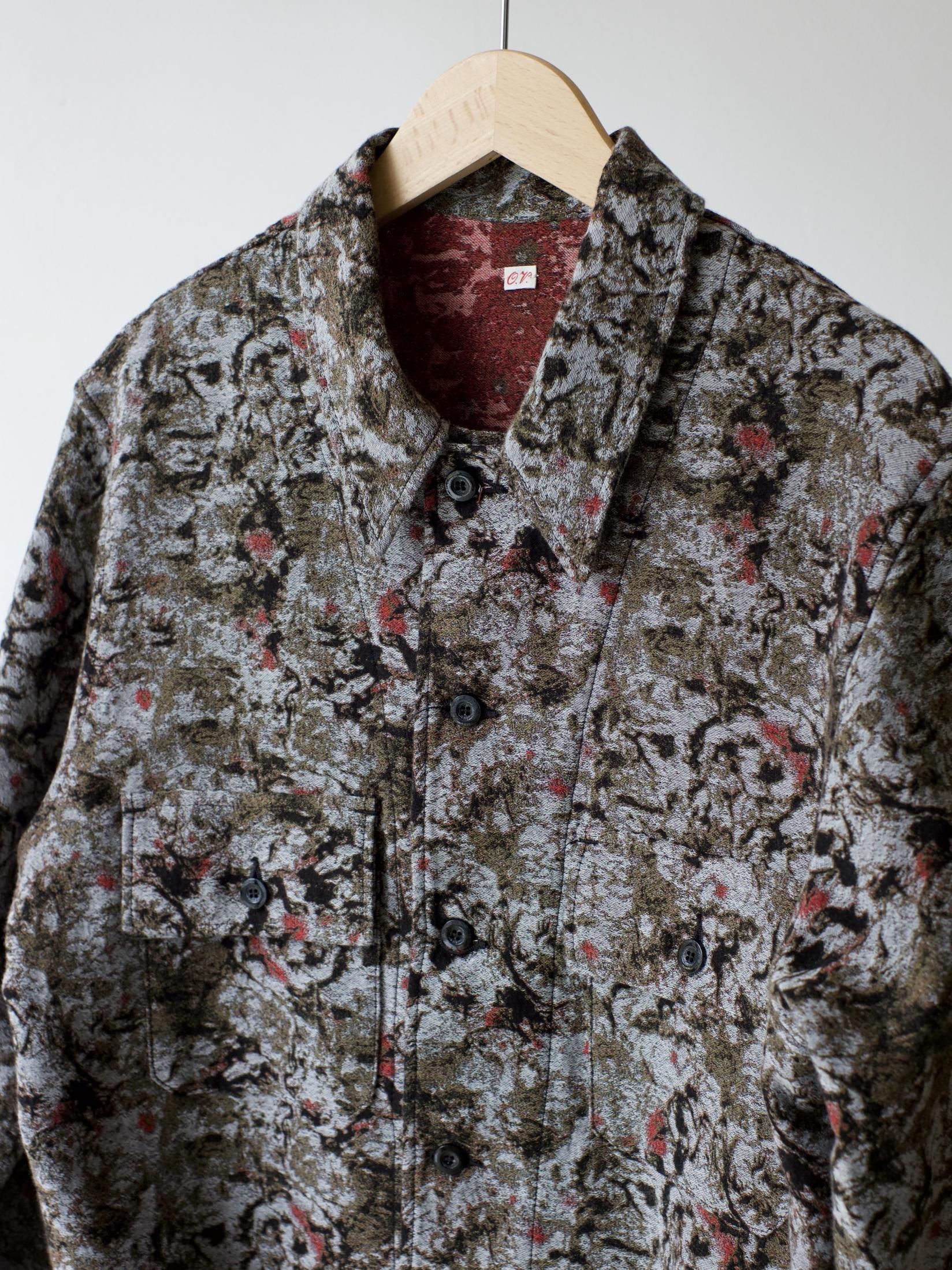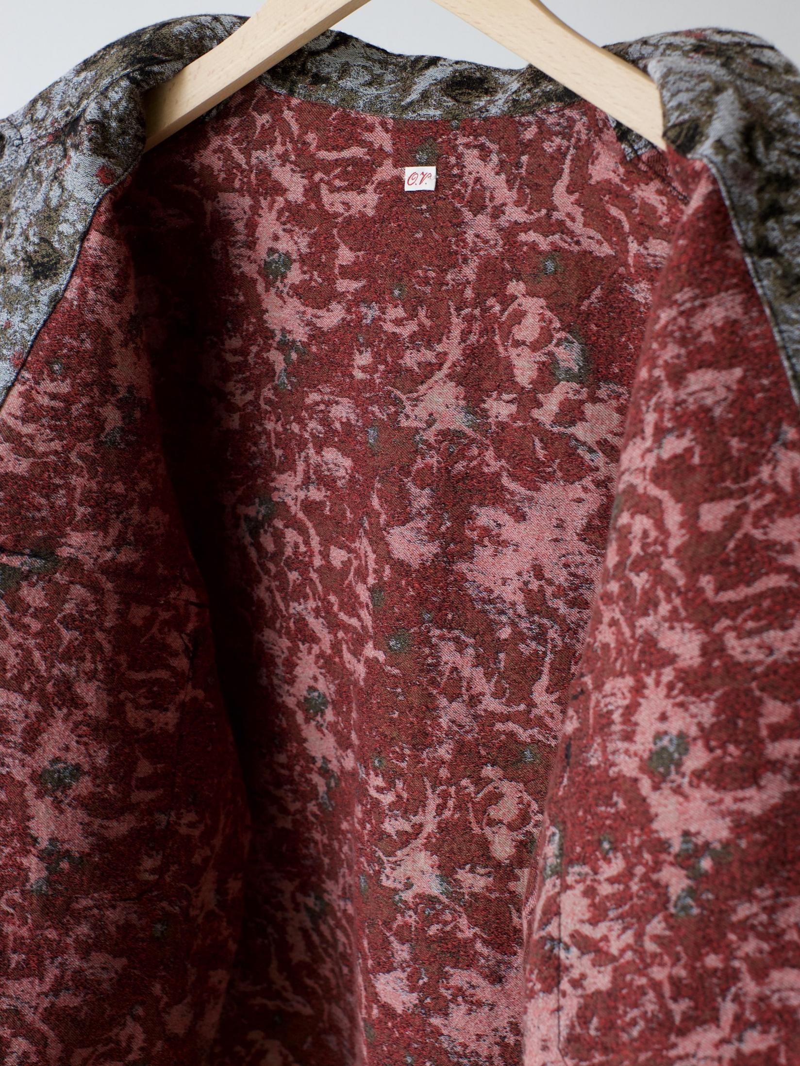 1970年代のフランスの画家の絵からイメージした抽象的な柄をジャガード織機でインディゴ糸を含む縦横共に4色使いで表現したウティ オリジナルファブリック。