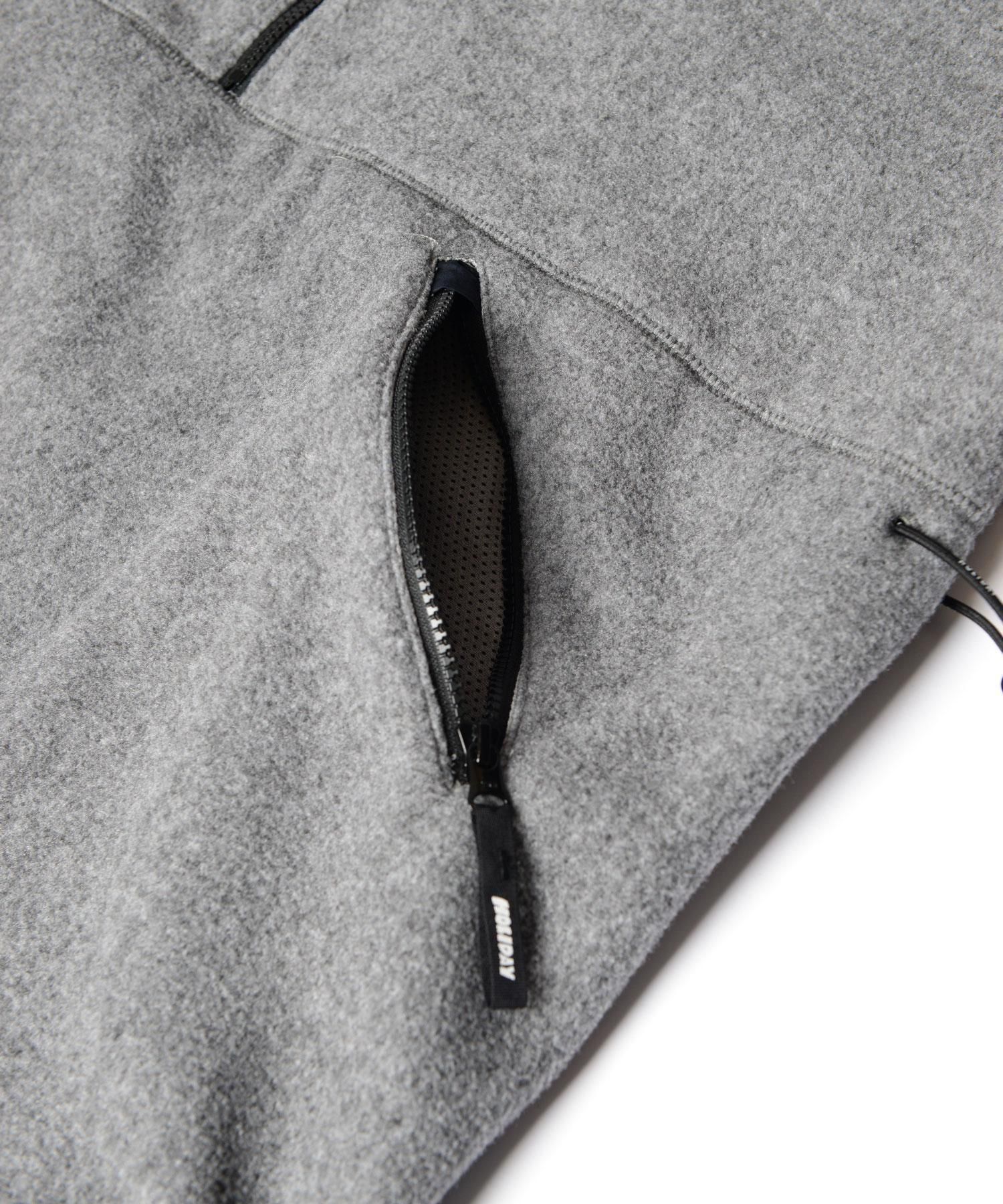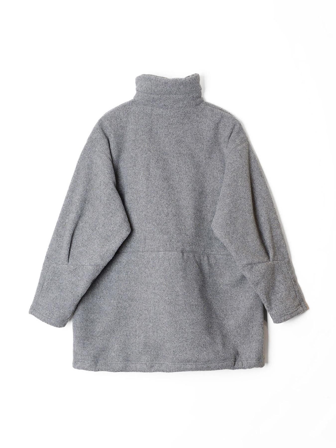 POLARTEC社の定番素材、高い保温力としっかりとした厚みを備えたPOLARTEC CLASSIC 300を使用したフリースアノラックドレス。生地は2000年代初頭の米軍放出のデットストックを使用しています。ドレスとしてもアウターとしてもバランスよく着用できる。ネックウォーマーのような中綿入りの襟で防寒性に長けています。ウエストと裾のドローコードでシルエットの調整が可能。