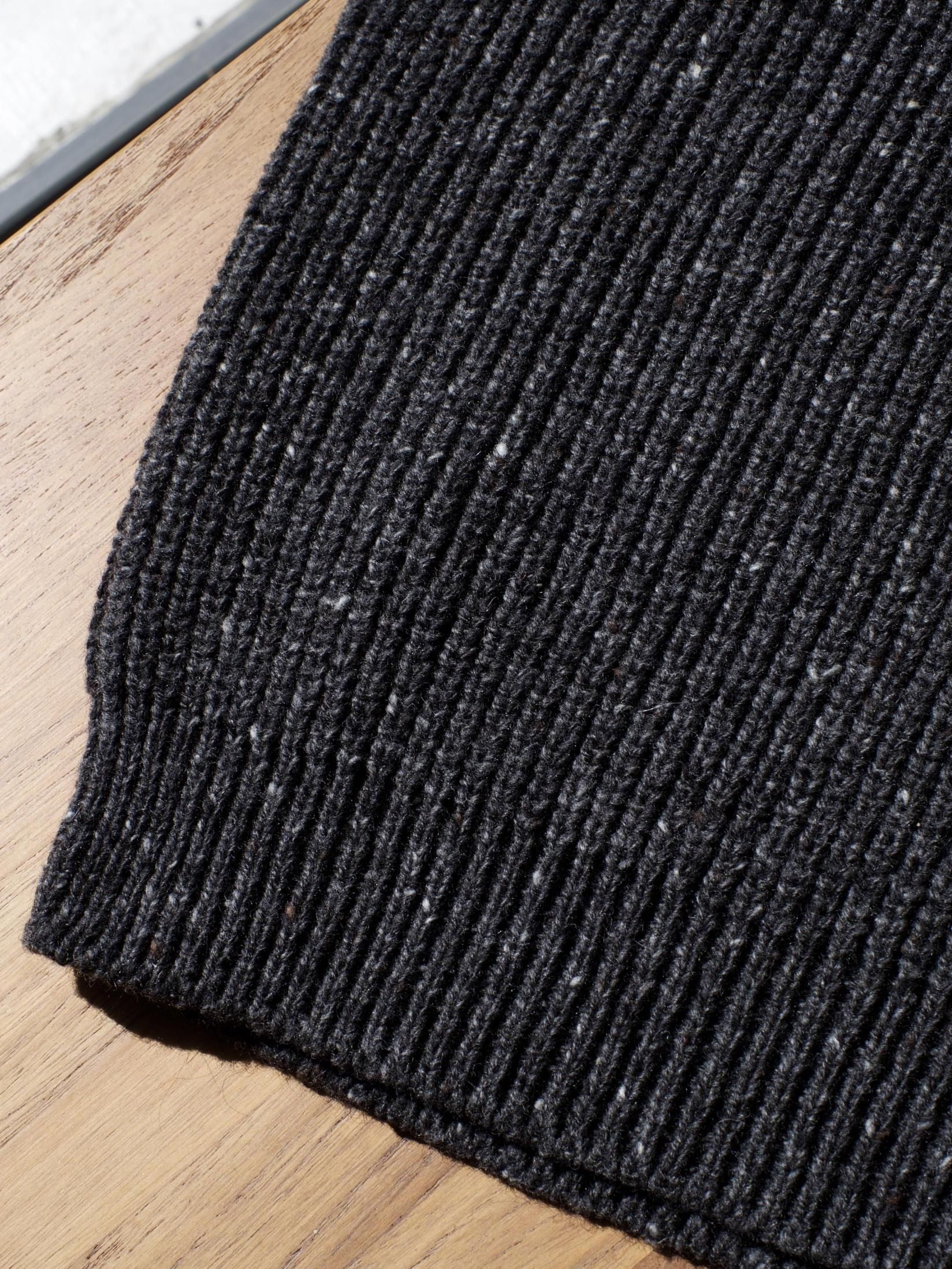 トラッドな雰囲気を持つシェットランドウールにアルパカを撚糸し、ツイード調に編み立てたほのかに起毛感のアイテム。