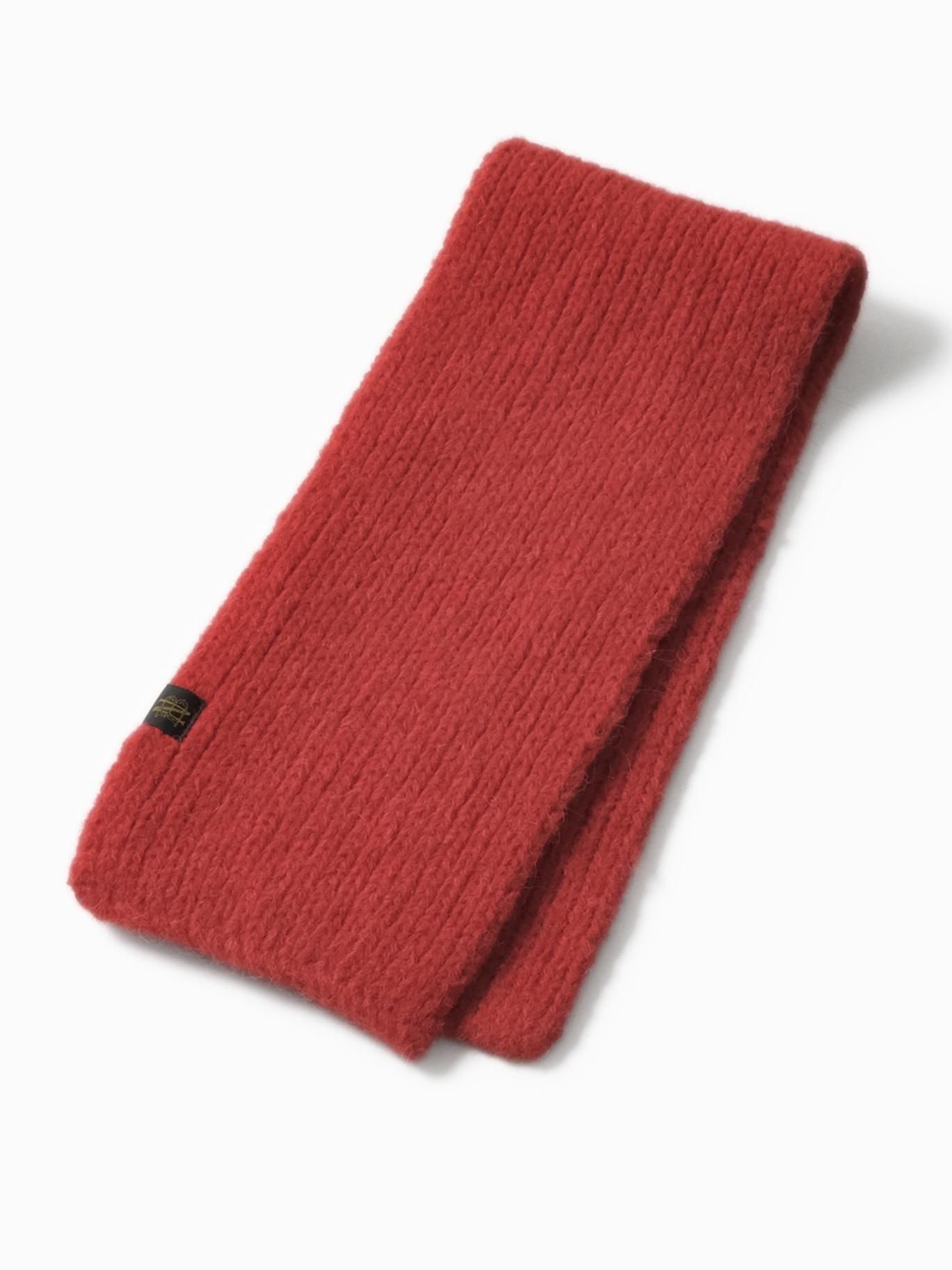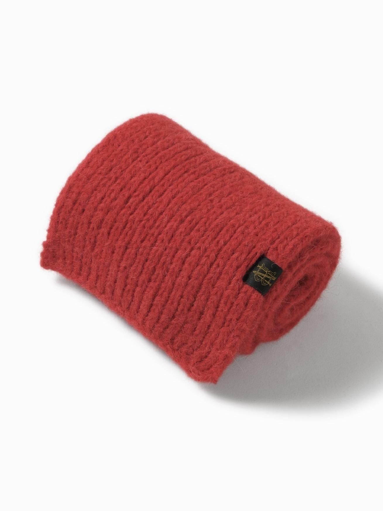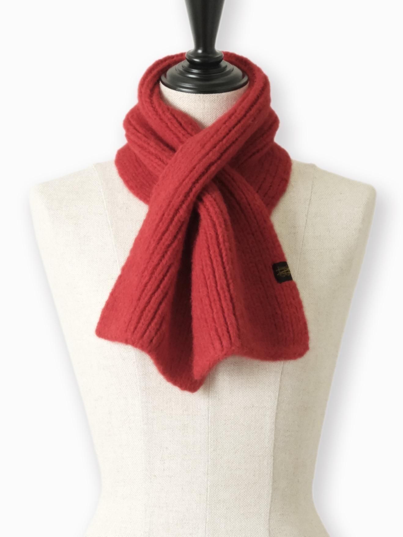 柔らかな風合いを持つファインアルパカに、メリノウールを芯にした起毛糸を多本取りし、ローゲージで編み立て、糸そのものが持つ膨らみにより独特の立体感が特徴のマフラー。