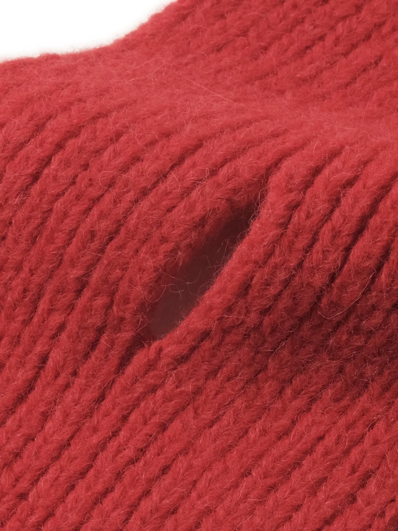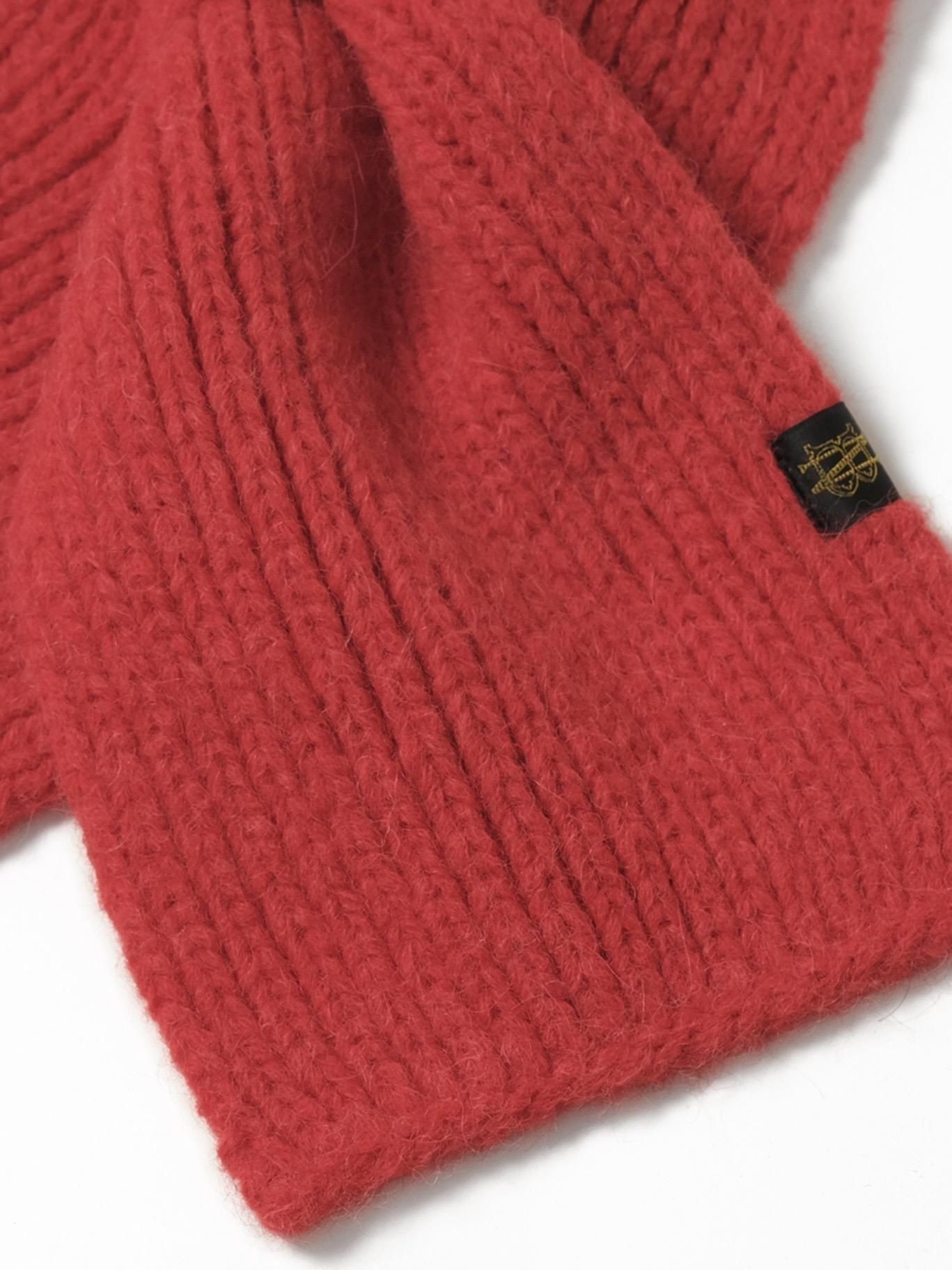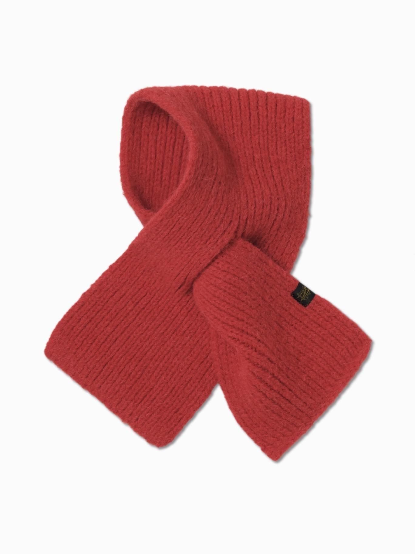 柔らかな風合いを持つファインアルパカに、メリノウールを芯にした起毛糸を多本取りし、ローゲージで編み立て、糸そのものが持つ膨らみにより独特の立体感が特徴のマフラー。
