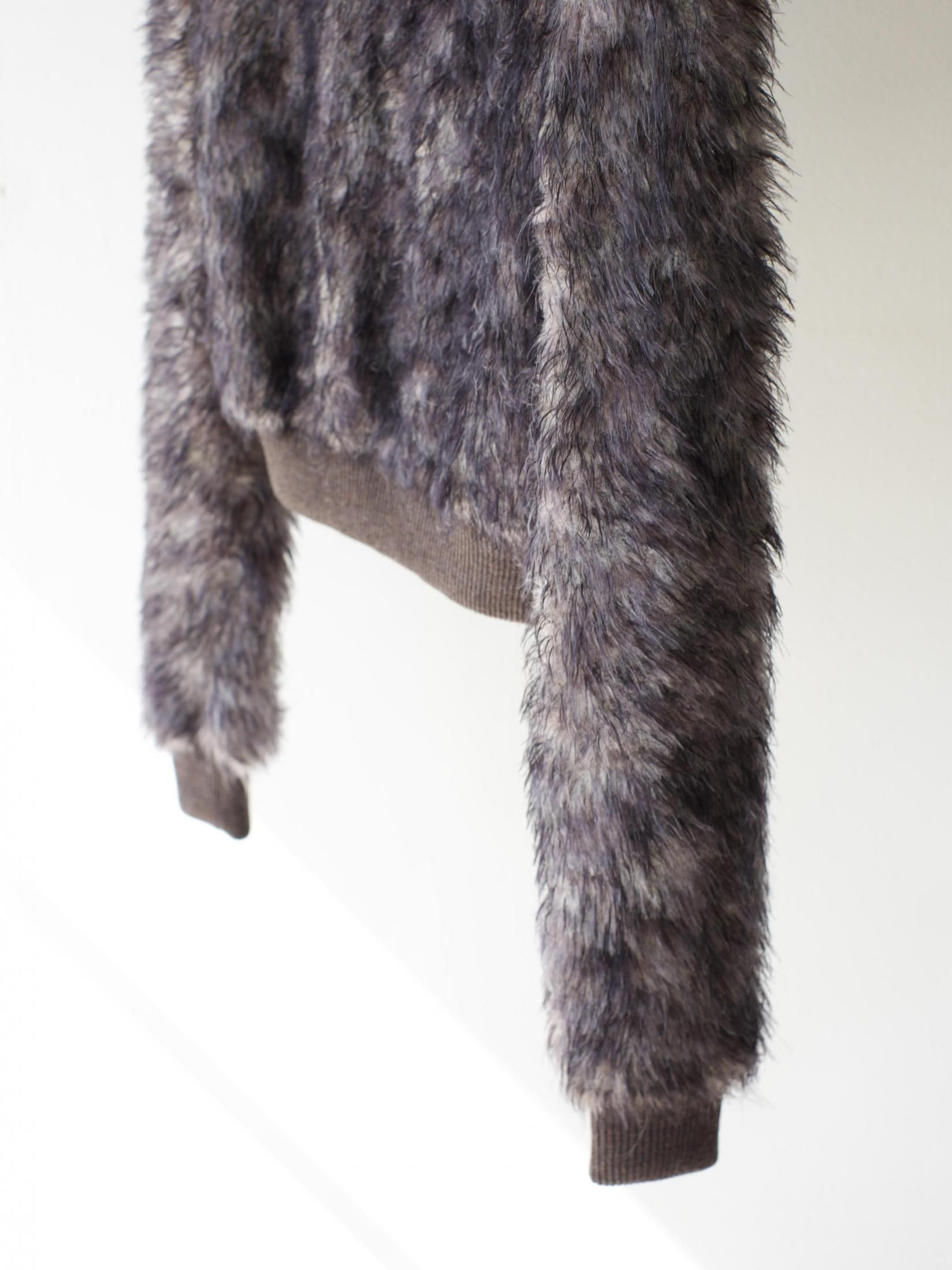 野生的で力強さがあるファーブルゾンは、2種類の糸を組み合わせて編み上げたもの。