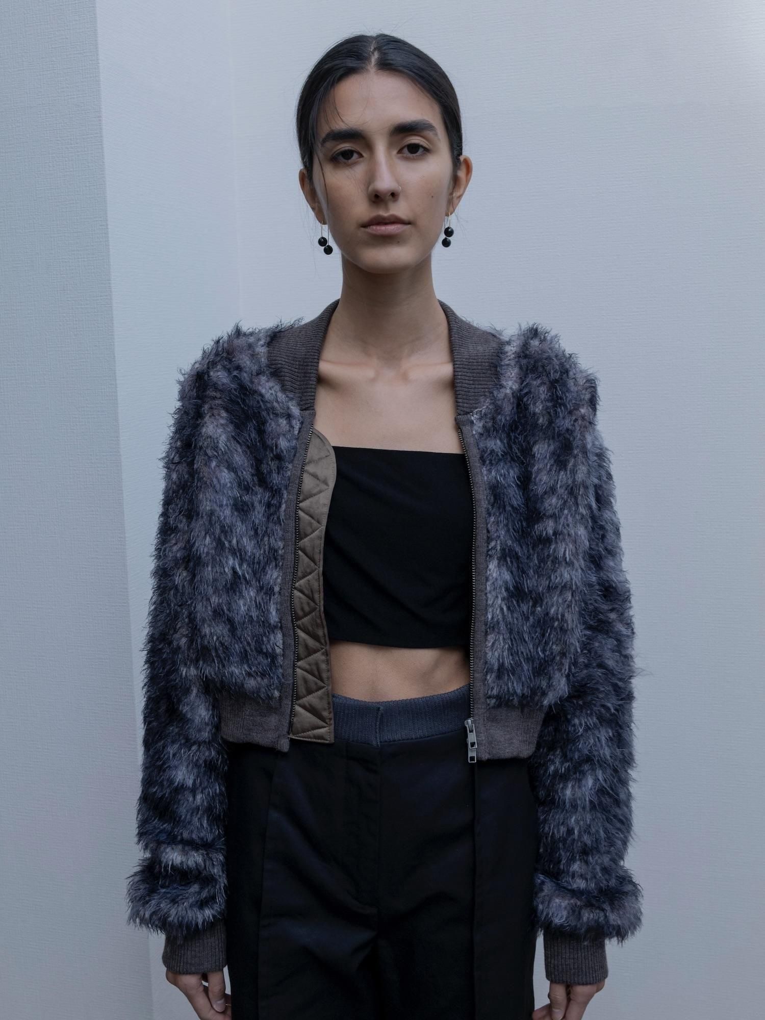 WOLF KNIT FUR BOMBER JACKET